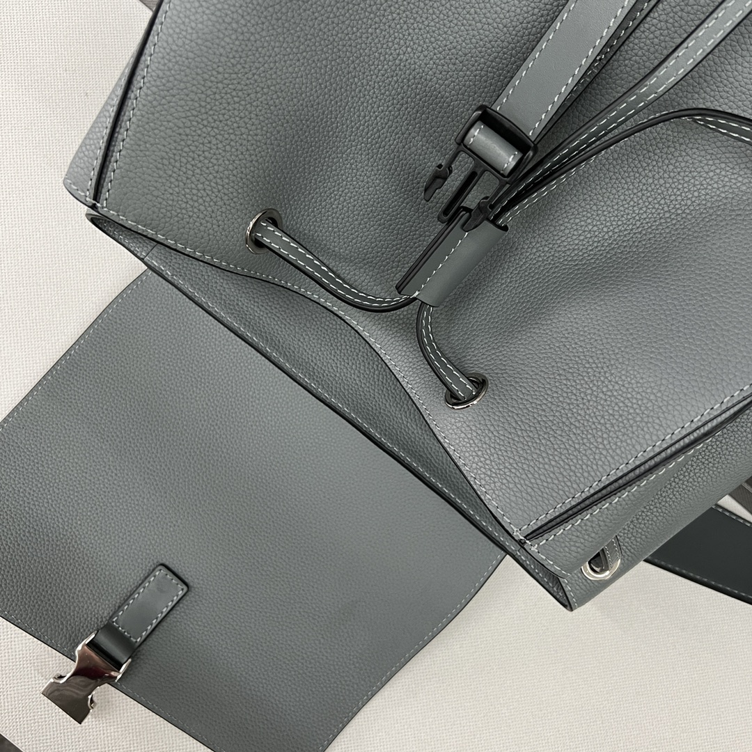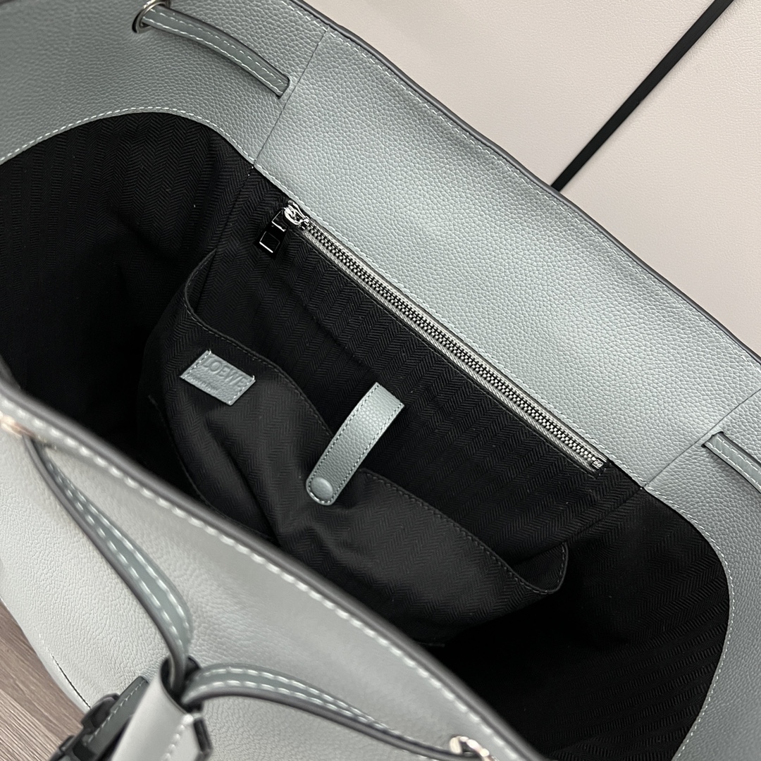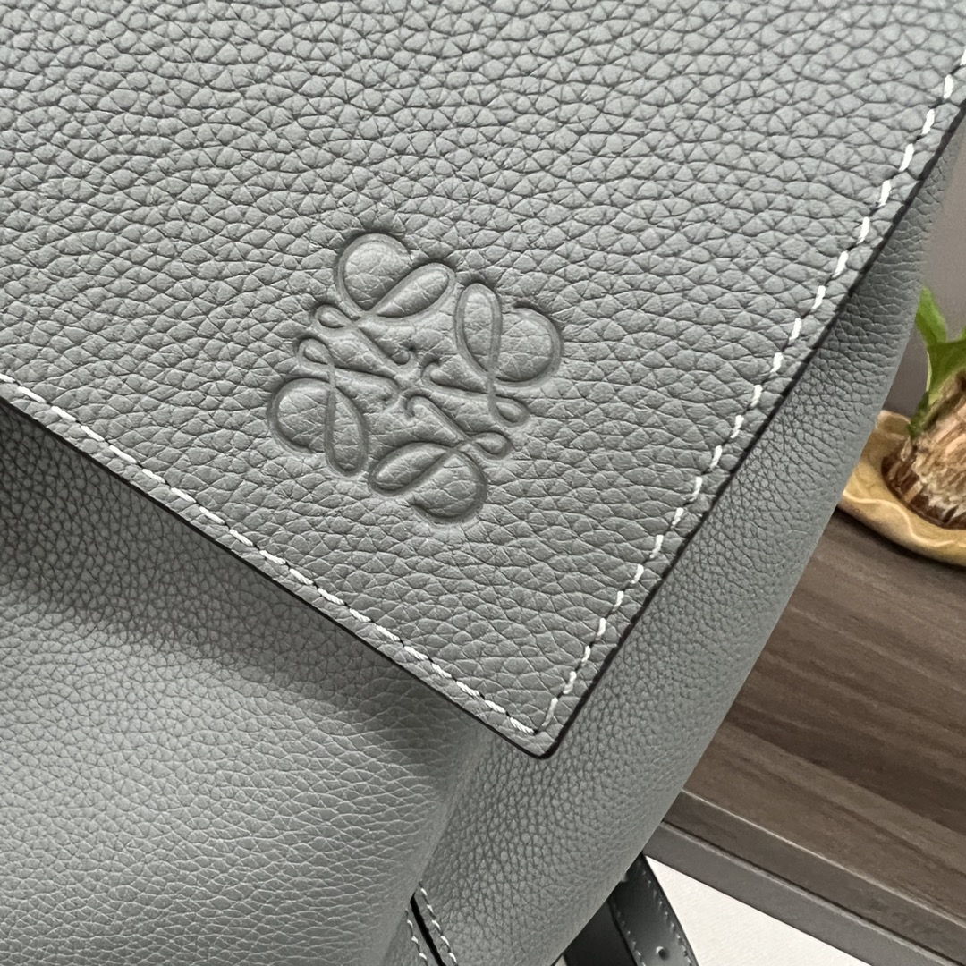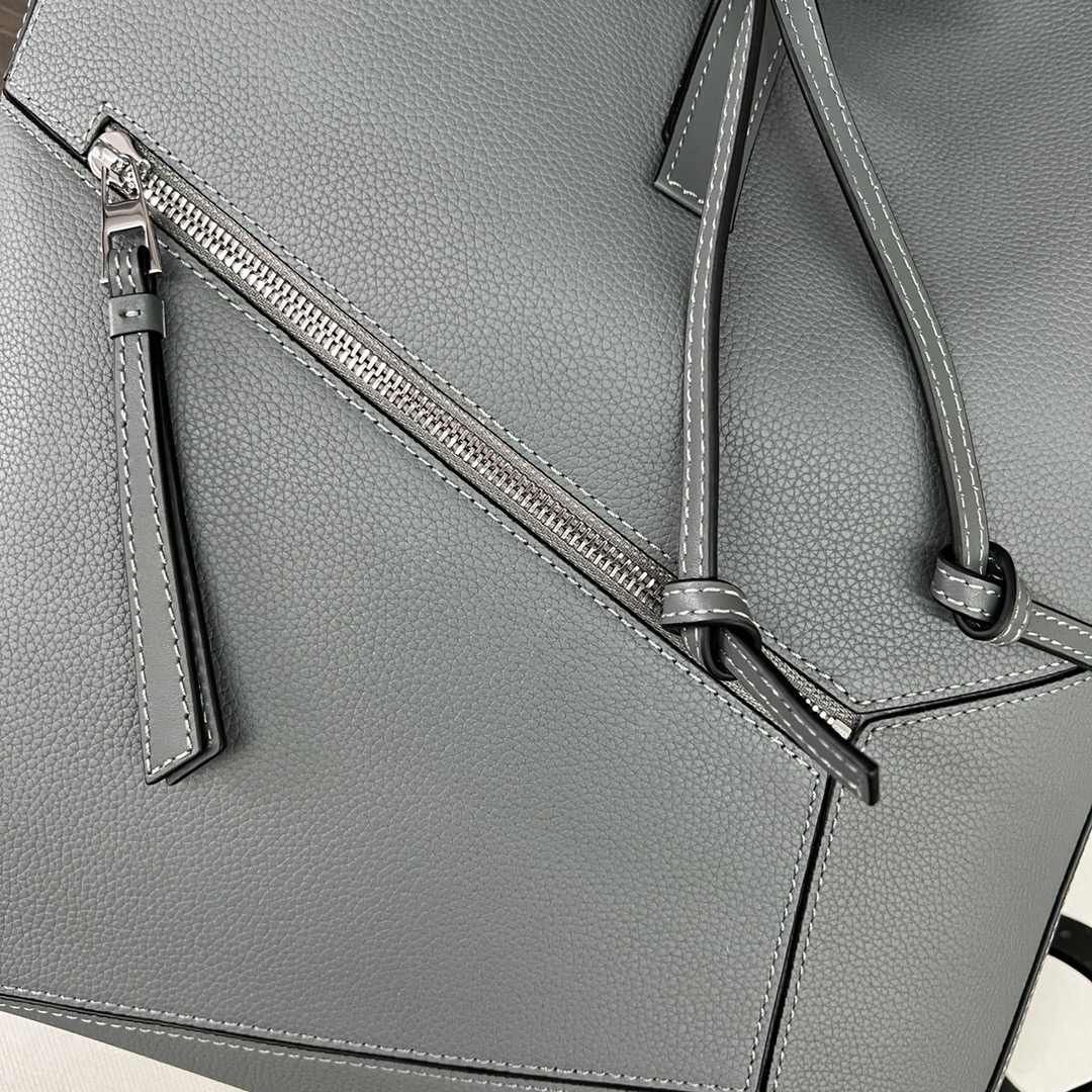 このロエベのバックパックは、高級感あふれるグレーの粒あめ仕上げの本革を使用しています。独特な幾何学的なデザインと、白いステッチが洗練された印象を与えます。前面には斜めのジッパーがアクセントになり、開閉がスムーズです。背面には快適なフィット感を提供するパッド入りのショルダーストラップが付いています。通勤や旅行、日常使いに最適で、機能性とデザイン性を兼ね備えています。ロエベのロゴが施された高級感ある仕上がりで、特別なプレゼントにもぴったりです。高品質な素材と精密なクラフトマンシップが、ロエベの名にふさわしい逸品です。 さっそくチェックしてみてはいかがですか?このバッグは、あなたのスタイルを引き立ててくれるはずです。