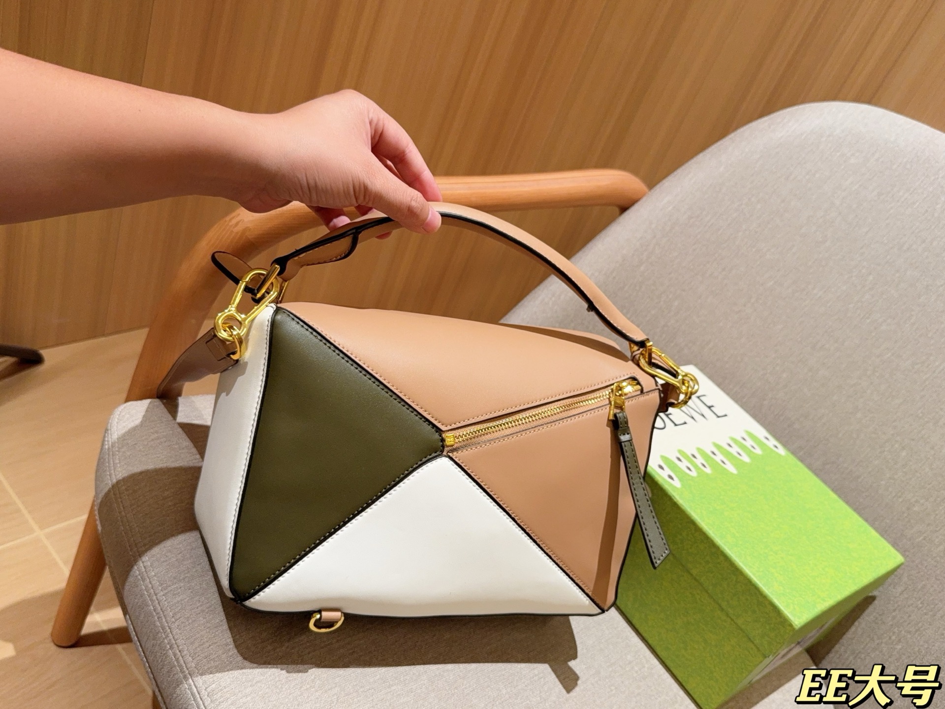 ロエベ ポーチ, 3色ブロック, トートバッグ, エレガント, ファッション