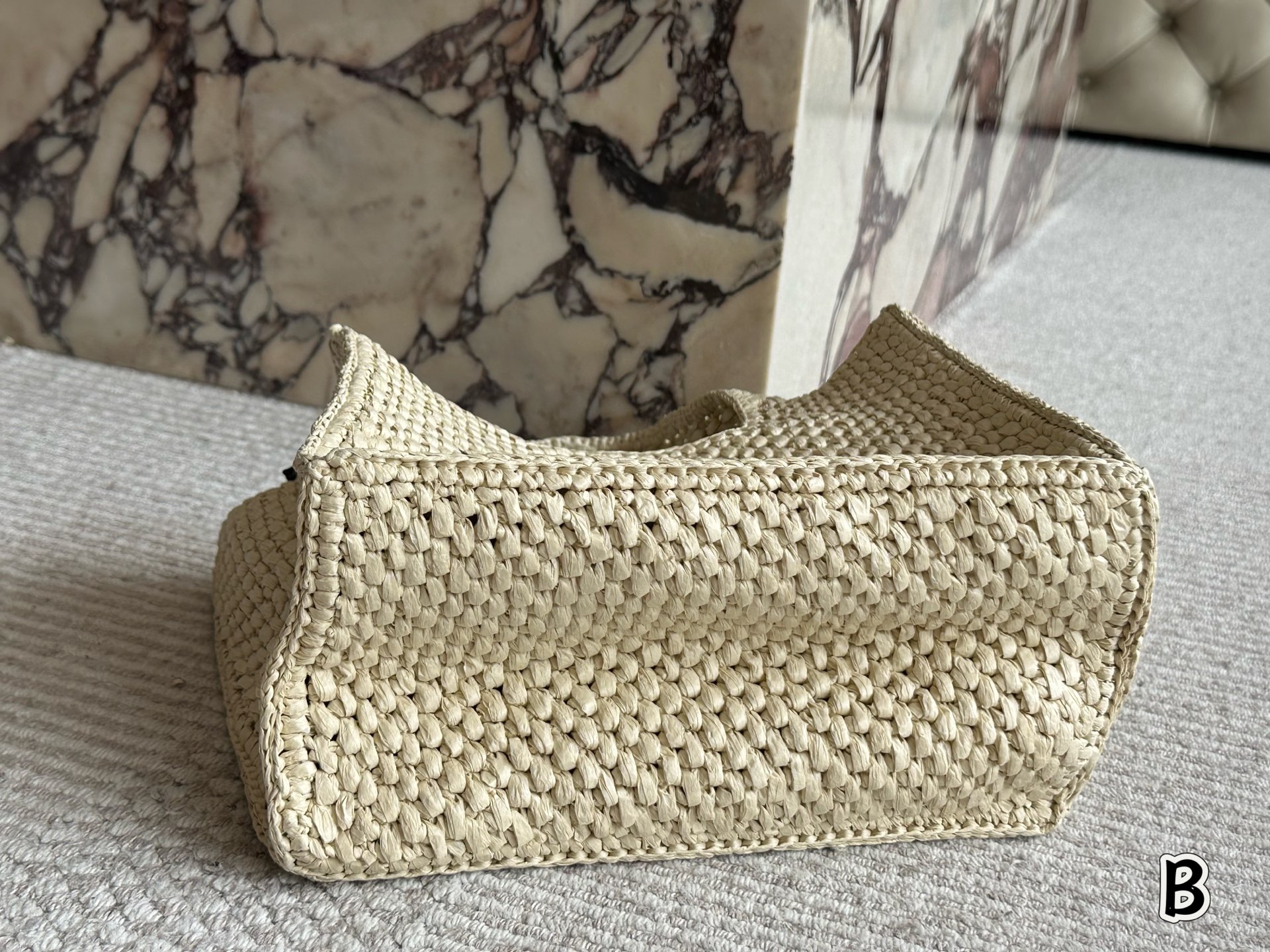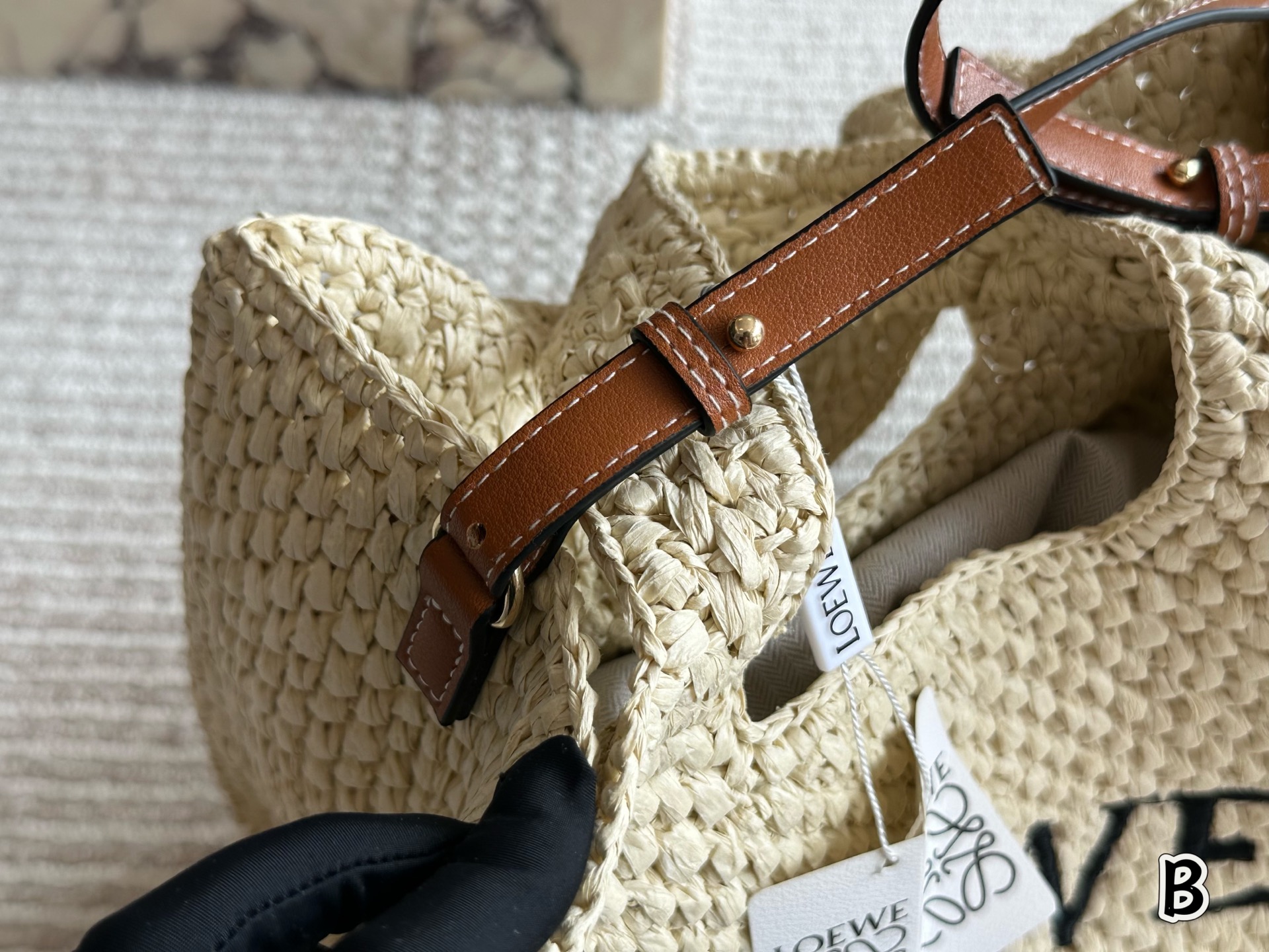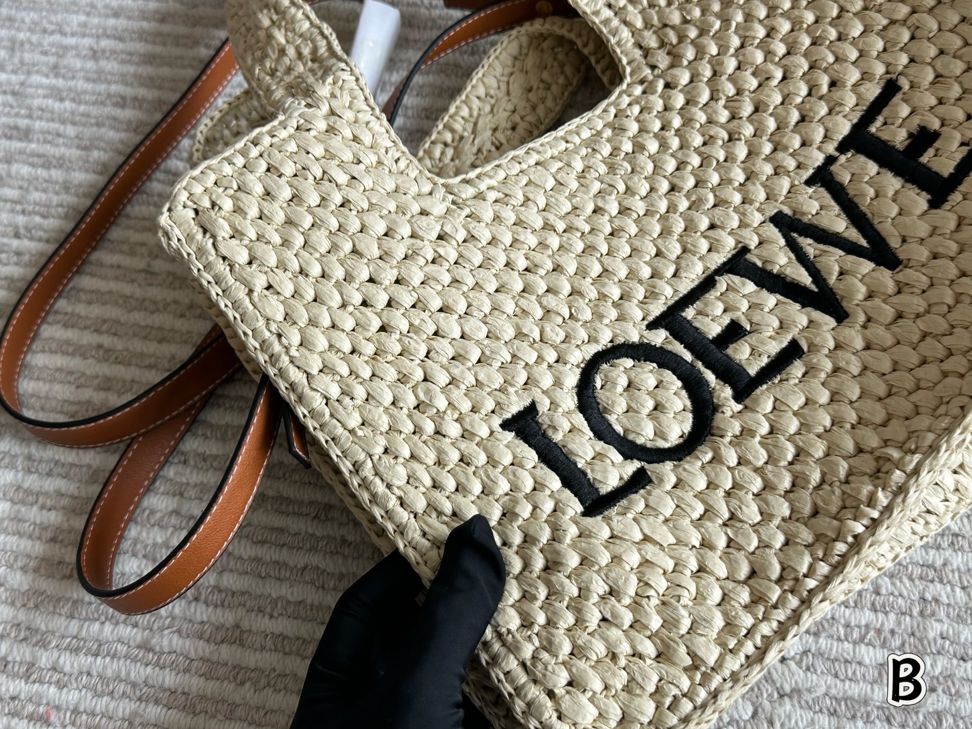 ロエベ 草編みトートバッグ ロゴ刺繍 ブラウンストラップ 1色入 🌞
