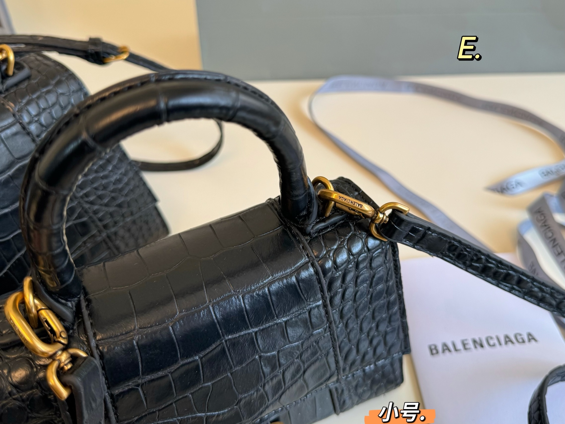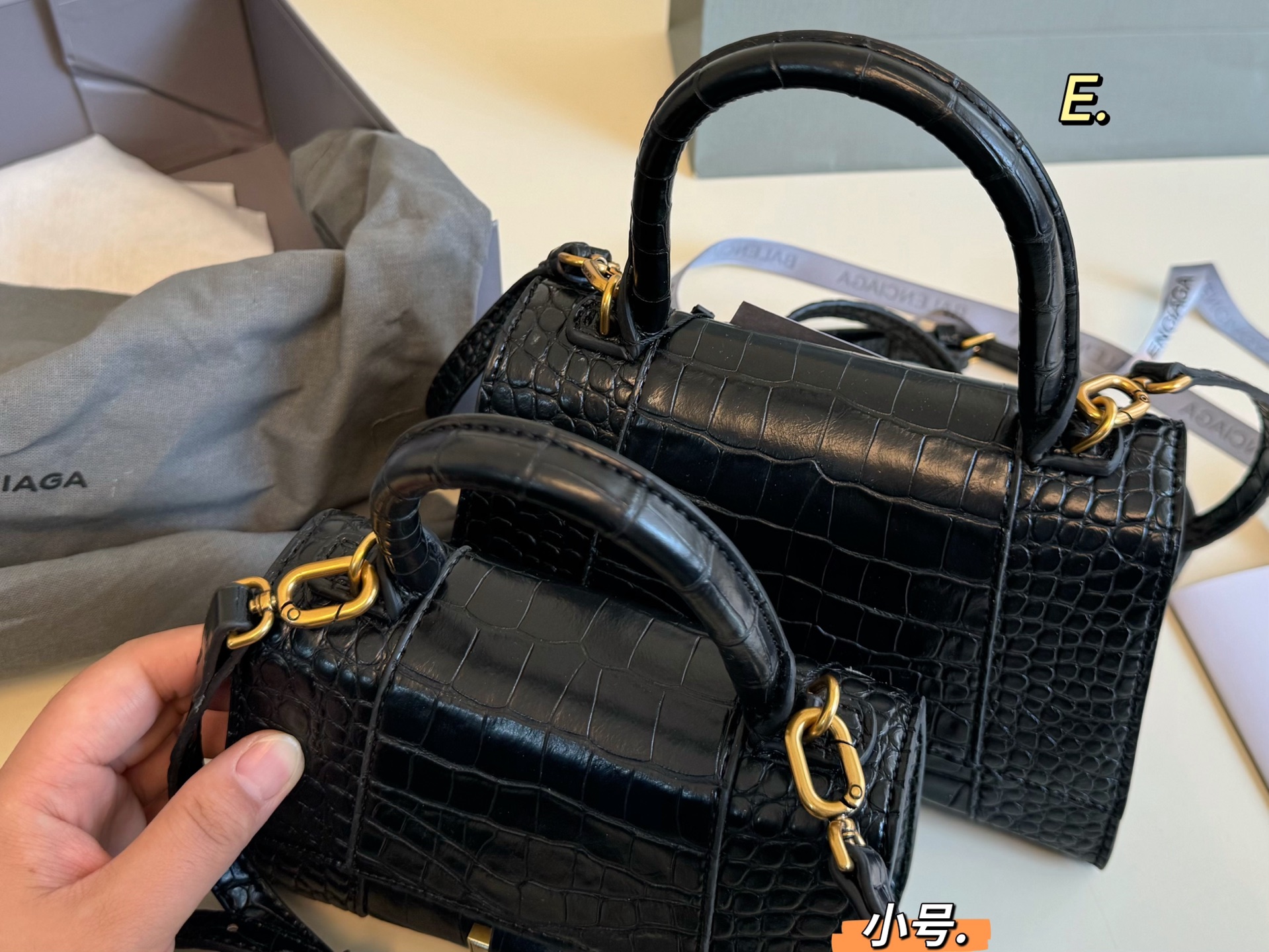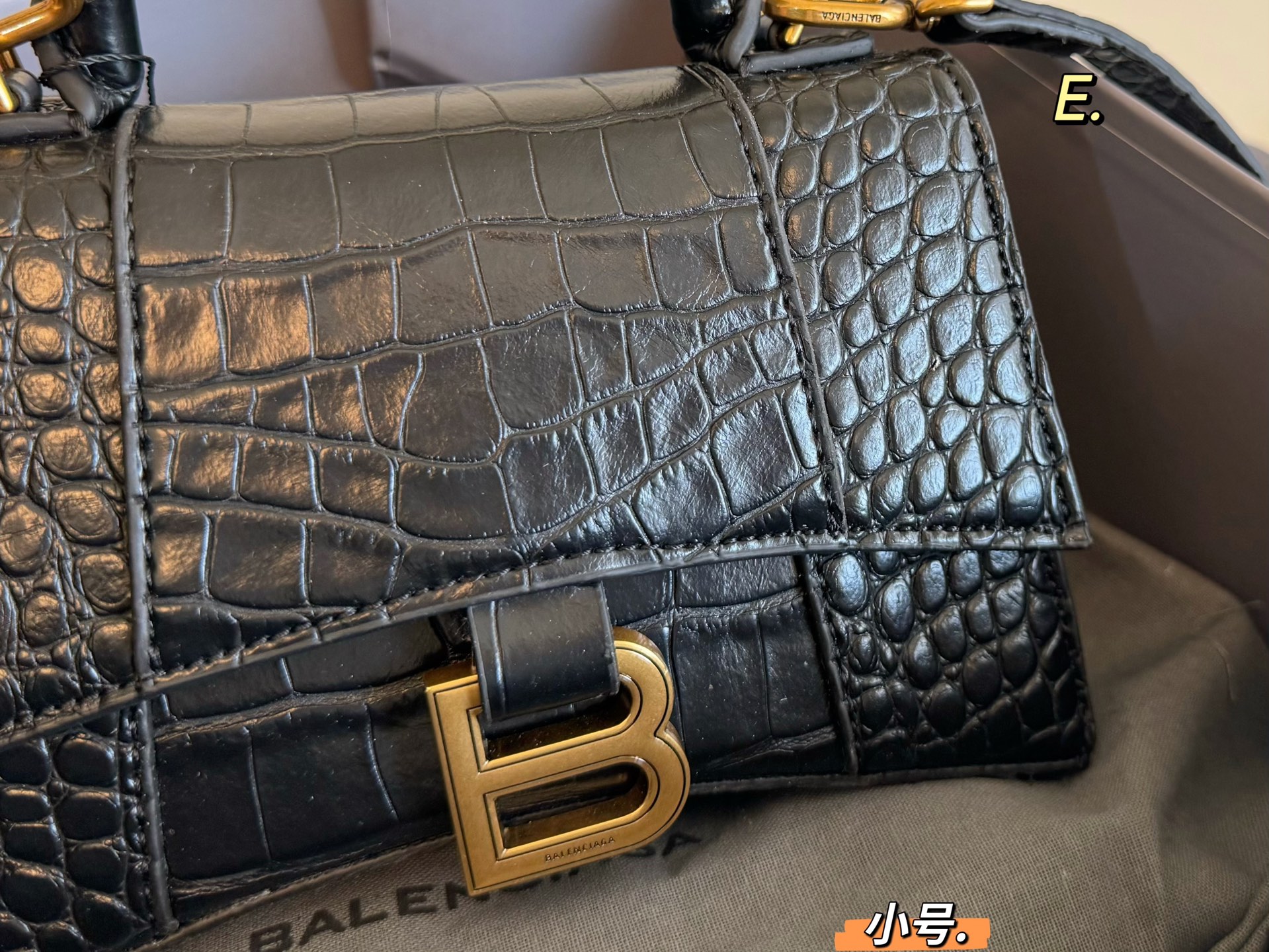 バレンシアガのミニボストンバッグ、ブラック。鱗の模様が美しいキャビアスキンを使用しており、高級感と存在感が抜群です。金色の「B」ロゴがアクセントとなり、洗練された印象を与えます。手提げも可能で、ショルダーとしても使える versatileなデザインです。普段使いから、ちょっとしたお出かけまで、幅広いシーンで活躍します。 なぜこのバッグを選ばないのですか? これは、あなたのスタイルをより魅力的に見せるための、素晴らしいアイテムです。