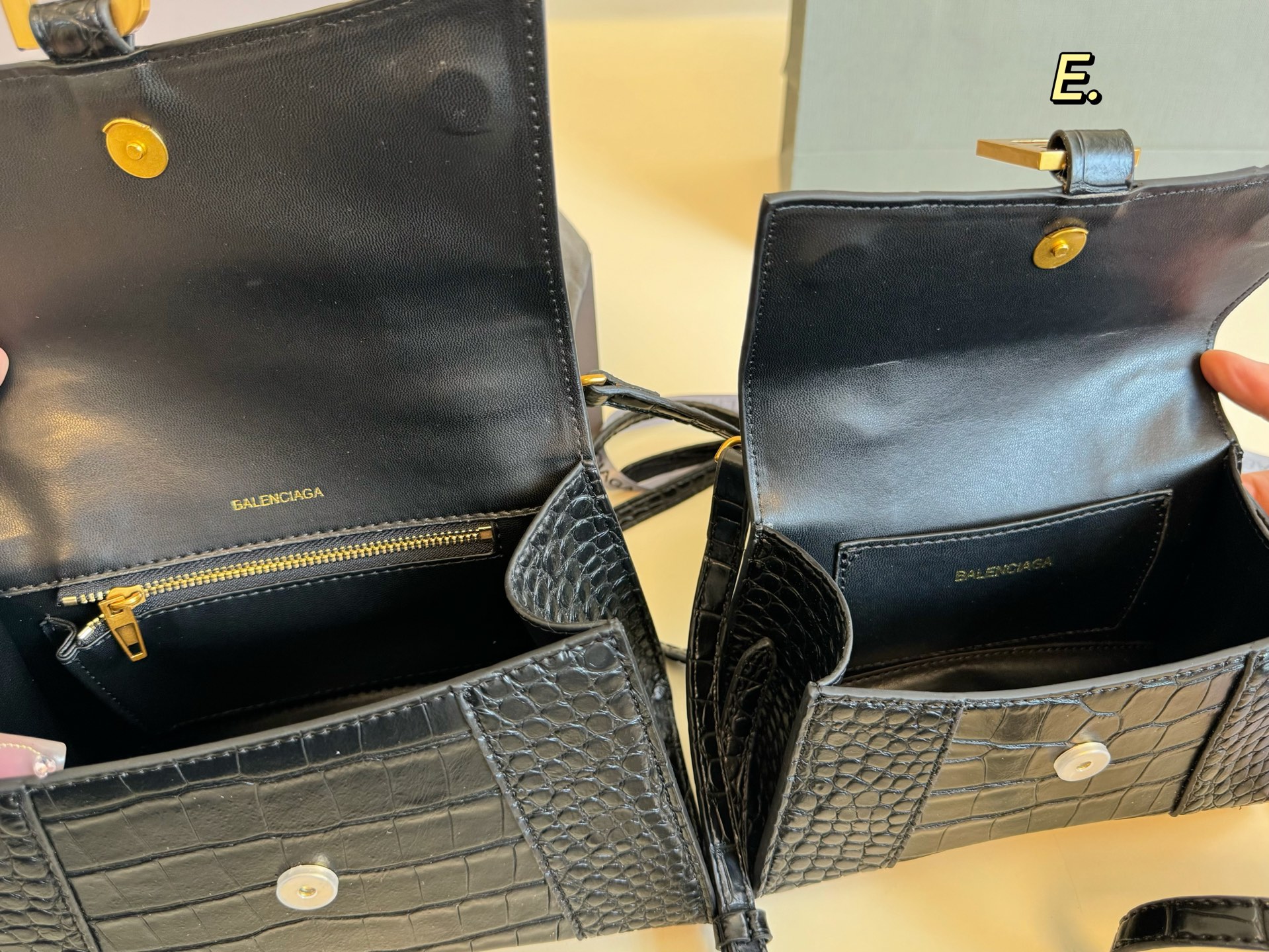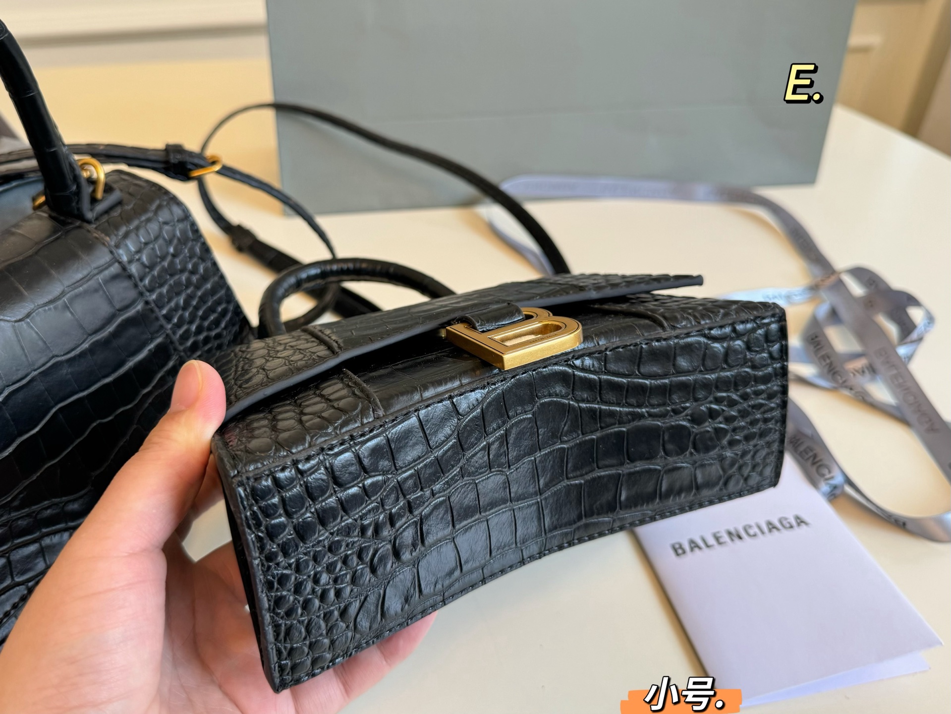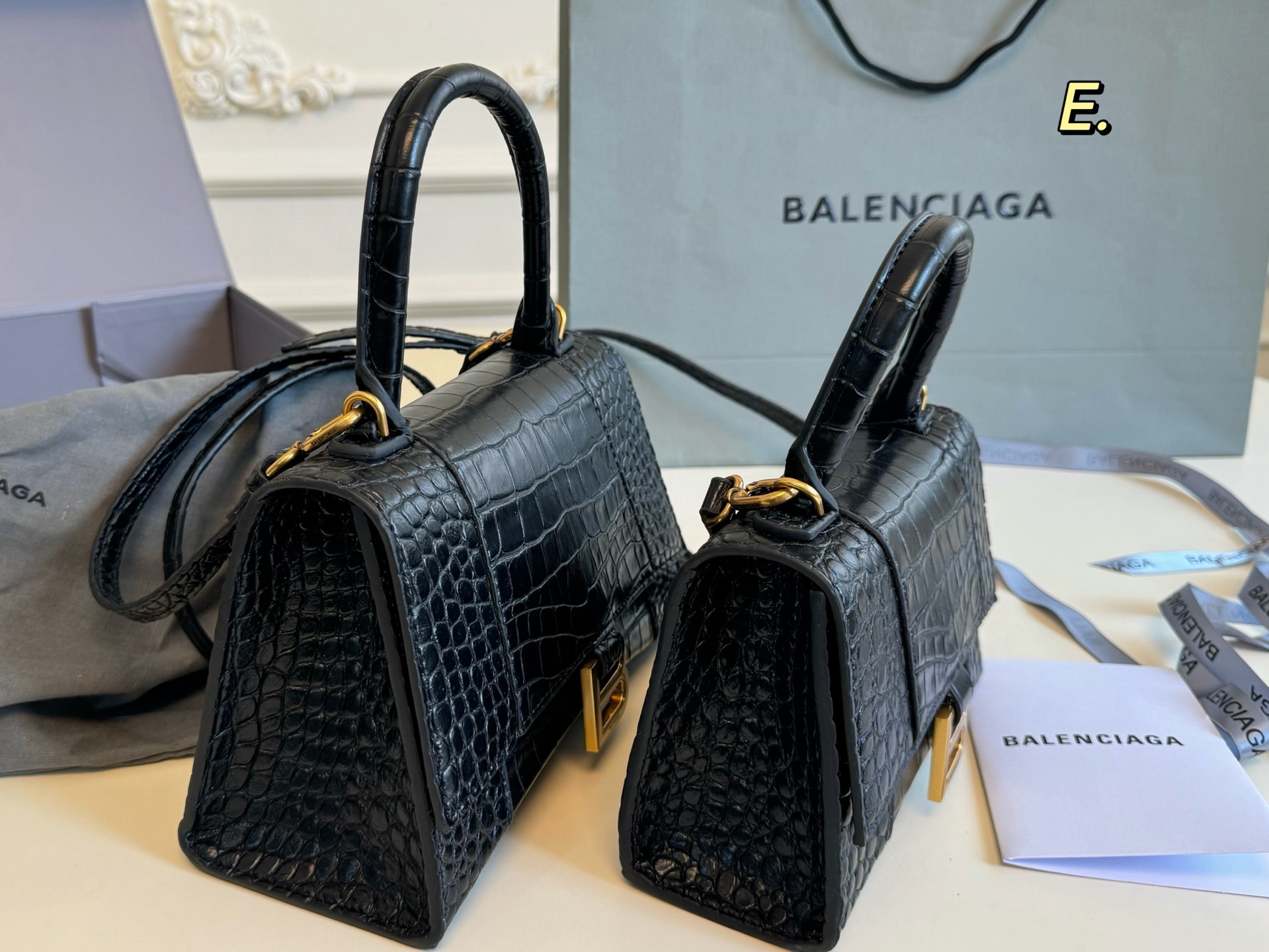 バレンシアガのミニボストンバッグ、ブラック。鱗の模様が美しいキャビアスキンを使用しており、高級感と存在感が抜群です。金色の「B」ロゴがアクセントとなり、洗練された印象を与えます。手提げも可能で、ショルダーとしても使える versatileなデザインです。普段使いから、ちょっとしたお出かけまで、幅広いシーンで活躍します。 なぜこのバッグを選ばないのですか? これは、あなたのスタイルをより魅力的に見せるための、素晴らしいアイテムです。