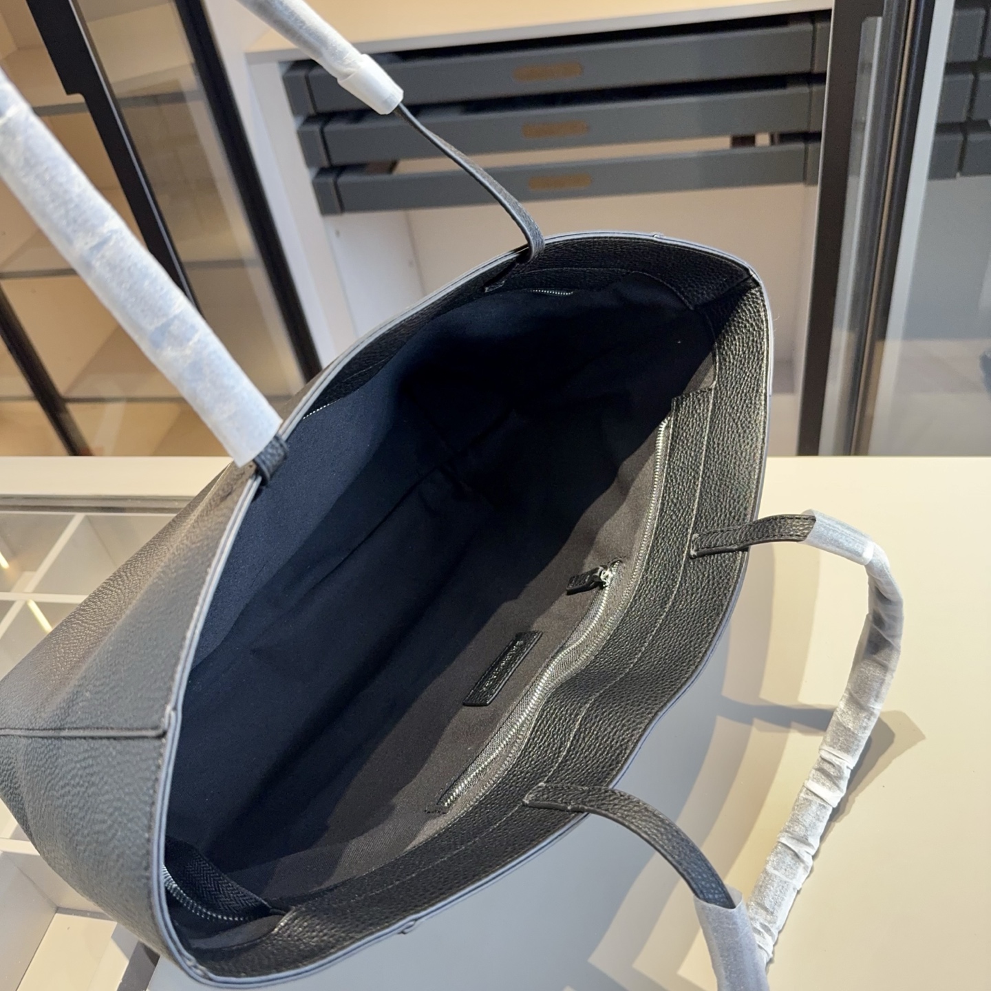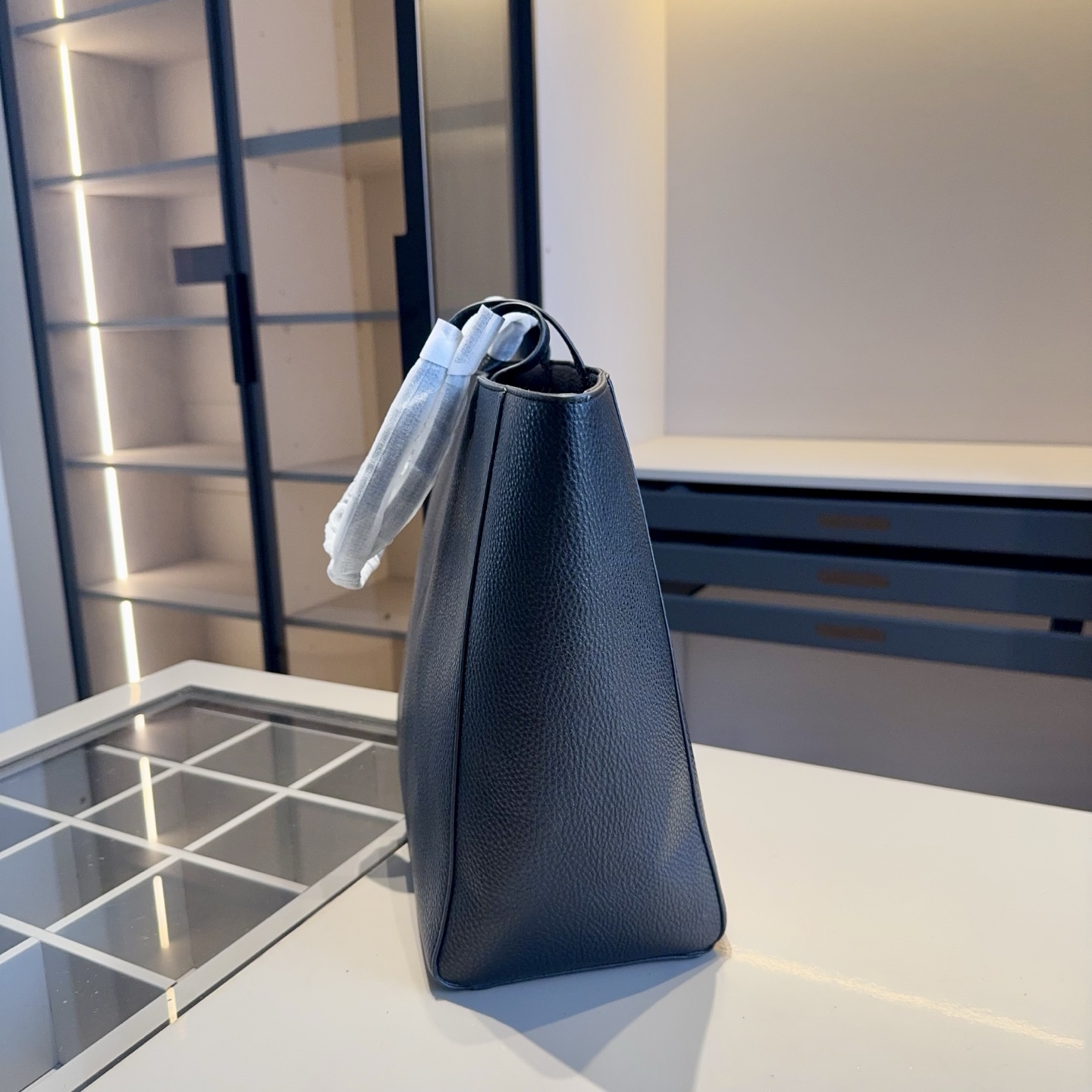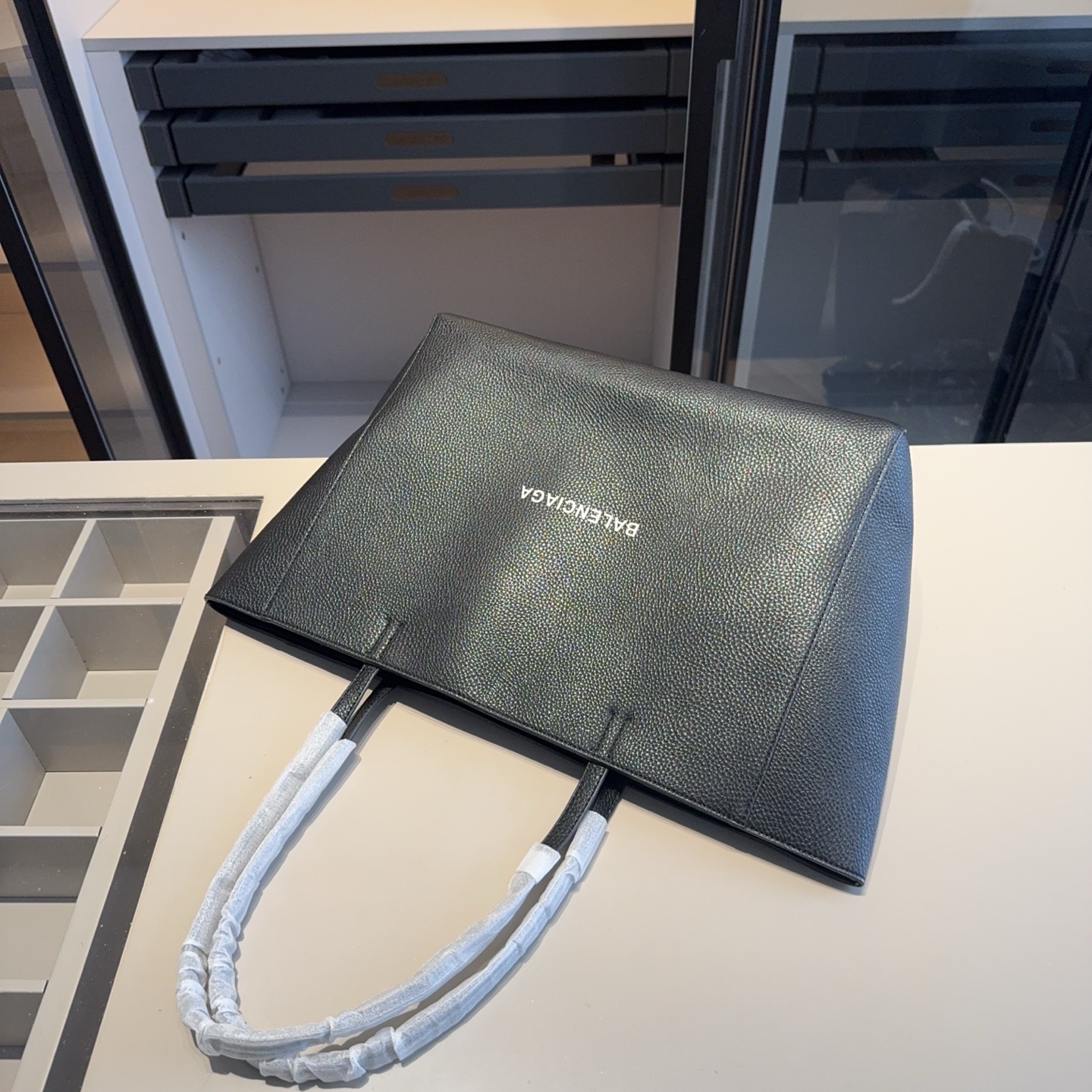 このバレンシアガのレディースバッグは、高級感あふれるブラックの粒状のレザーを使用しています。シンプルなデザインに、前面に白いロゴが映えるのが特徴です。長めのハンドルで、手に持っても肩にかけても使いやすいですね。通勤やお出かけに最適な、機能性とおしゃれさを兼ね備えたバッグです。なぜこのバッグを選ばないでしょうか?
