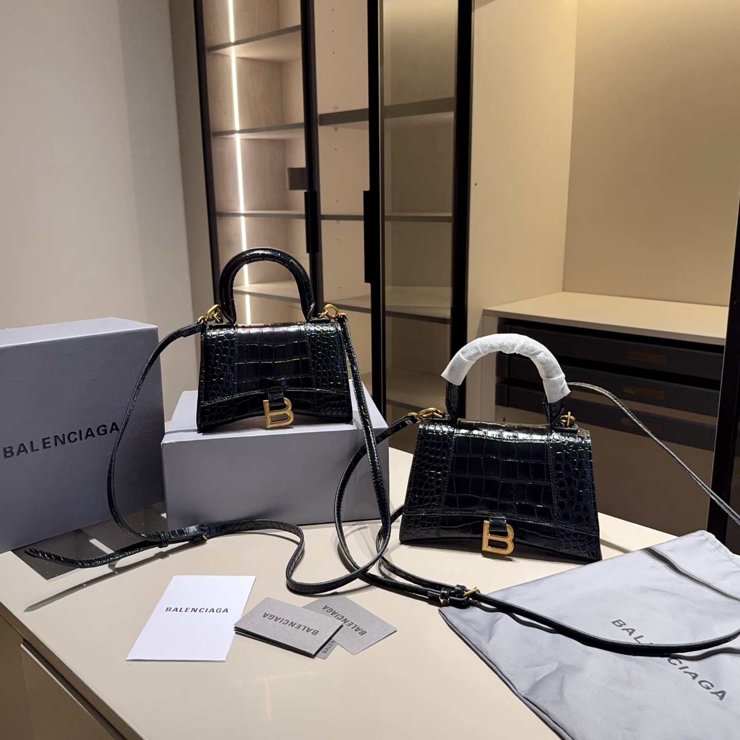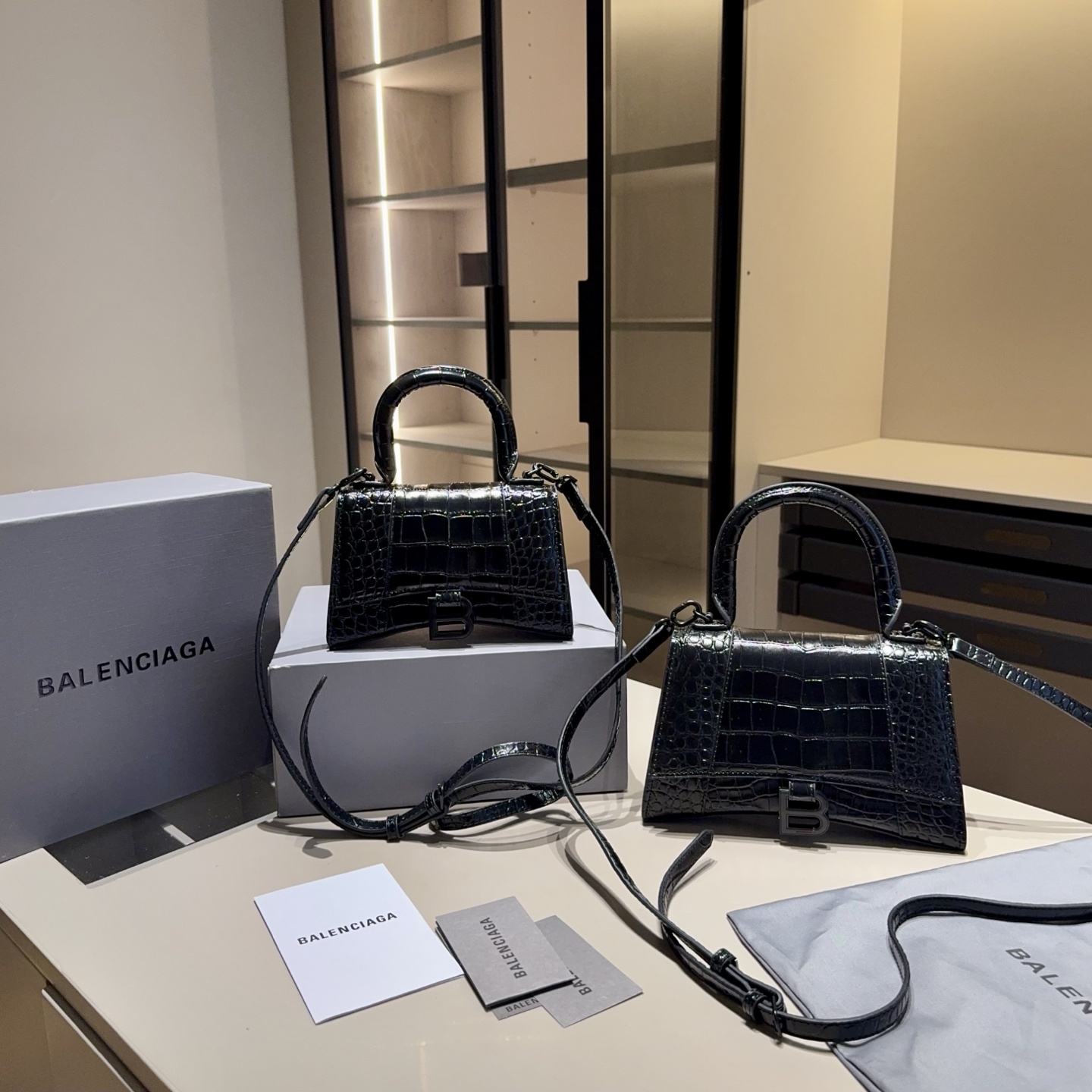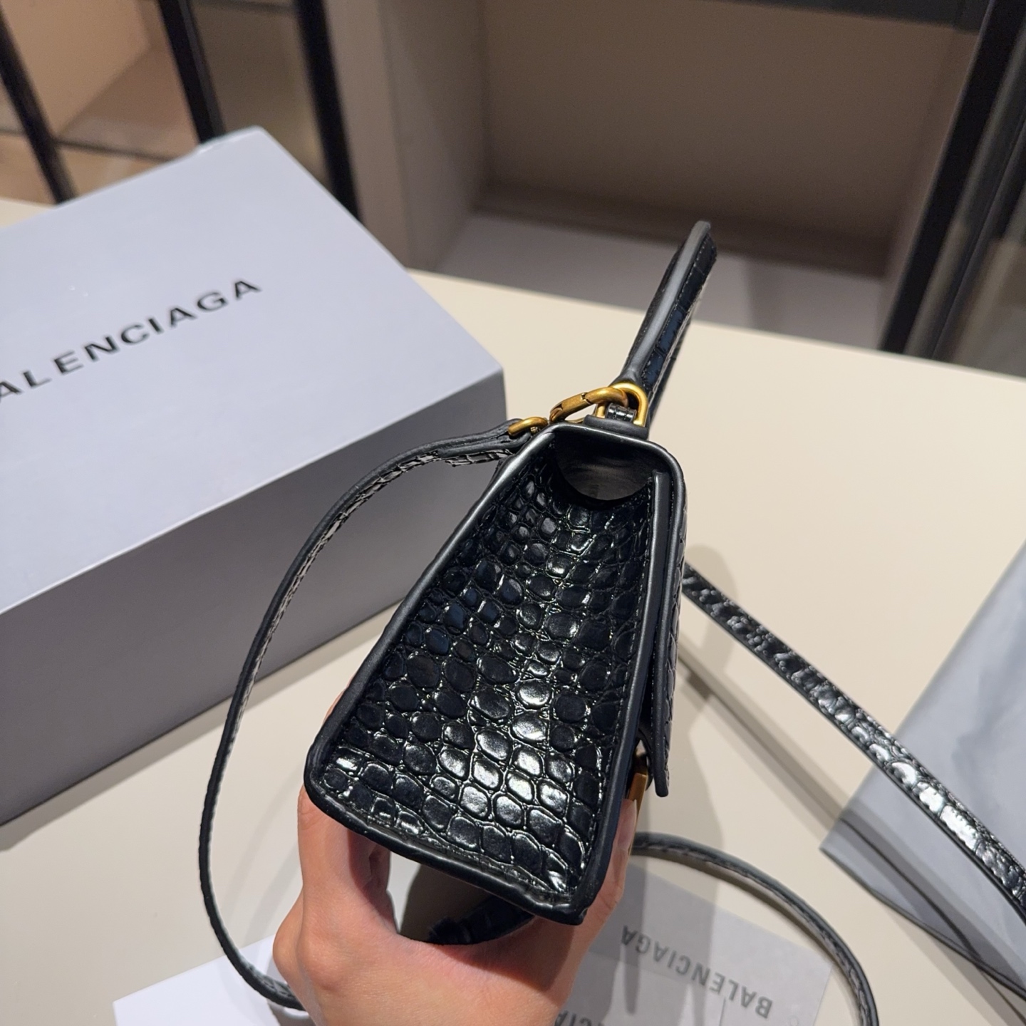 バレンシアガのトートバッグは、光沢のあるクロコダイル調のレザーを使用しています。