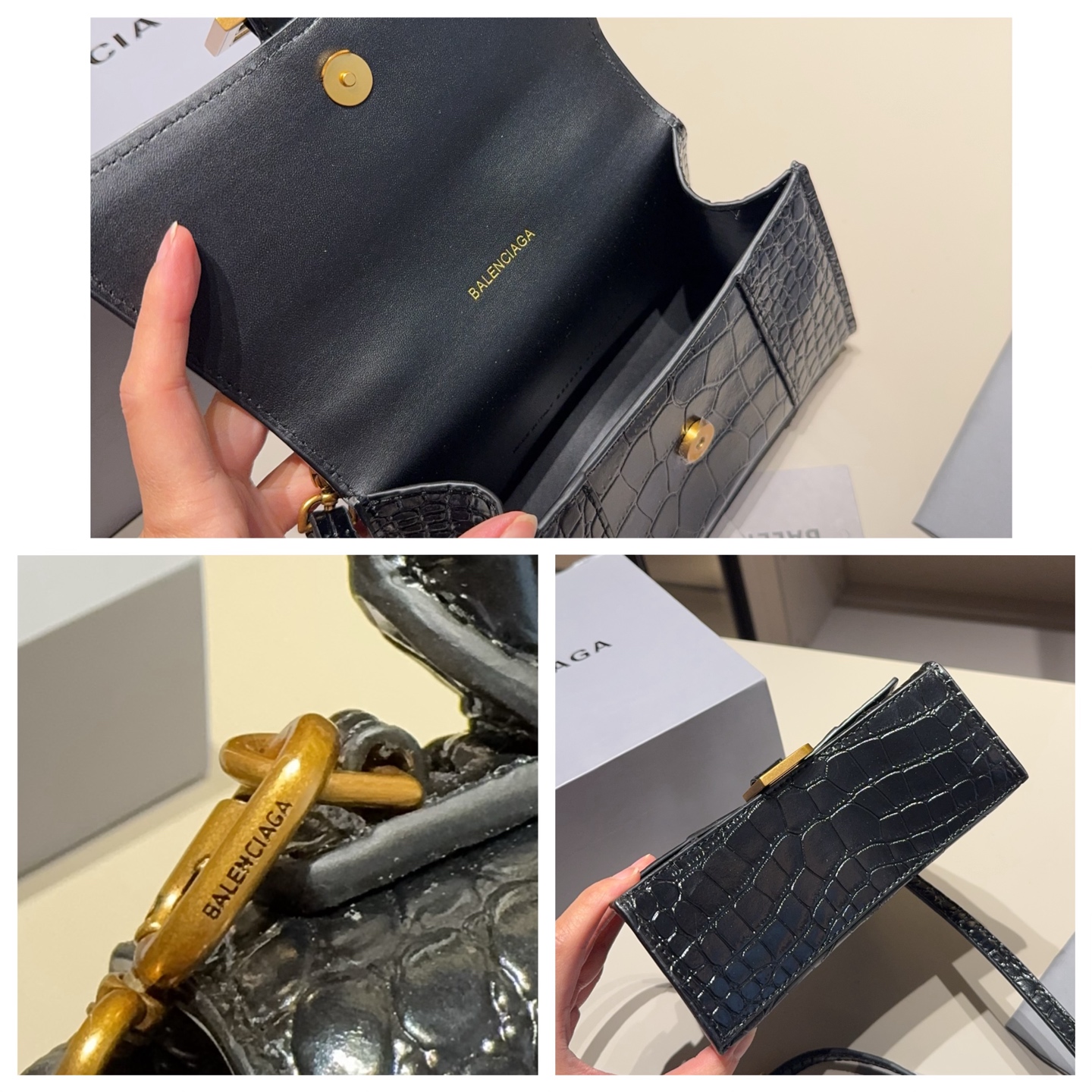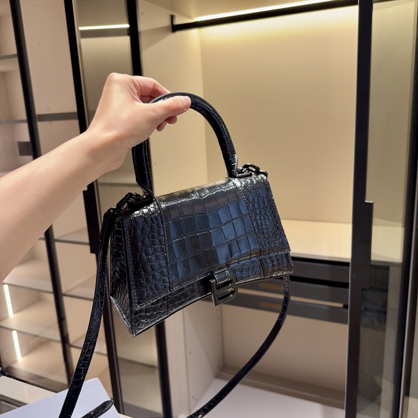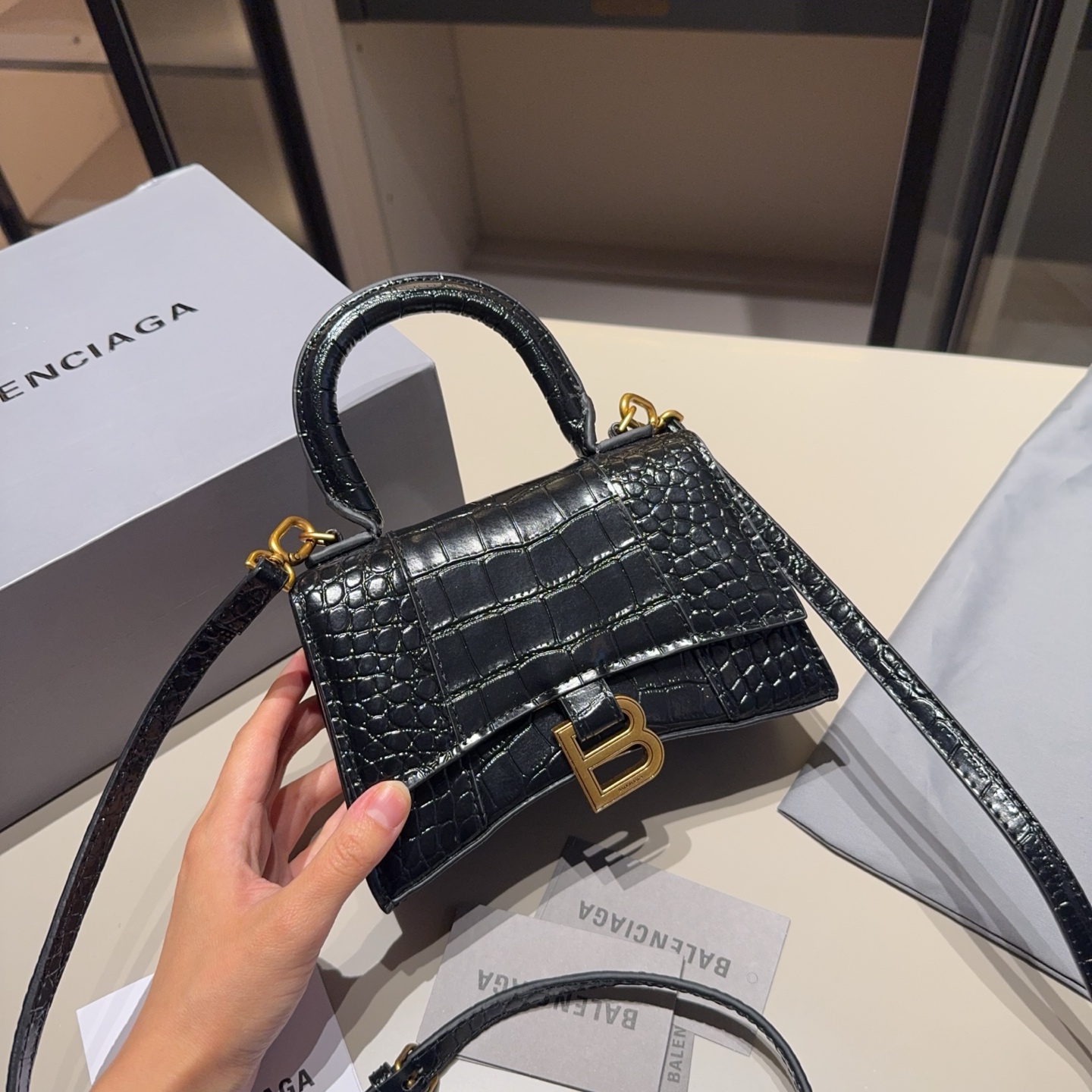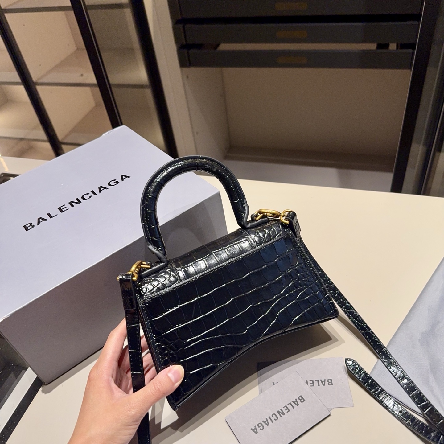 バレンシアガのトートバッグは、光沢のあるクロコダイル調のレザーを使用しています。