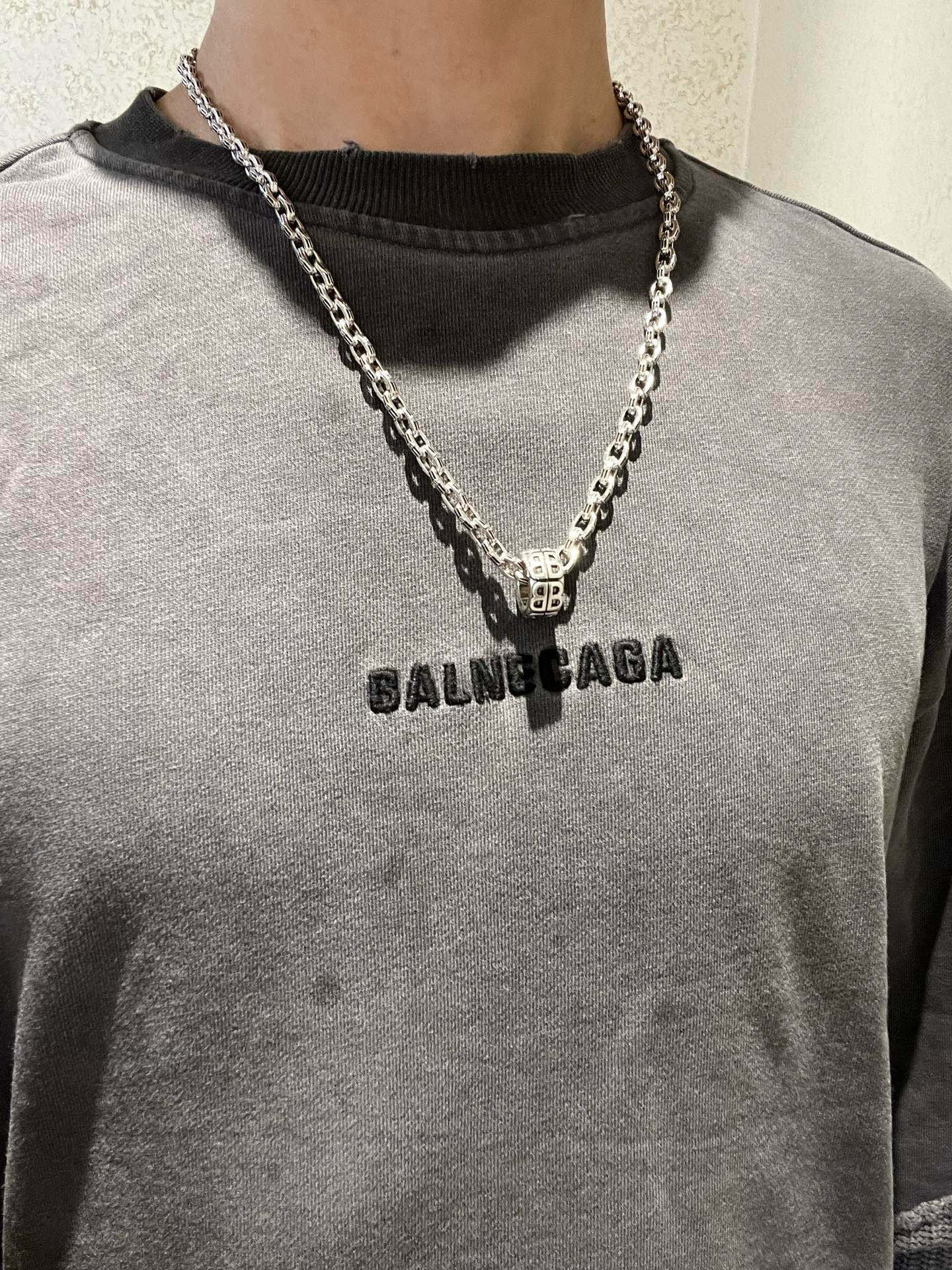 BALenciaga ロゴ チェーン ネックレスは、高級感あふれるシルバー素材で作られています。