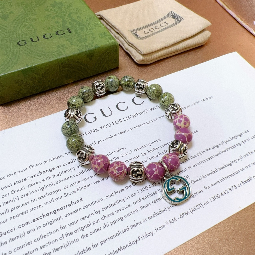 GUCCI ブレスレット グリーンとピンクの天然石 1本入 ✨