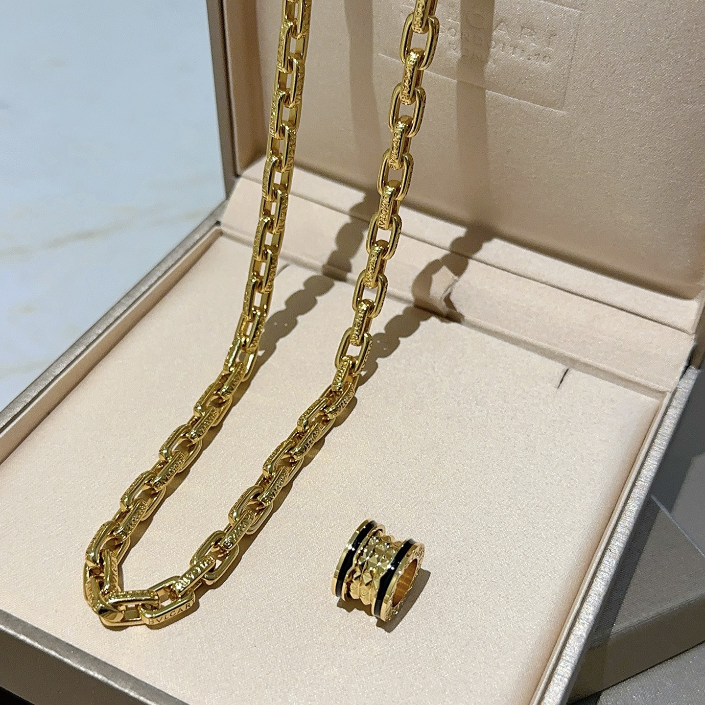 黄金色のロープチェーンが特徴的な、BVLGARIのメンズネックレスとブレスレットの2点セットです。