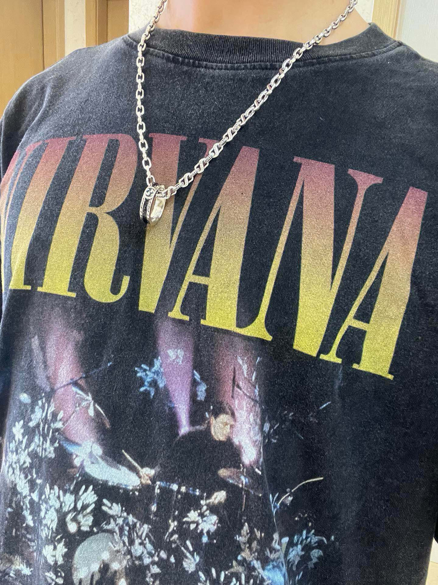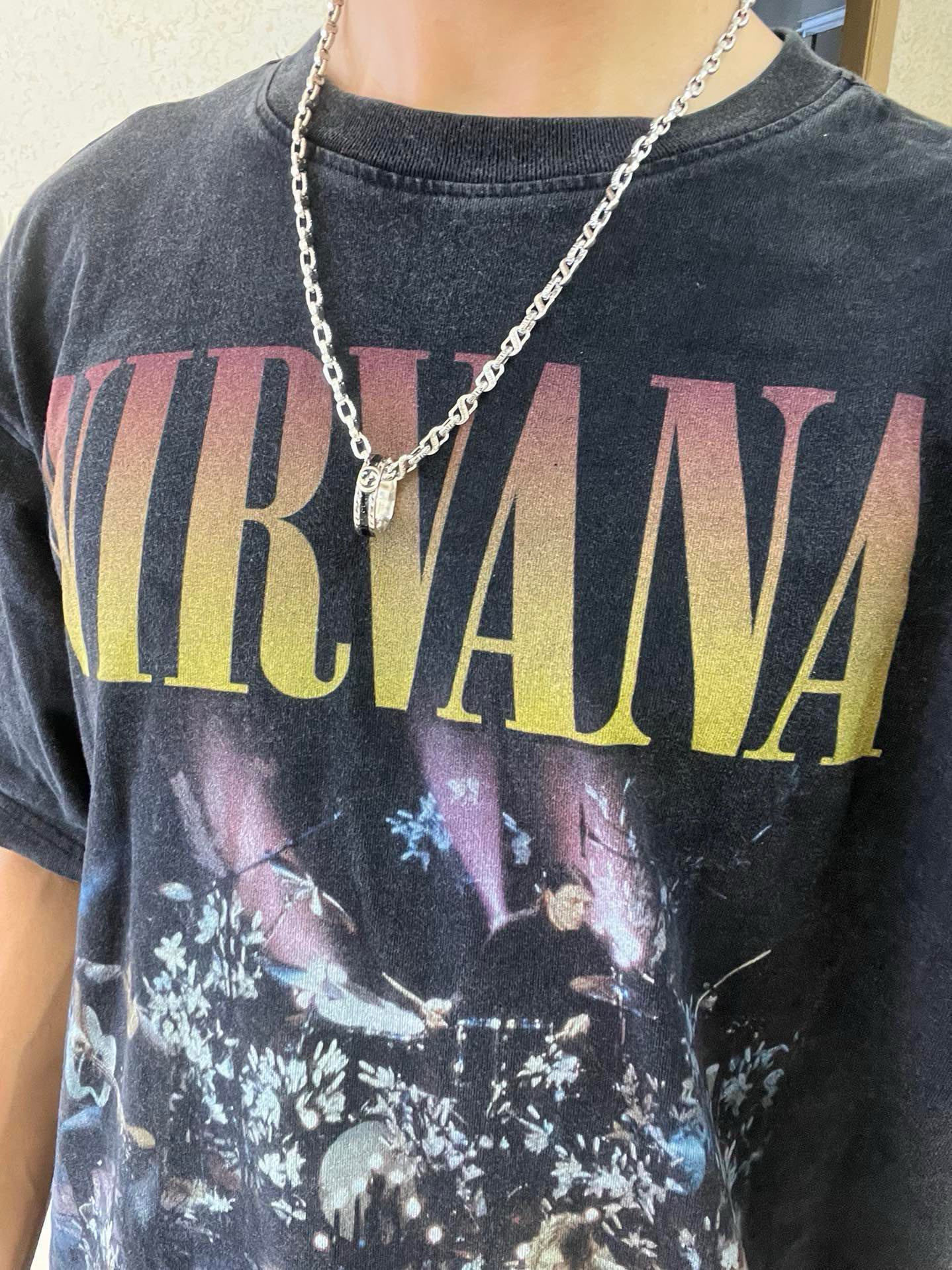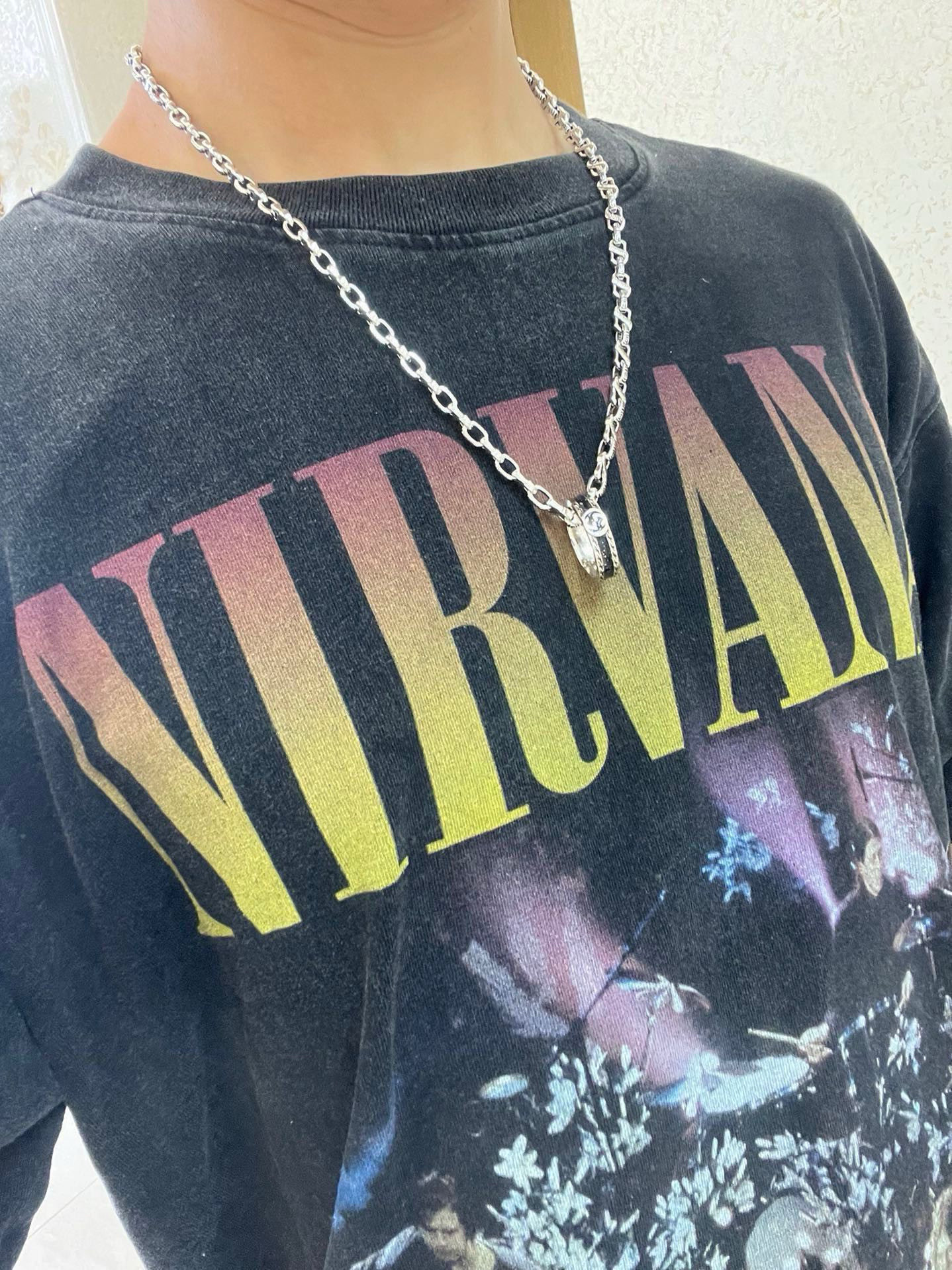 このネックレスは、シルバーカラーの高級感あふれるチェーンと、特徴的なリングが特徴です。リングにはGUCCIのロゴが施され、ブランドのアイデンティティを強調しています。チェーンは太めのリンクで、しっかりとした質感があり、首元を引き締めてくれます。一度に2つのスタイルを楽しめる2way仕様で、ネックレスとして着用するも、リングを外してブレスレットとして使うことも可能です。