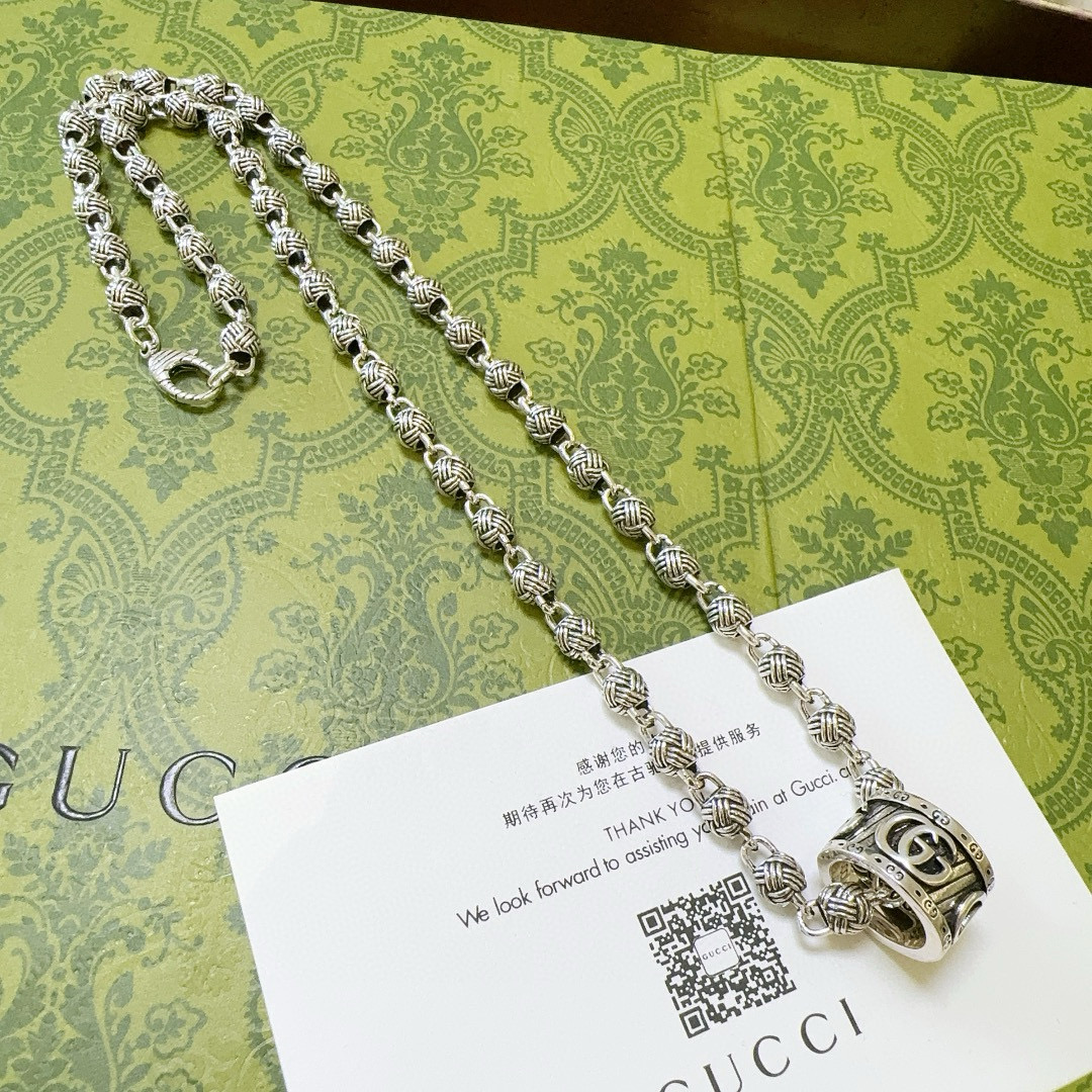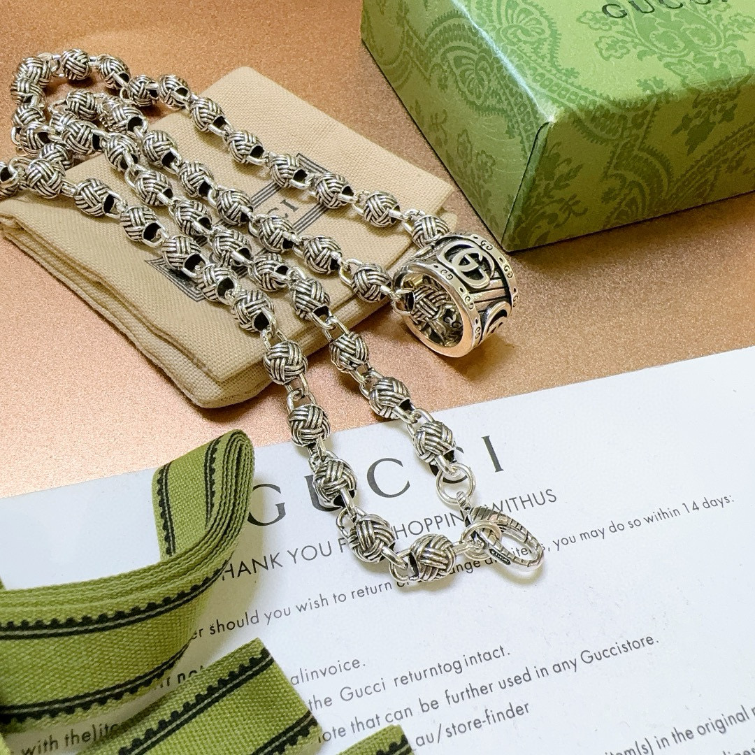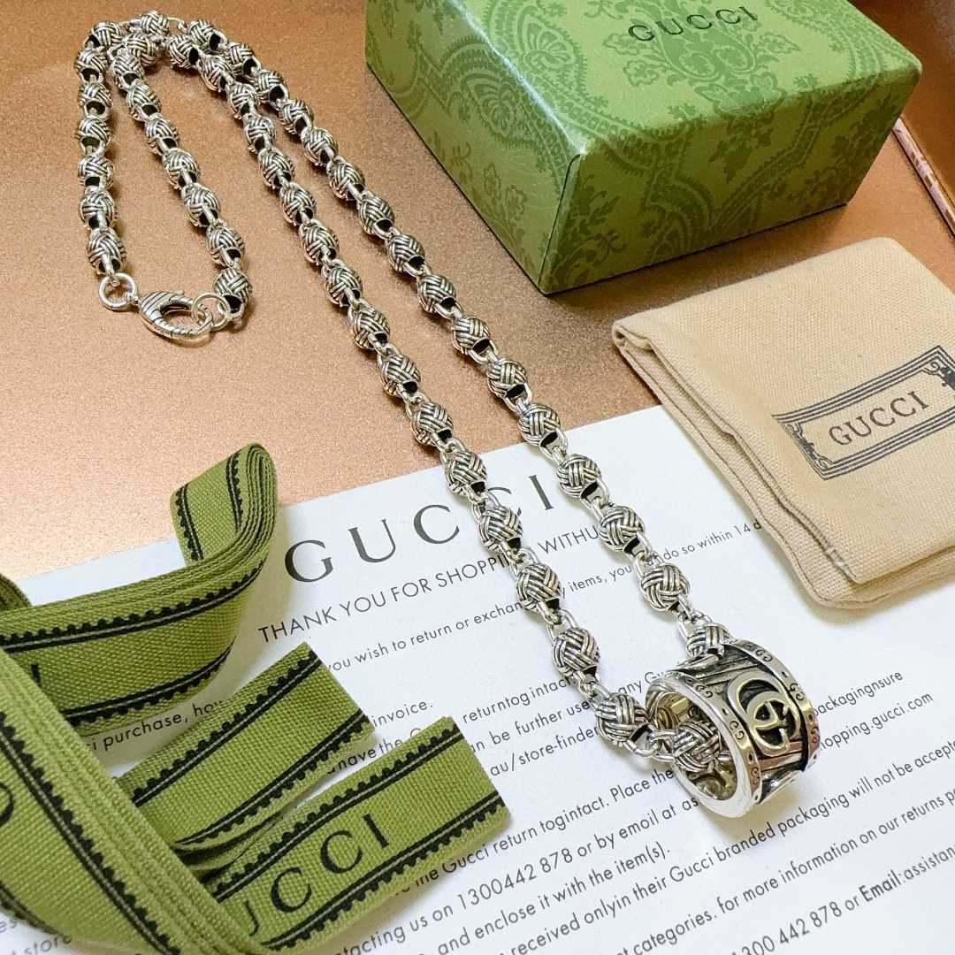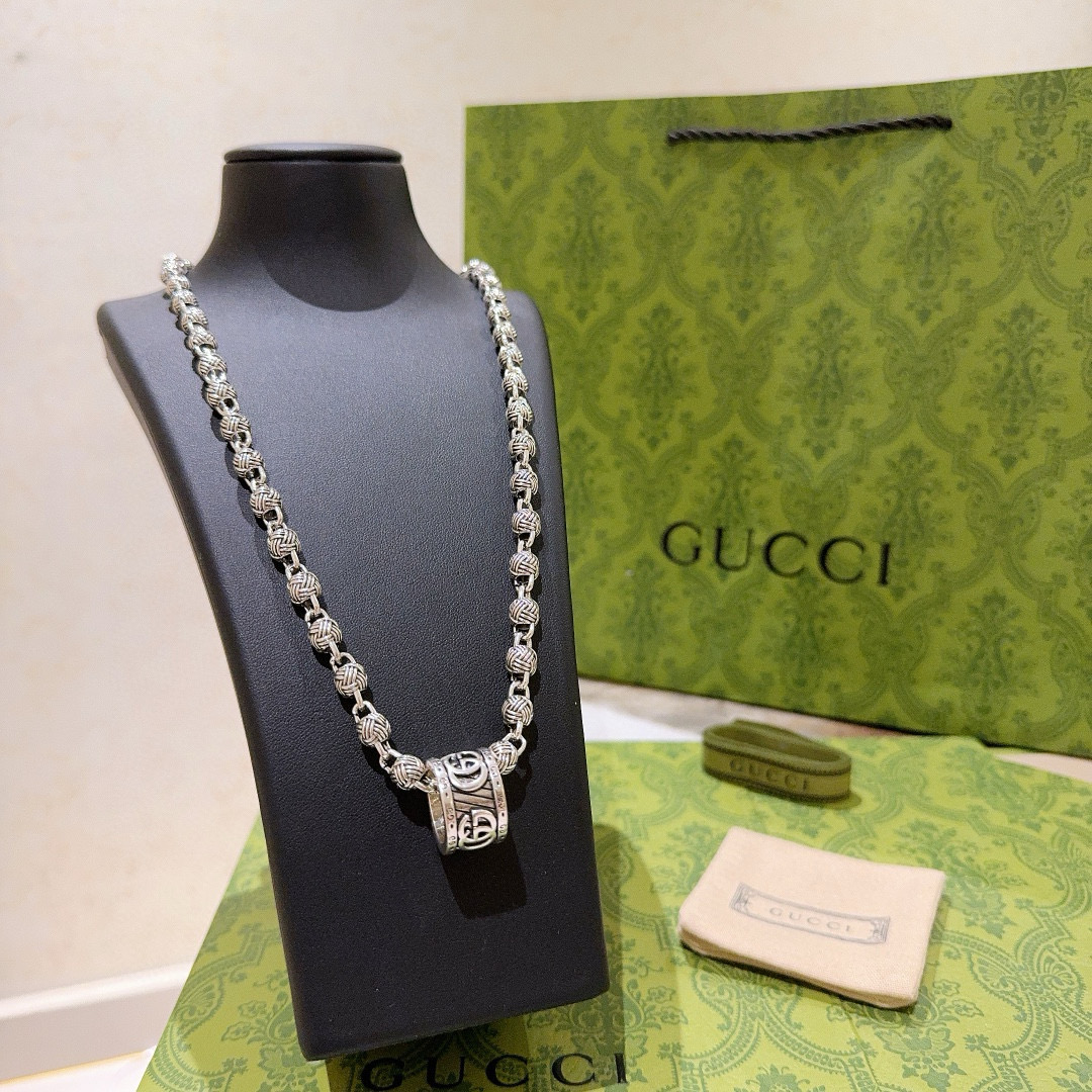シルバーの色合いは、黒や白のトップスに合わせると、より引き立ちます。また、グッチのロゴが入った緑色のバッグや箱も付属しており、ブランドの高級感が際立ちます。これは、プレゼントとしても最適です。