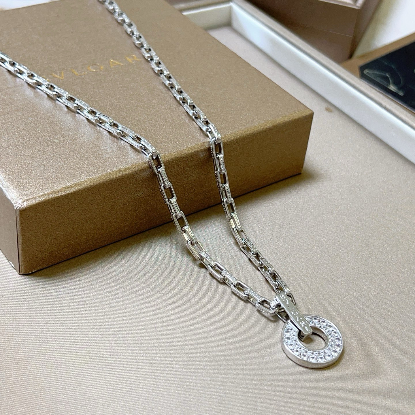 このネックレスは、BVLGARIの伝統と現代的なデザインが融合した、特別な逸品です。