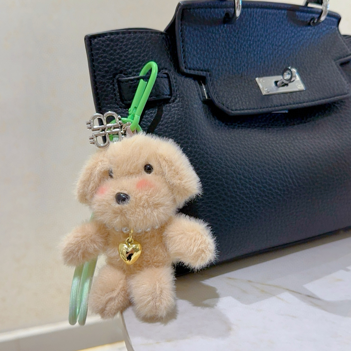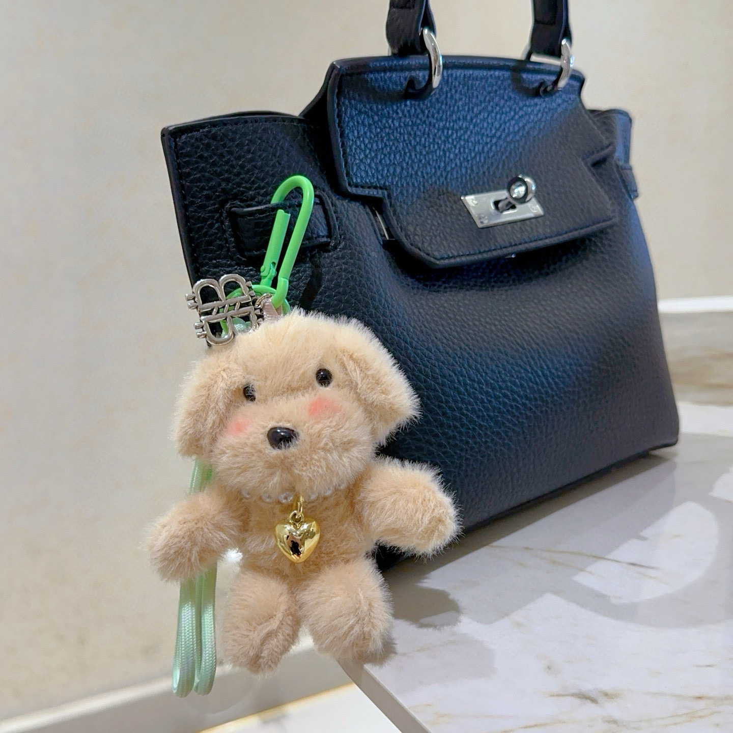 柔らかなベージュの毛並みが特徴の、愛らしいドッグチャーム。
