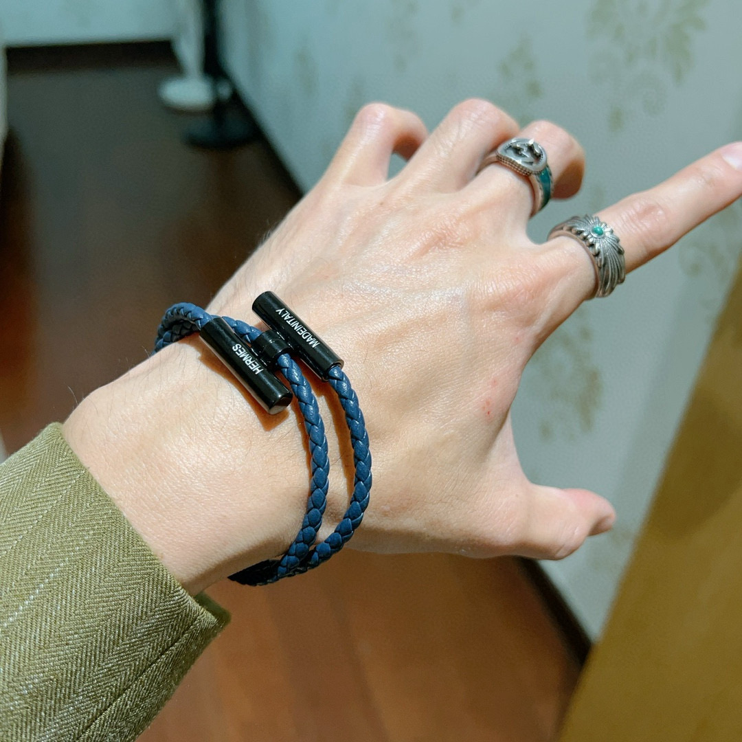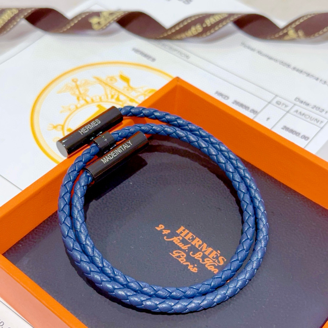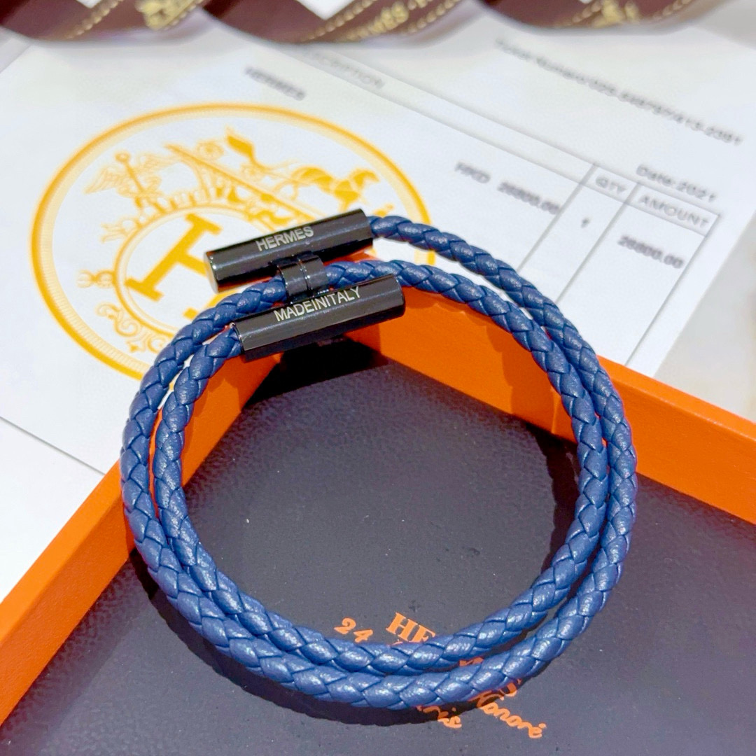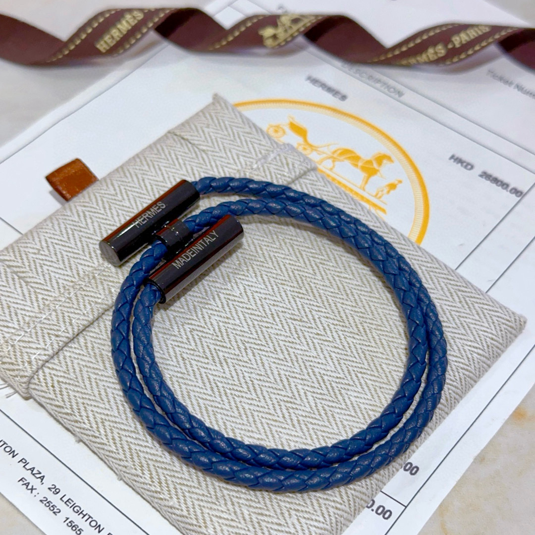 HERMES ブレスレット 2色 ブルー 編み紐 1つで2通りの着け方 🌟