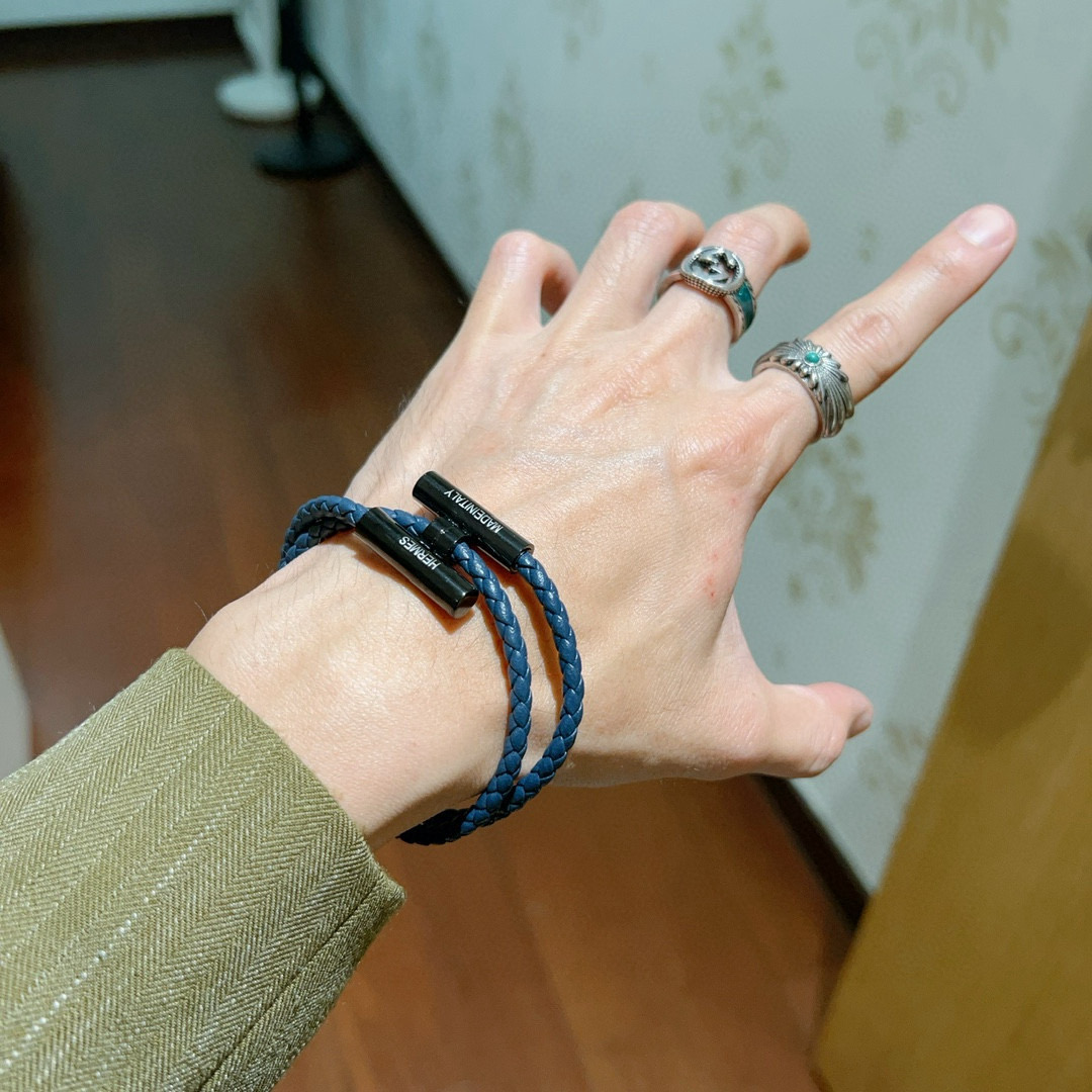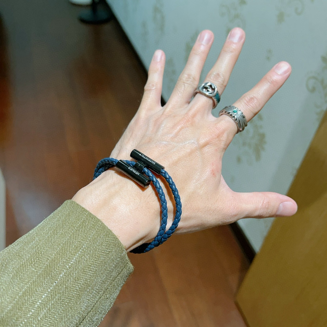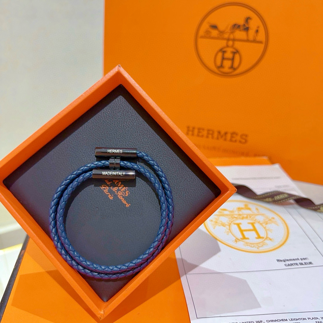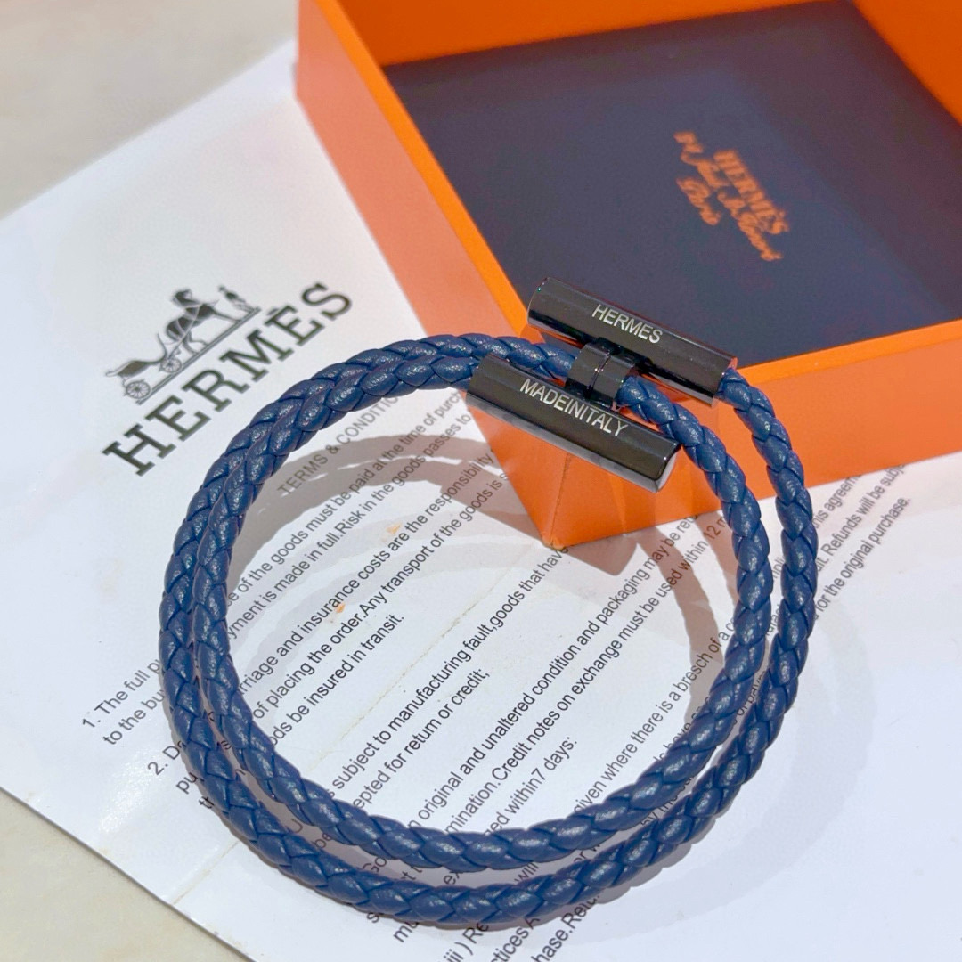 HERMES ブレスレット 2色 ブルー 編み紐 1つで2通りの着け方 🌟