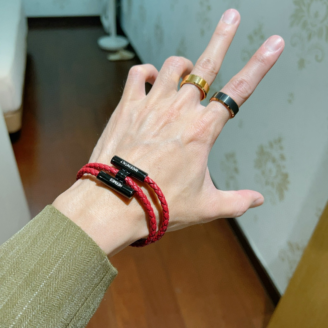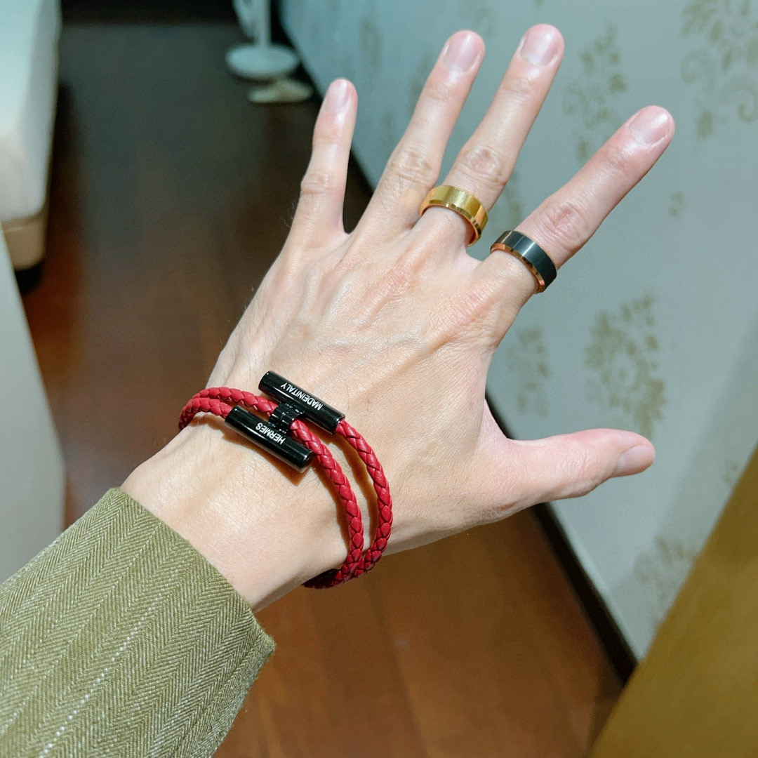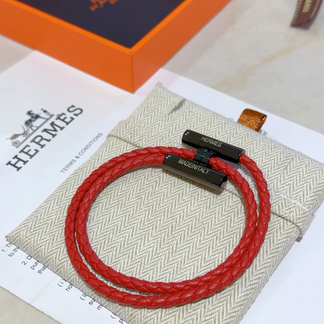 HERMES ブレスレット 赤色 レザー 2本編み レディース メンズ 30代 40代 50代 オシャレ かっこいい 🌹