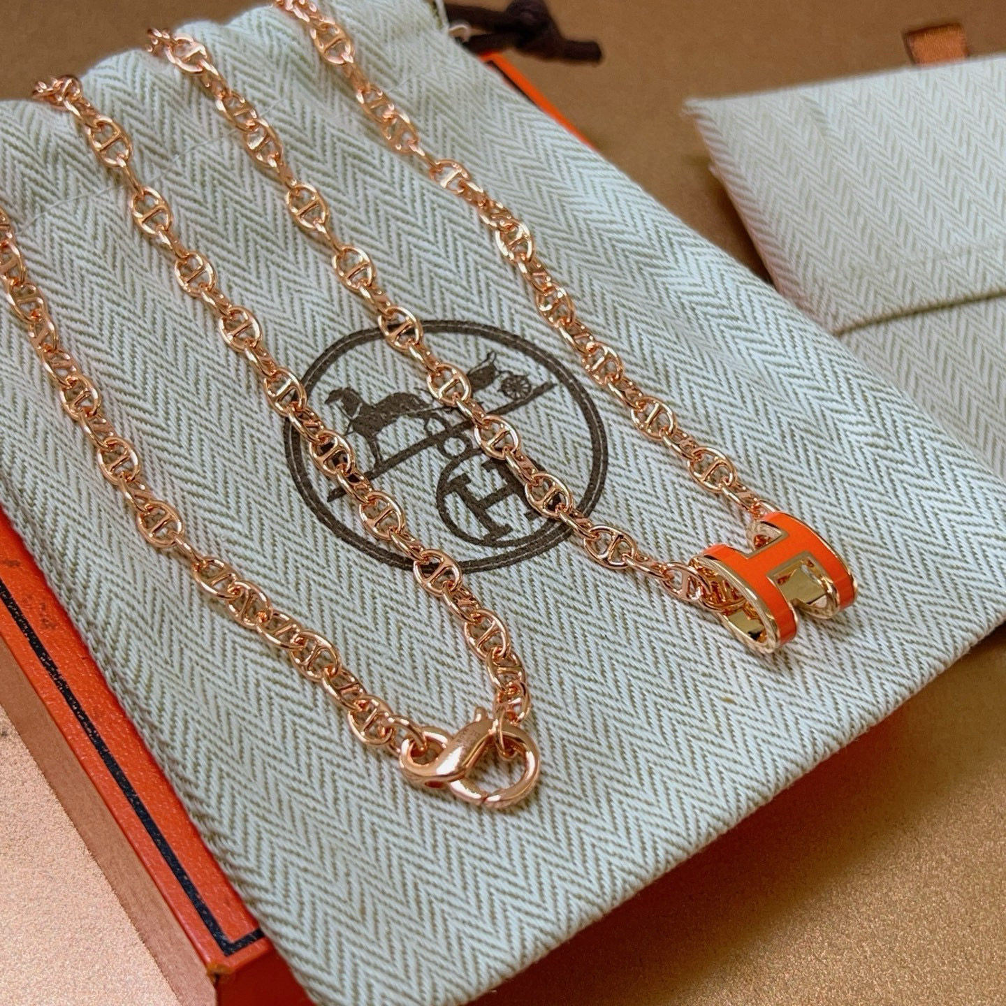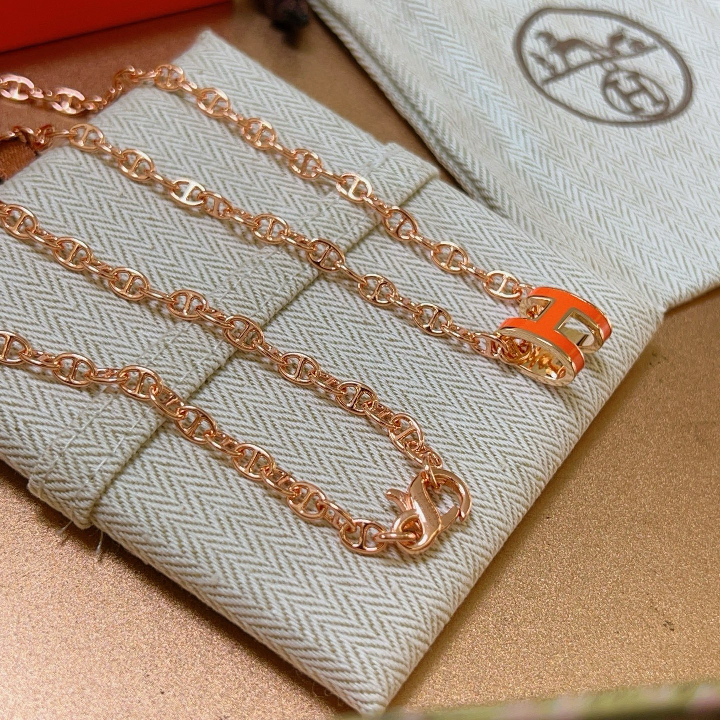 エレガントな エルメス ネックレス ローズゴールド×オレンジ 1本入 🌸
