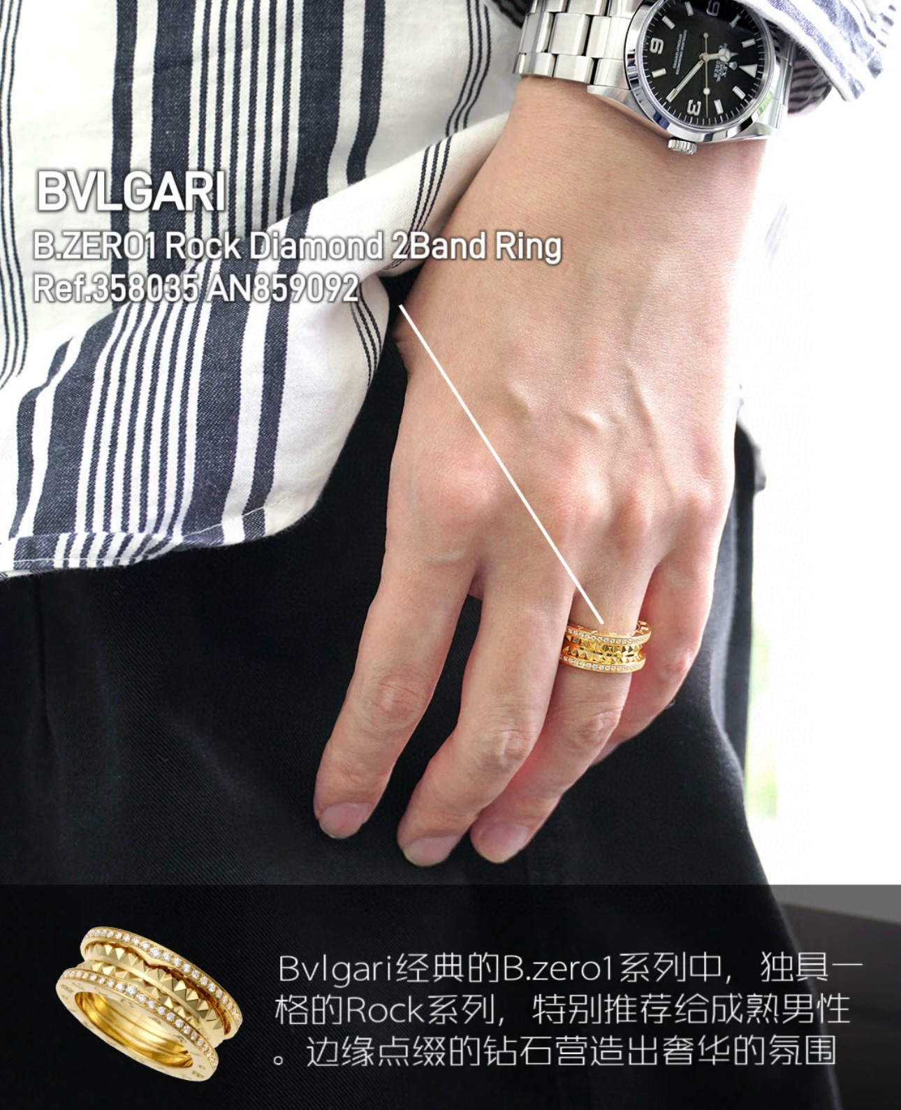 黄金の輝きが美しい、BVLGARI B.ZERO1 ロック ダイヤモンド リング。