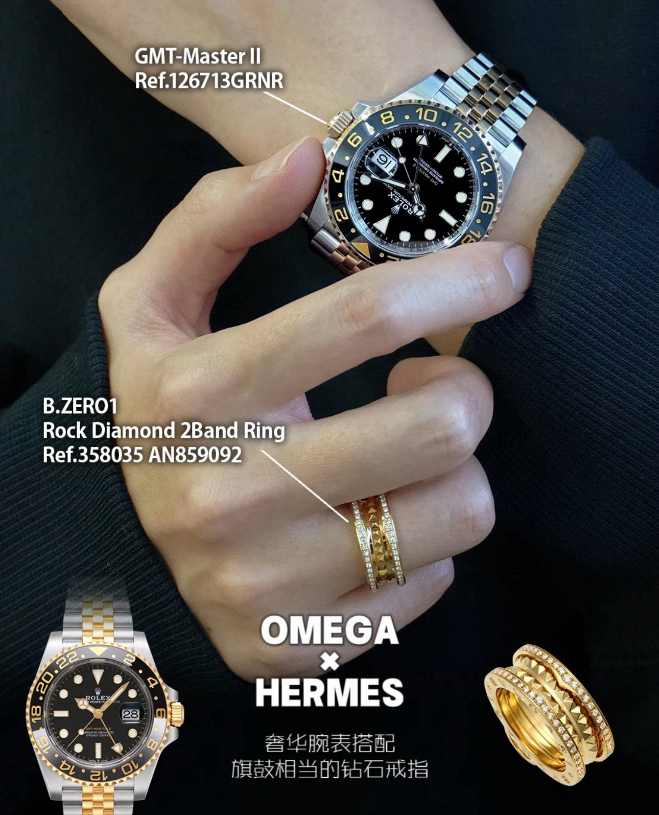 1本はダイヤモンドがちりばめられた華やかなデザインで、もう1本は「BVLGARI」の文字が刻まれたクラシックな仕上がり。