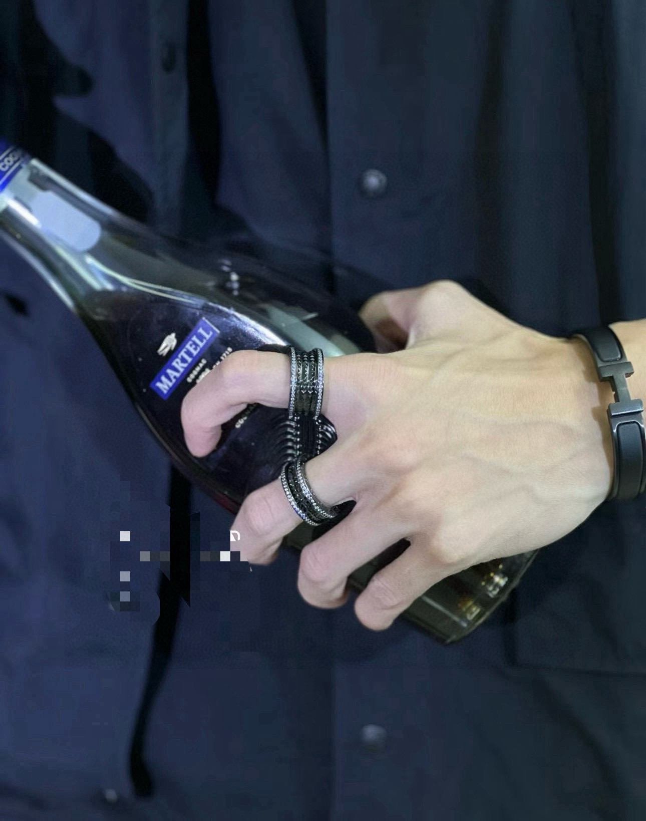 ブラックのロレット加工が施された高級感あふれるリング3本セットです。