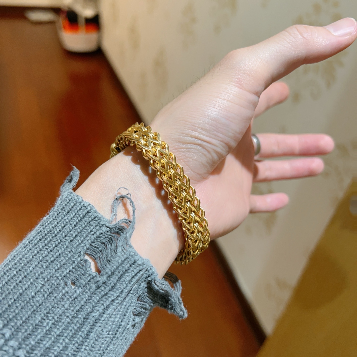 このブレスレットは、女性の手元をより華やかに彩る、まさに「おしゃれのポイント」です。