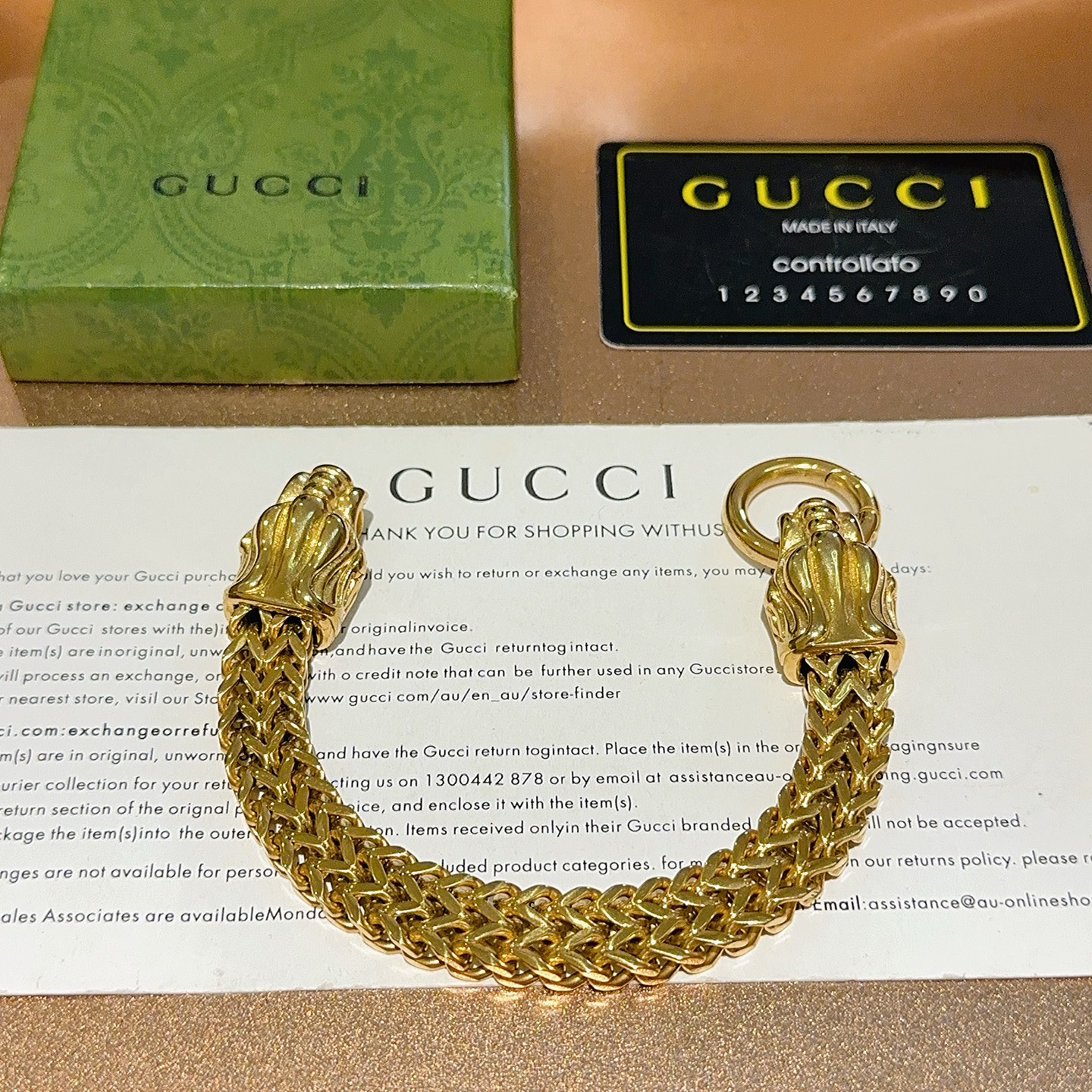 このGUCCI ブレスレットは、鮮やかなゴールドカラーが特徴で、高級感が漂います