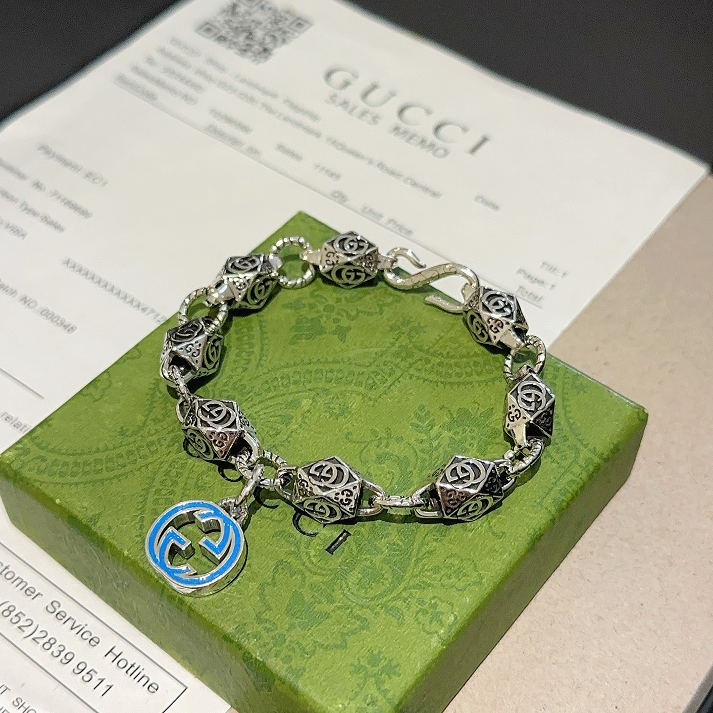 GUCCI ブレスレット シルバー ブルーエンamel メンズ 1点物