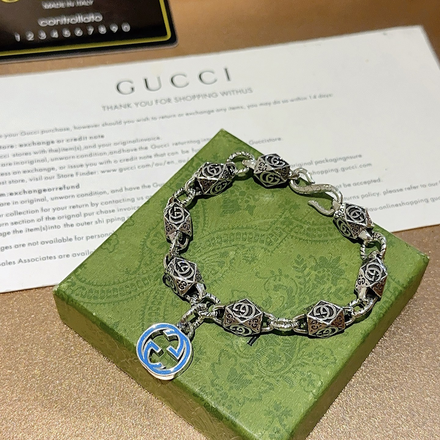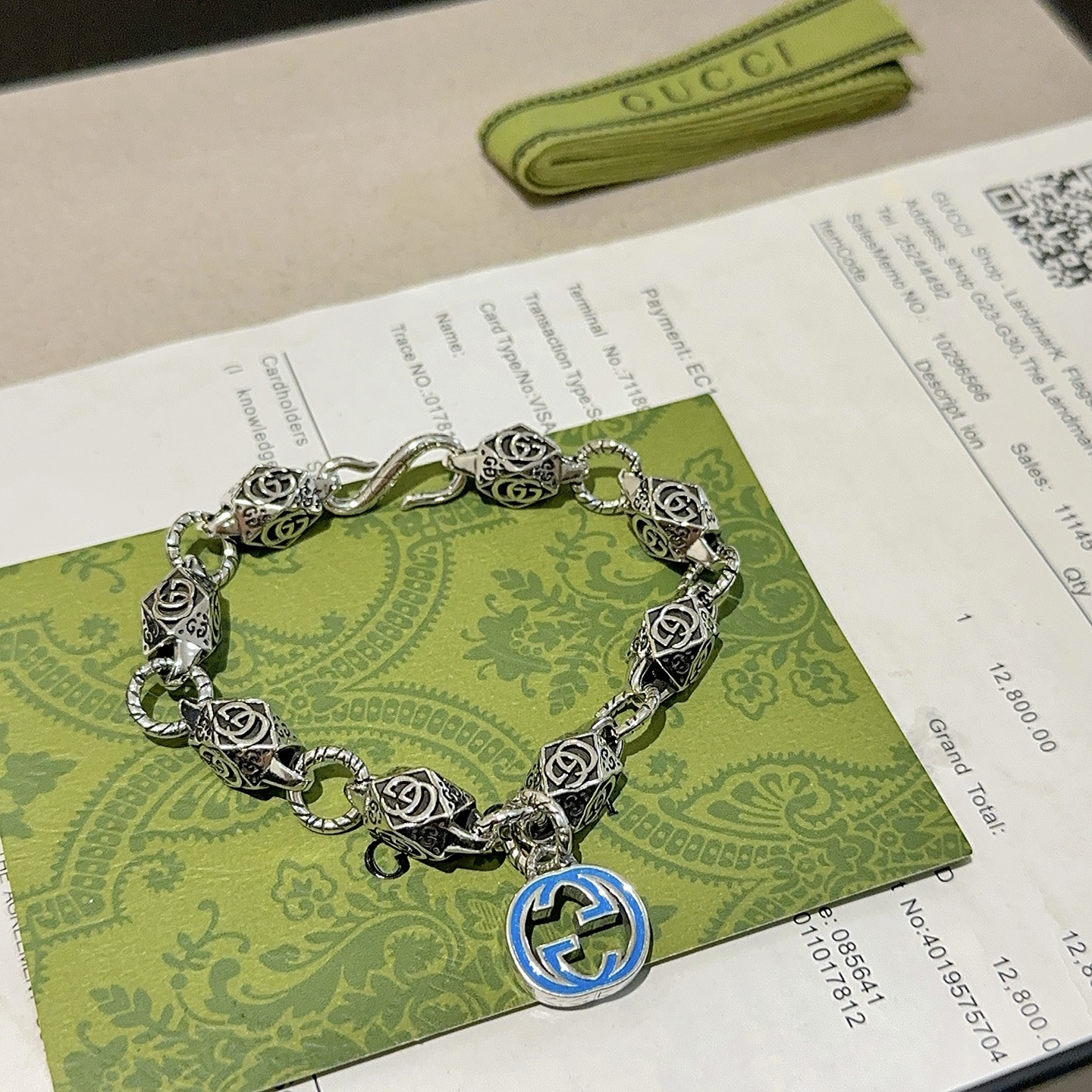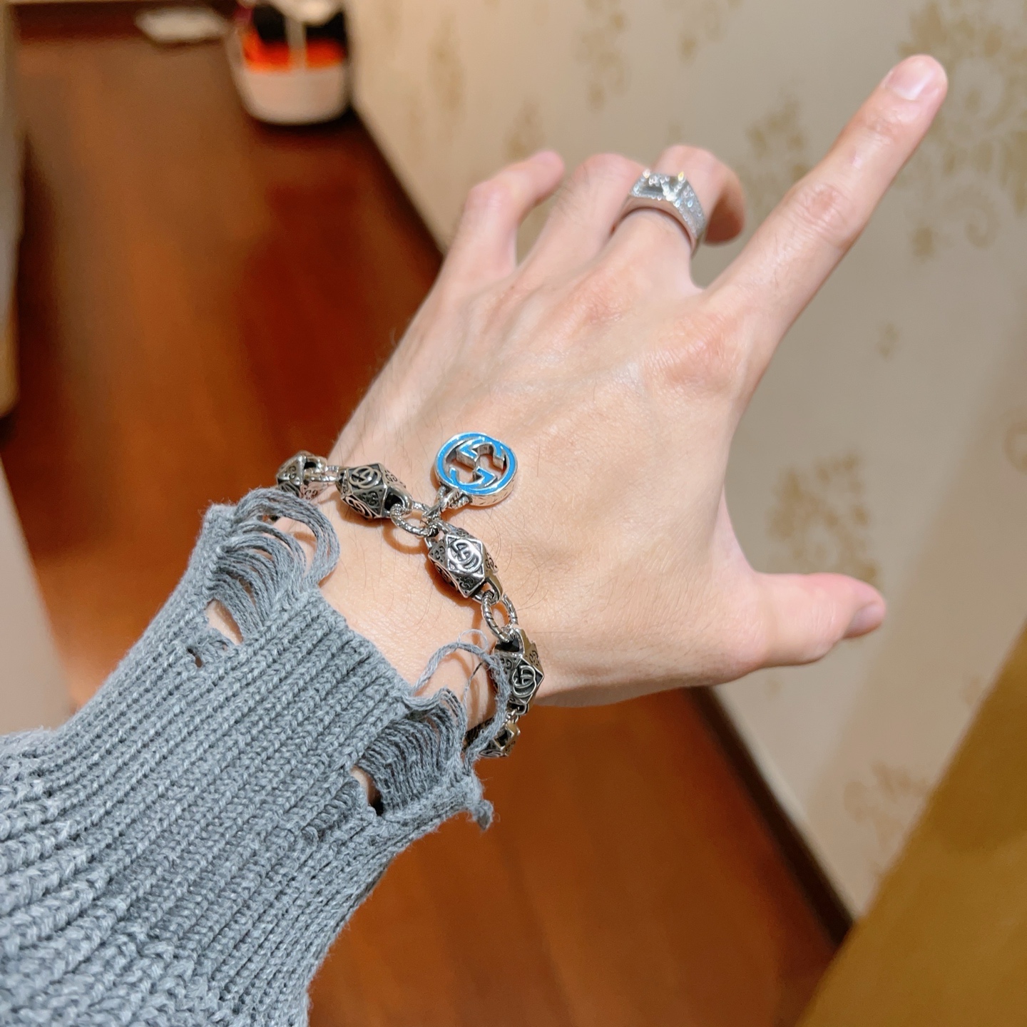 GUCCI ブレスレット シルバー ブルーエンamel メンズ 1点物 🖤