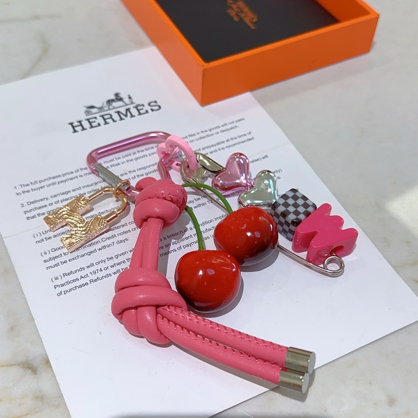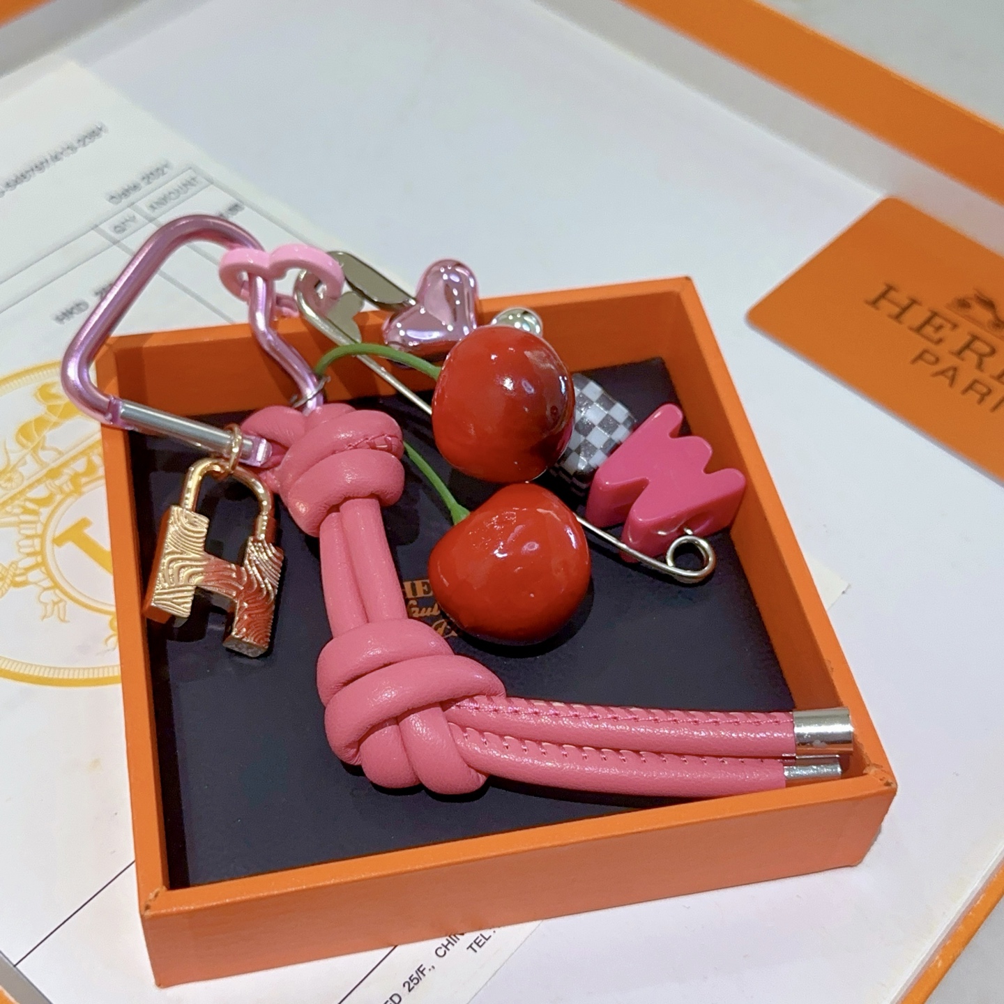 ピンクのレザーが印象的な、HERMESのキーホルダー6点セットです。