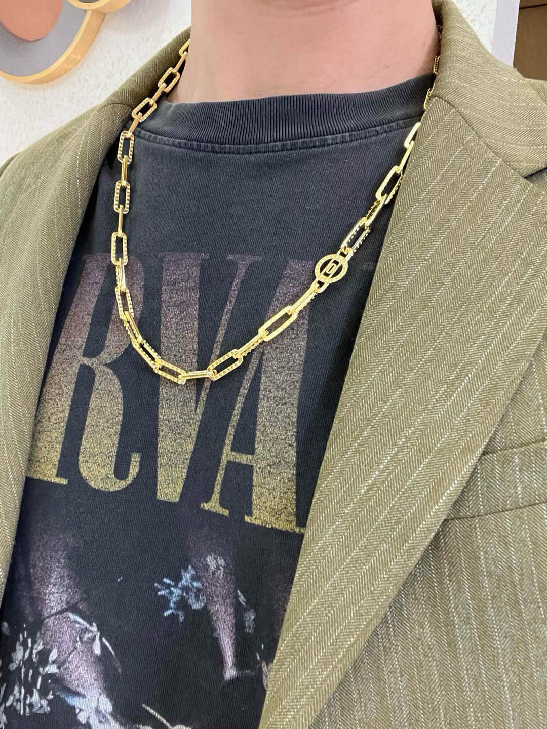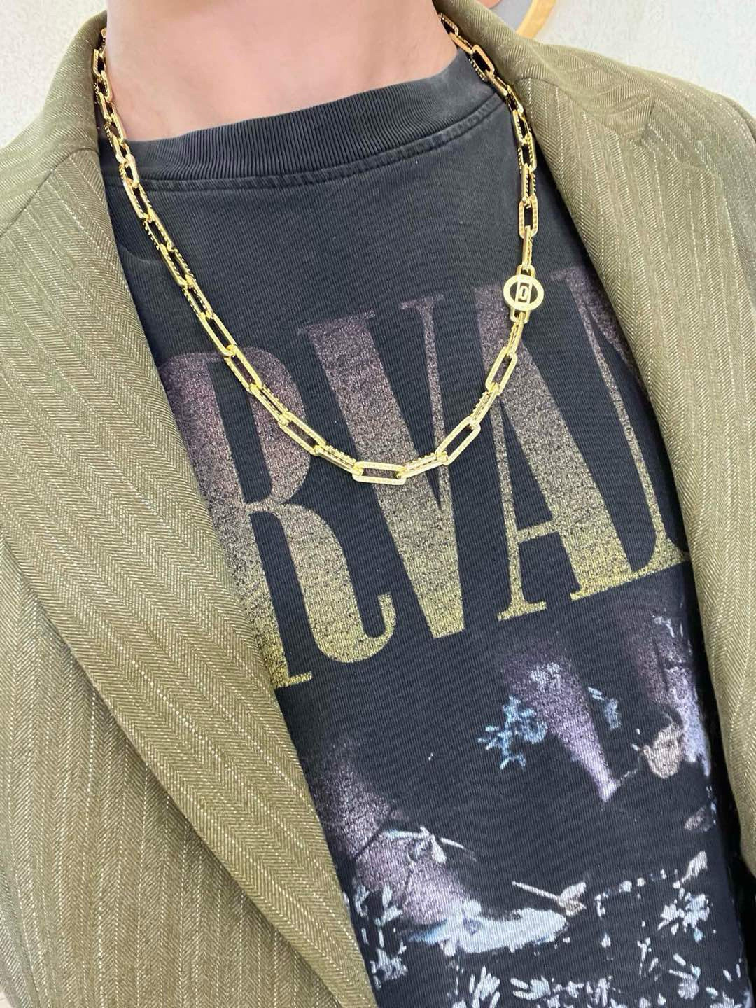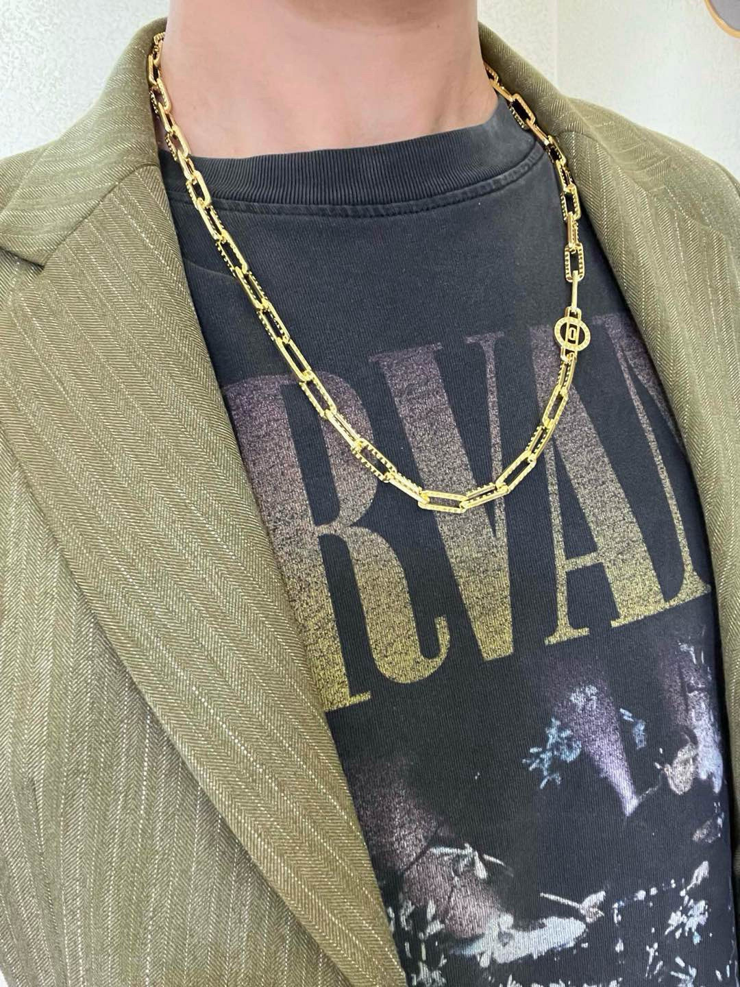 このネックレスは、洗練されたデザインと高品質な仕上がりが特徴です 金色のメッキが施されたチェーンは、光を受けてきらめき、上品な印象を与えます。リンク部分には独特のテクスチャが施されており、シンプルながらも存在感があります。男女問わず着用できるユニセックスデザインで、様なシーンに合わせやすいです。