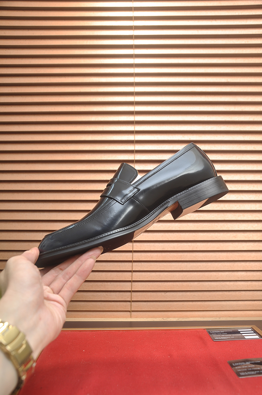 このローファーは、高級な光沢のある本革を使用しており、洗練された黒色がビジネスシーンやフォーマルな場面で存在感を放ちます。イタリア製の精密なディテールと、足に優しい履き心地が特徴です。スリップオンタイプなので、忙しい朝でもサッと履けて、スタイリッシュに過ごせます。