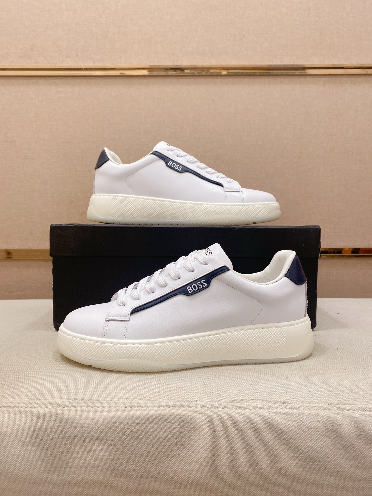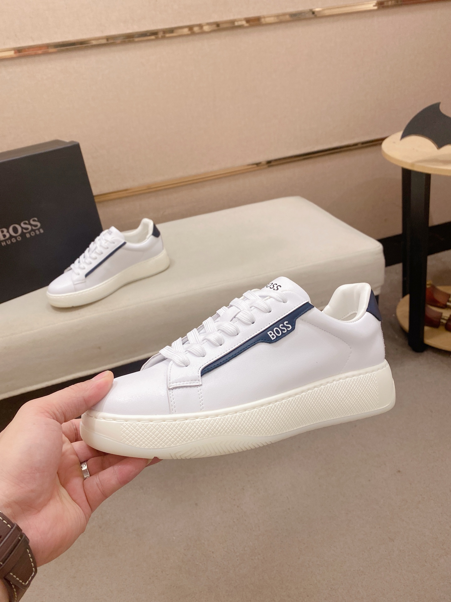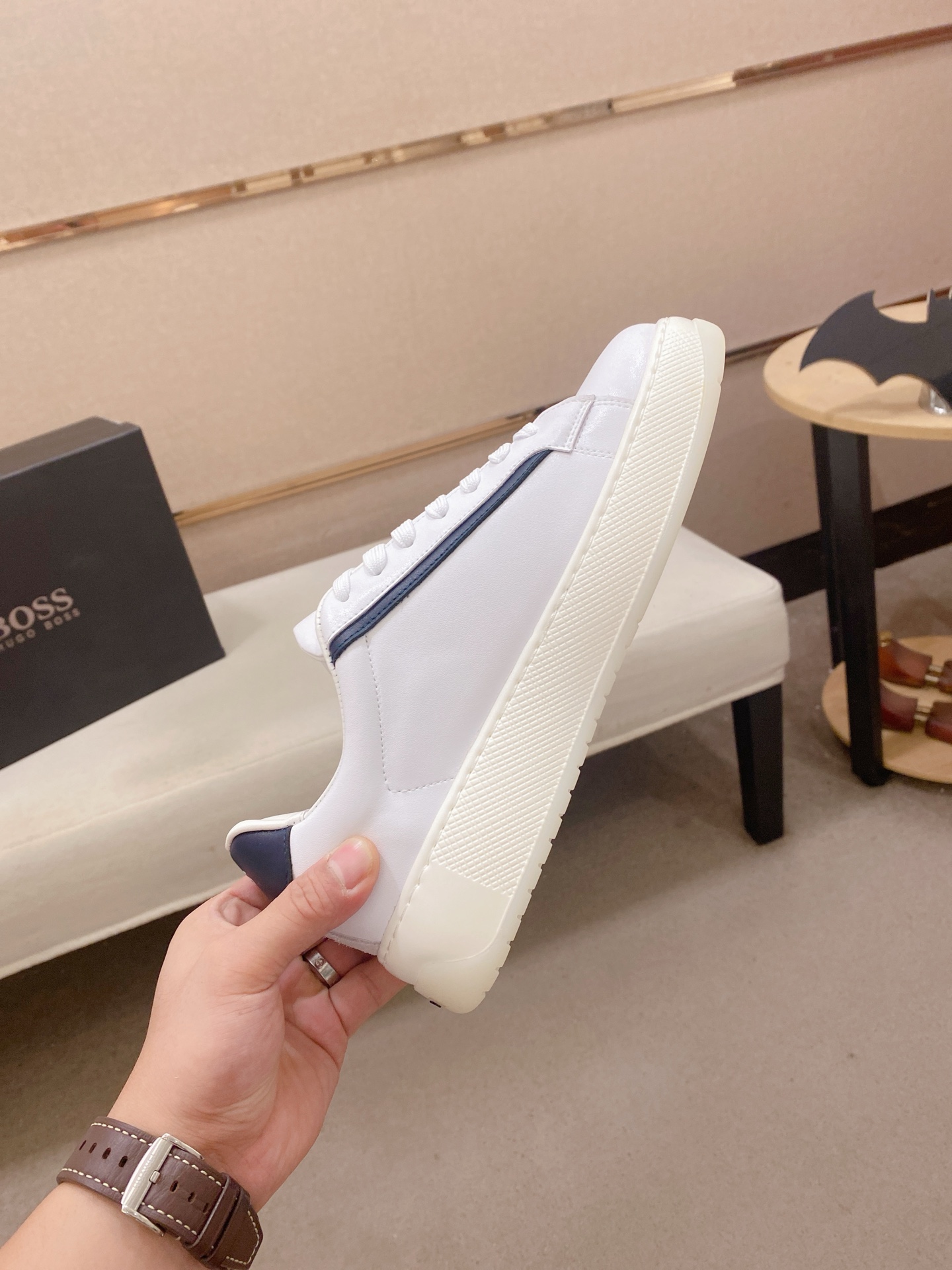 HUGO BOSS メンズ スニーカー 白色 ブルー ディテール 高品質 ローカットシューズ 64文字