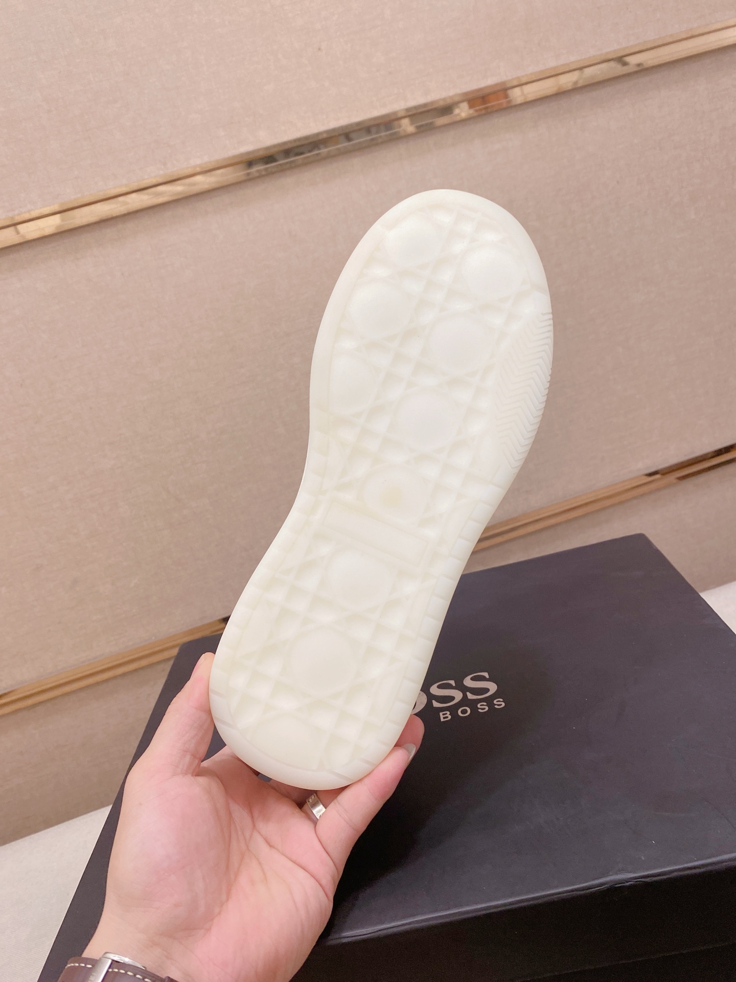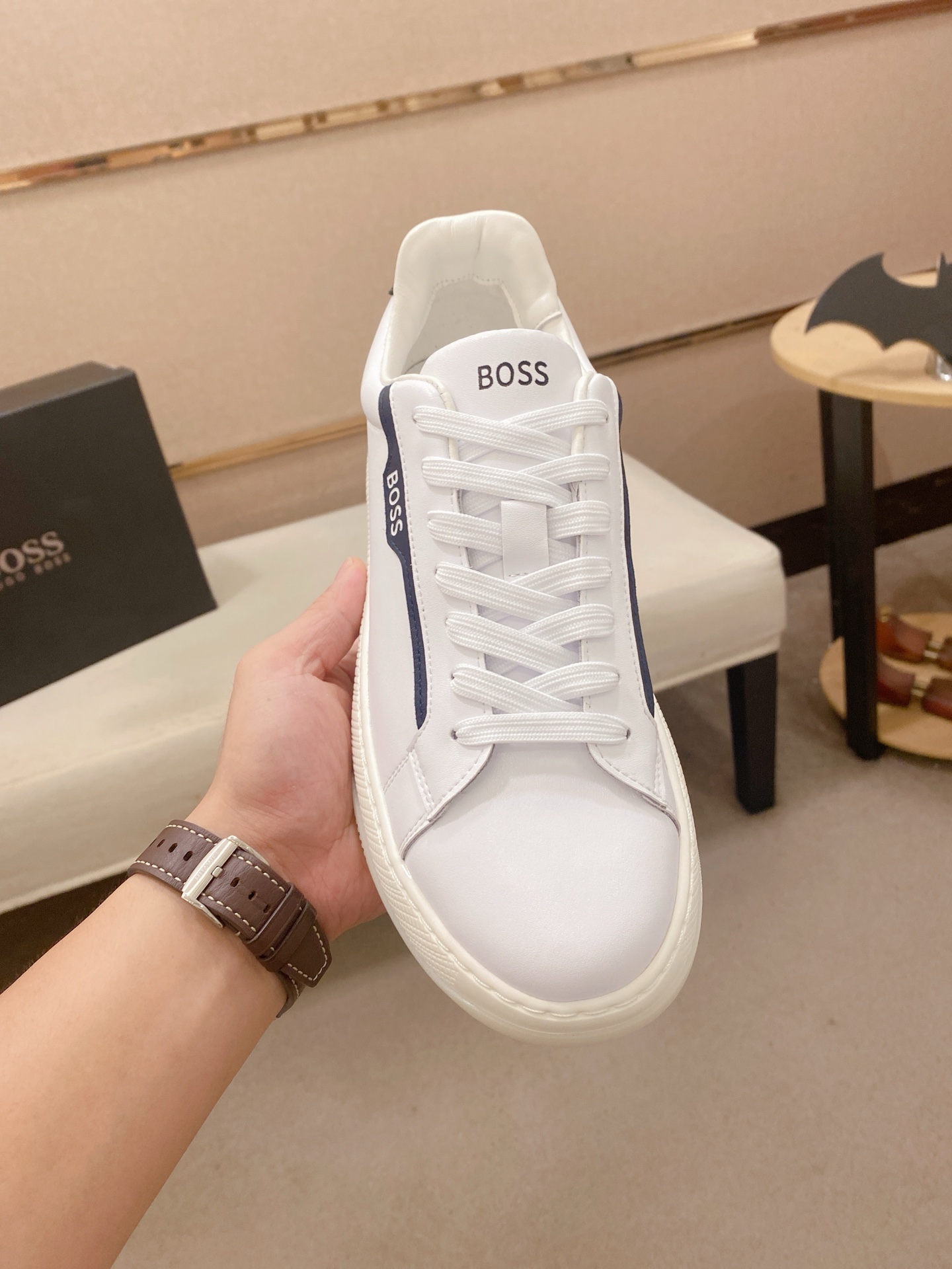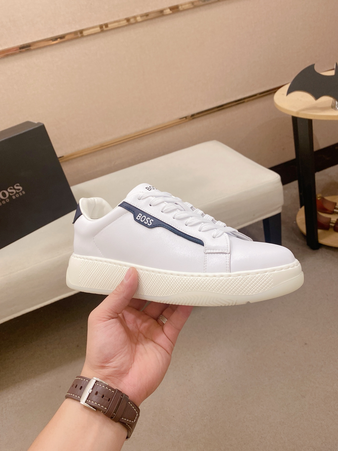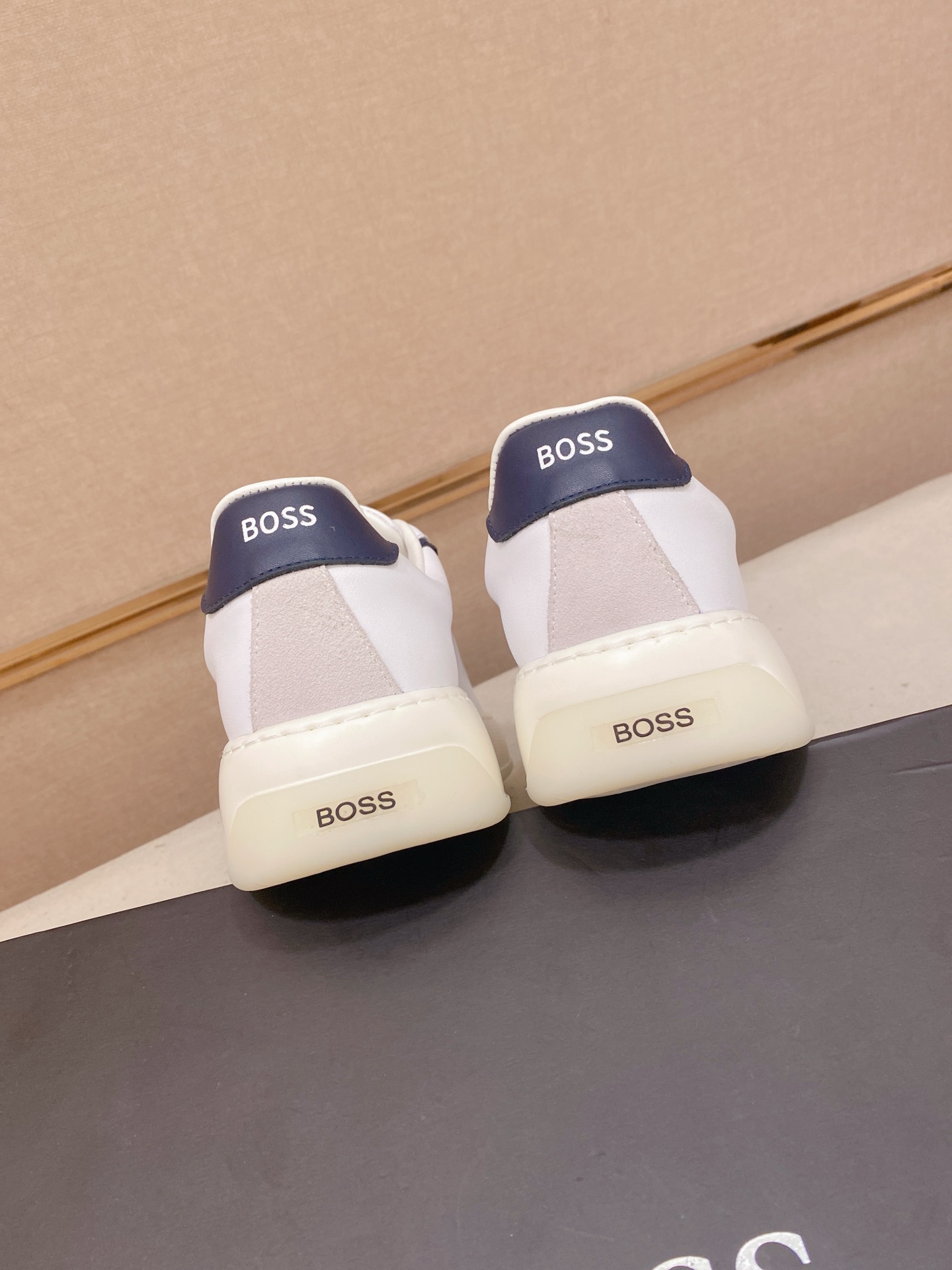 HUGO BOSS メンズ スニーカー 白色 ブルー ディテール 高品質 ローカットシューズ 64文字