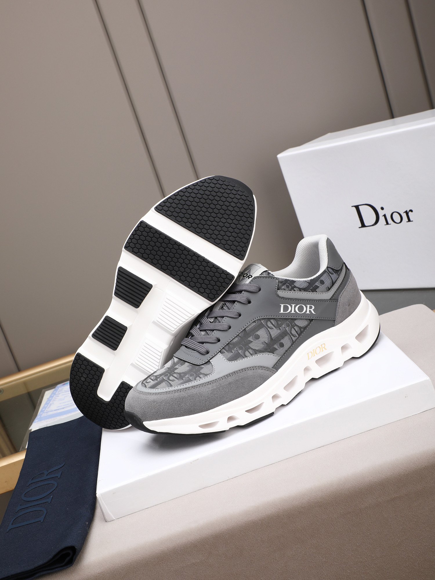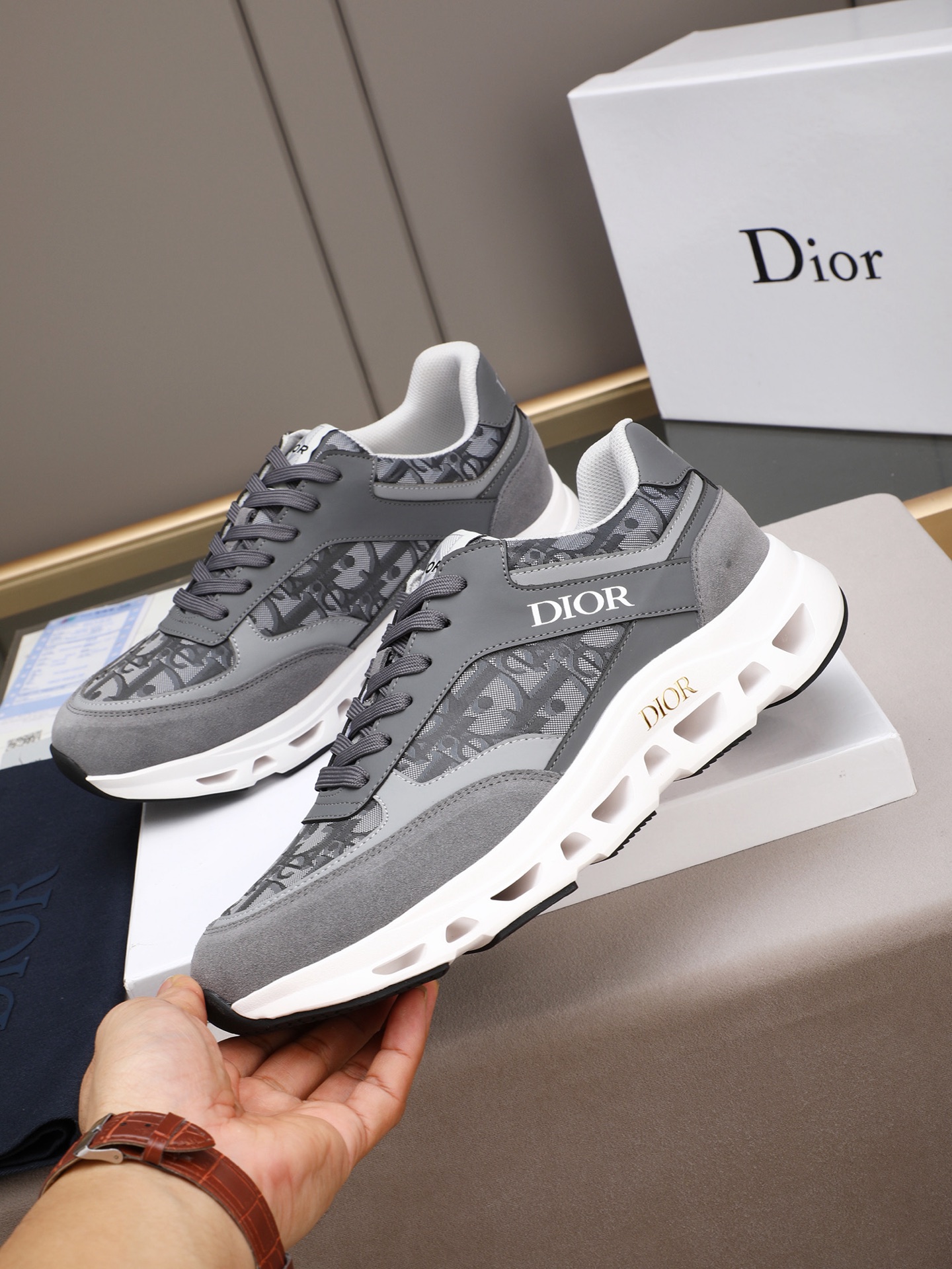 Dior メンズ スニーカー グレー レザー デザイン 3色入 🎁