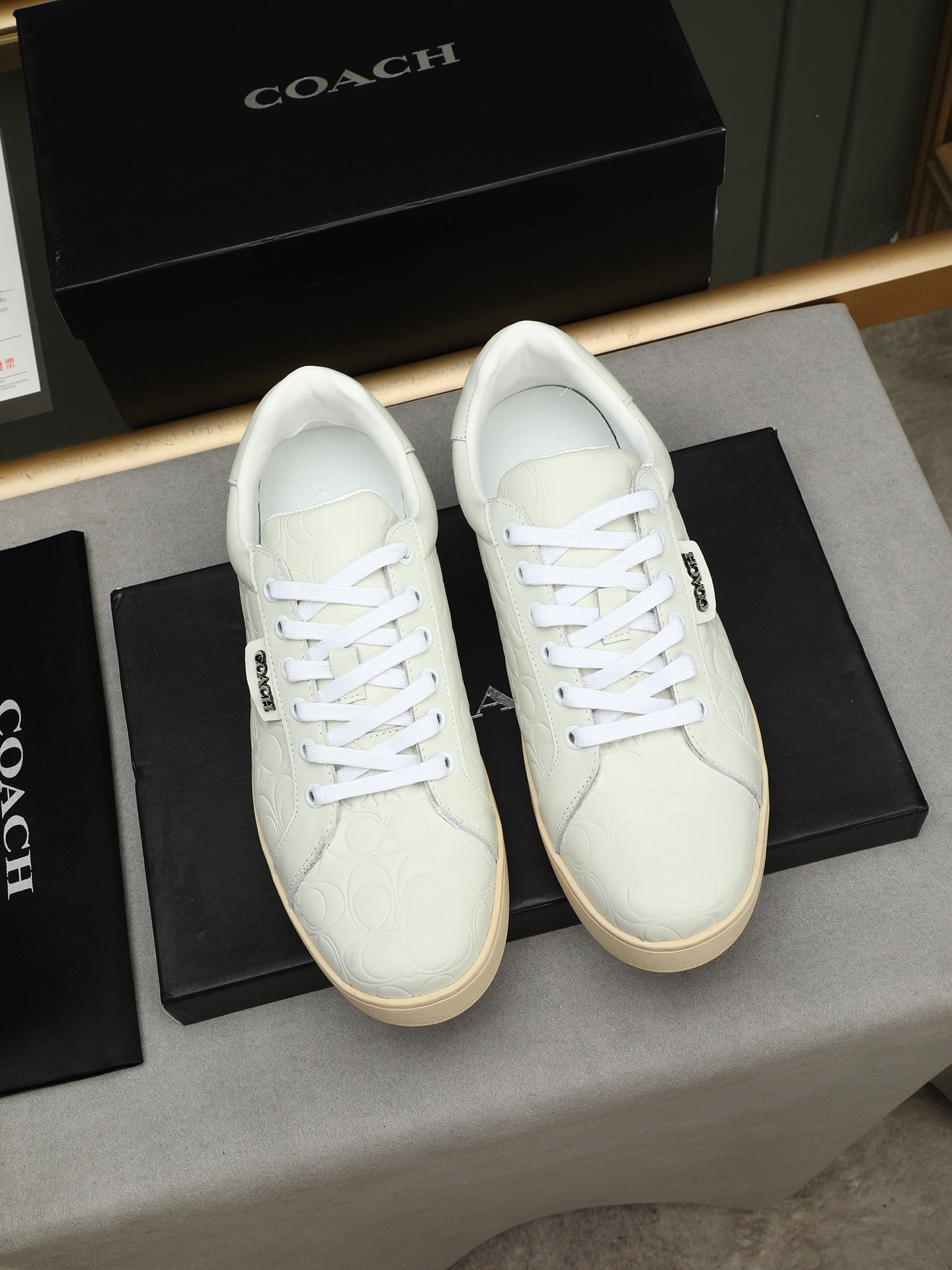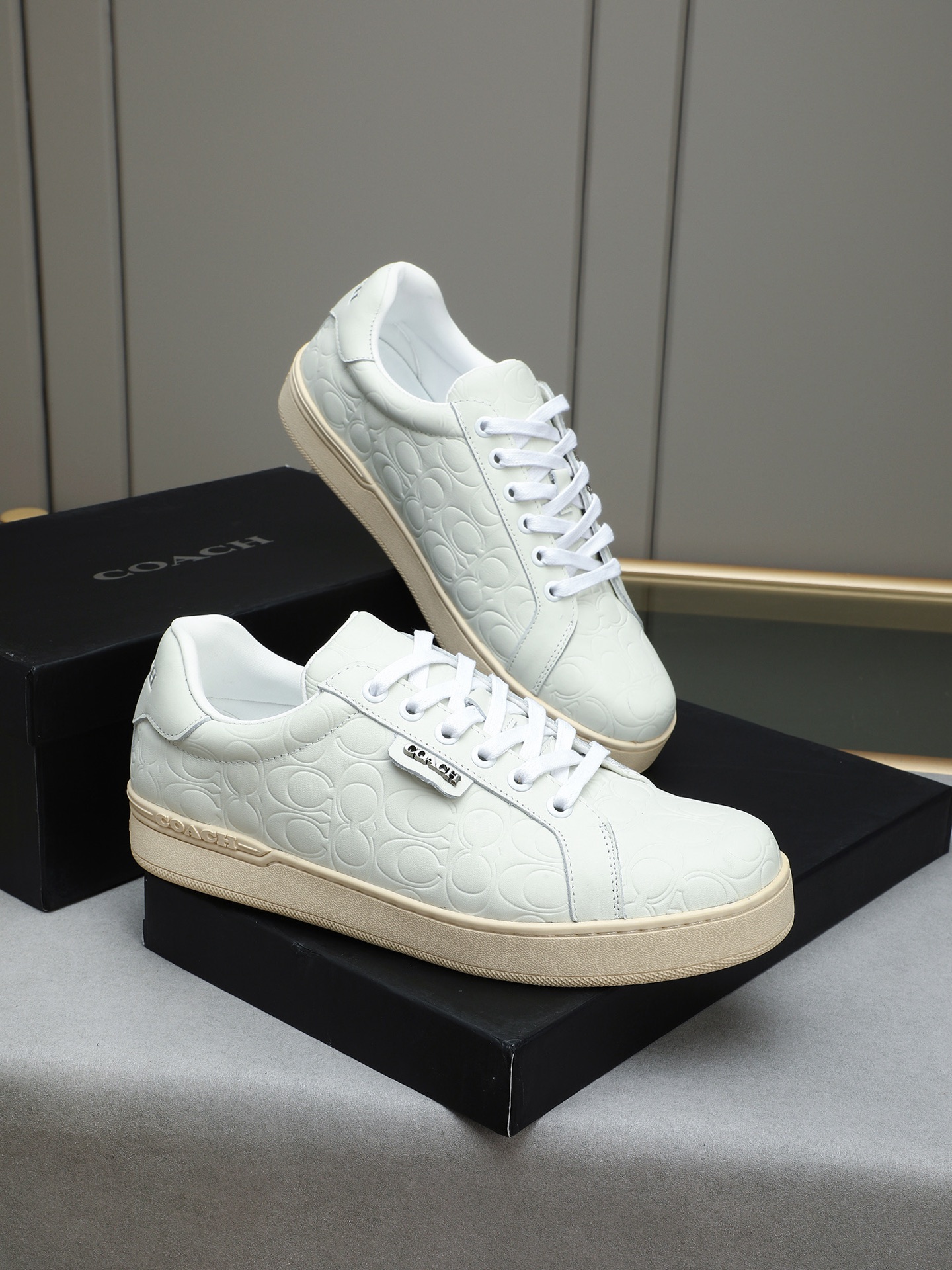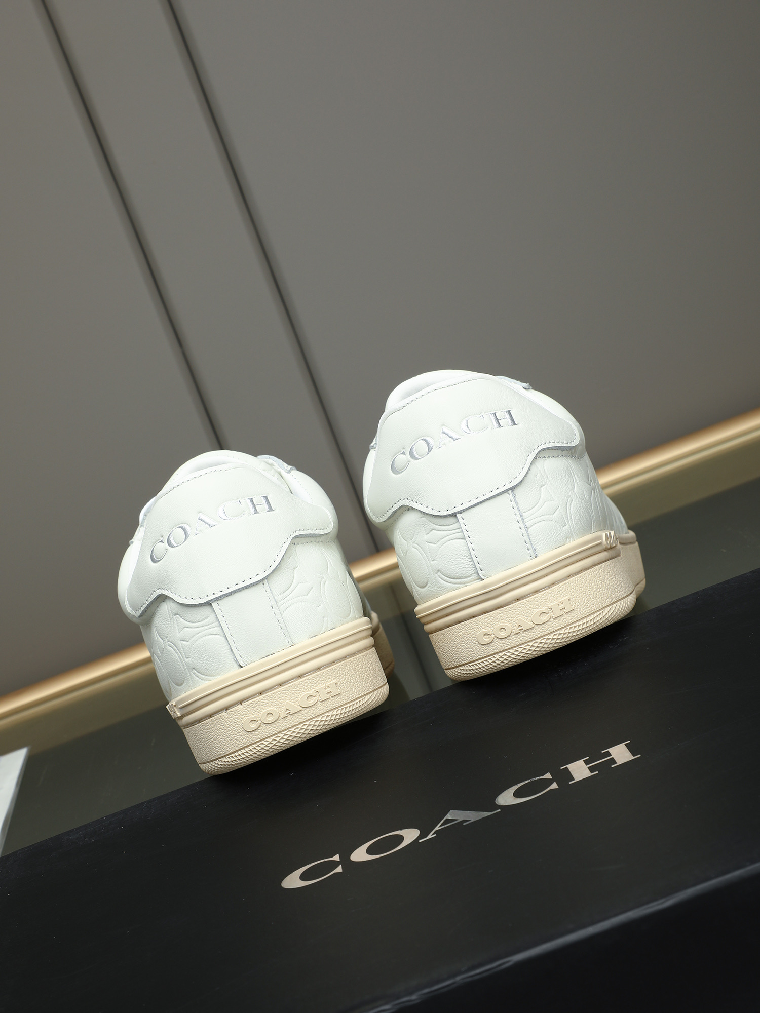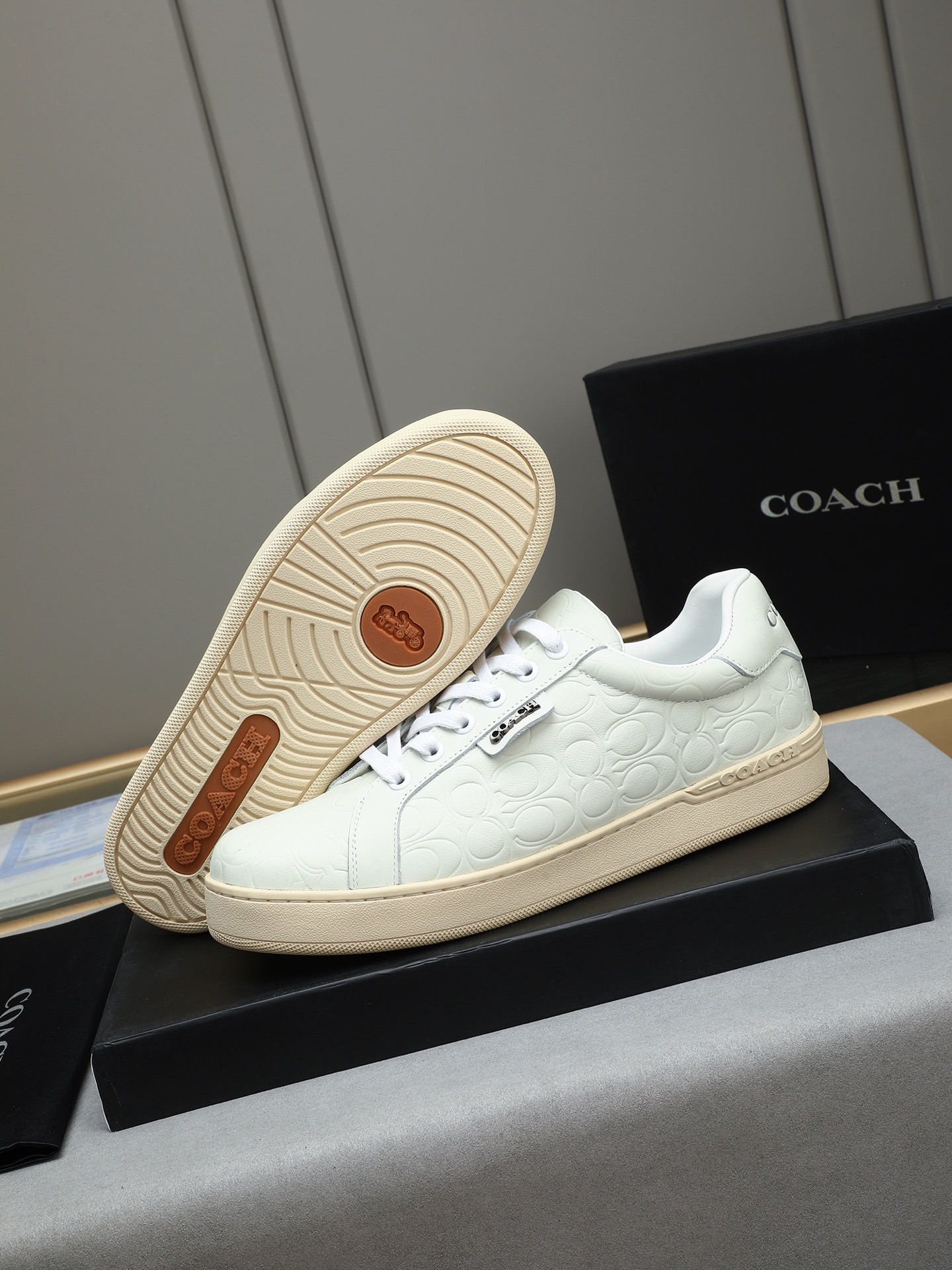 COACH メンズ スニーカー ホワイト 本革 ロゴプレス フラットシューズ 2色展開 🥾