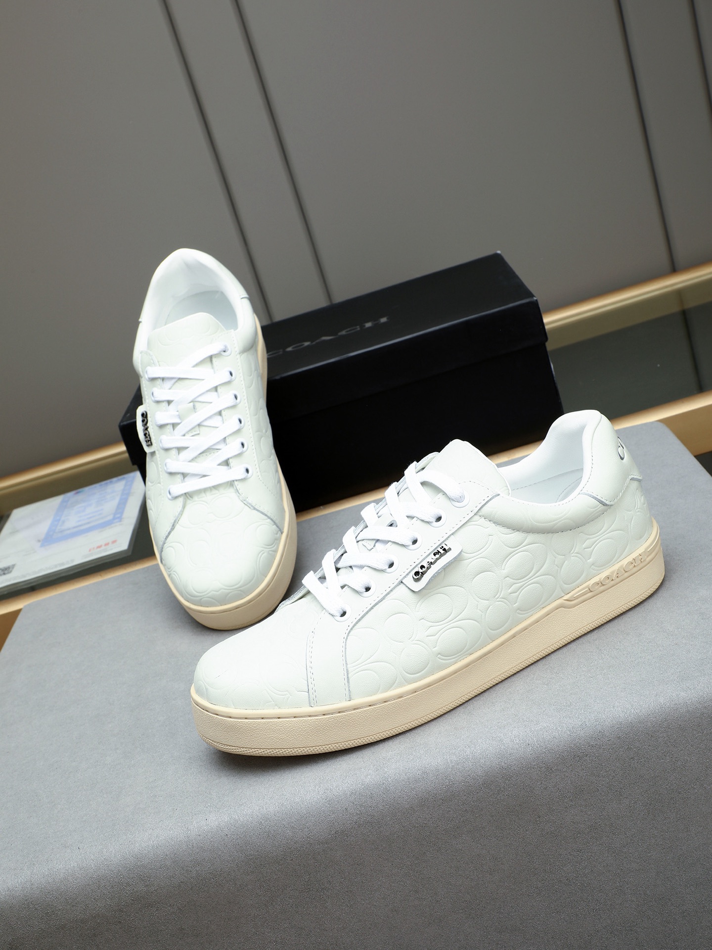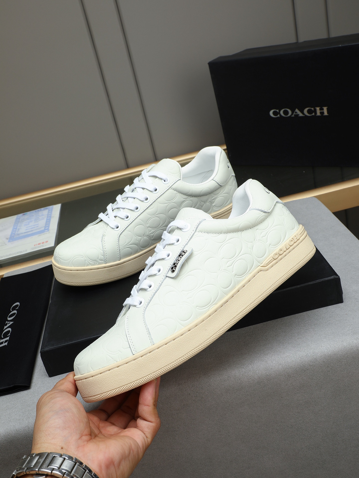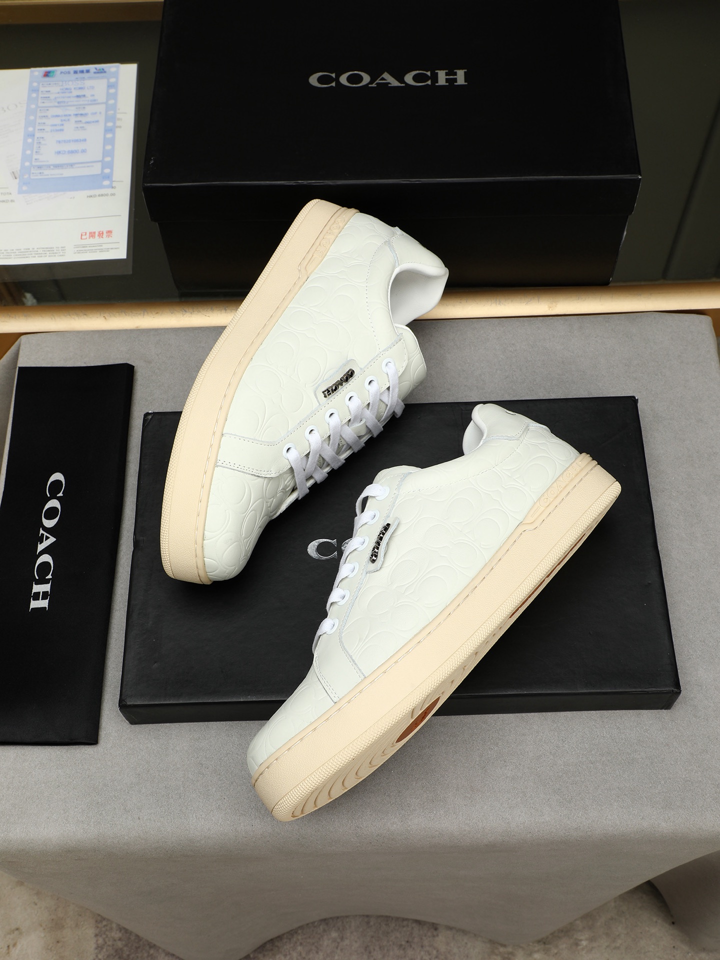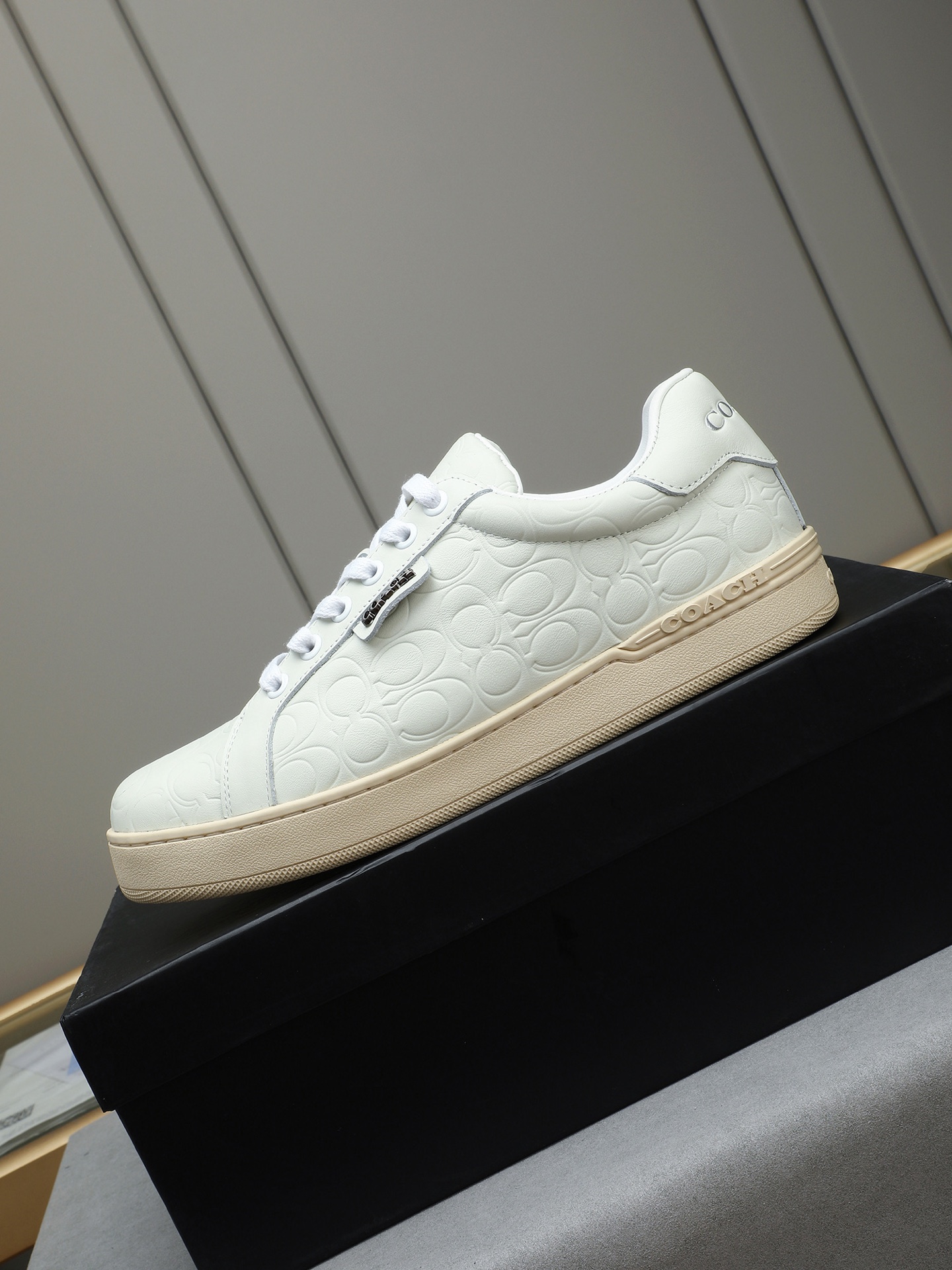 COACH メンズ スニーカー ホワイト 本革 ロゴプレス フラットシューズ 2色展開 🥾