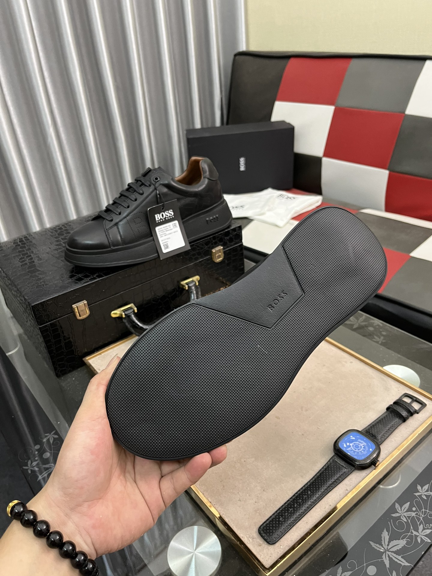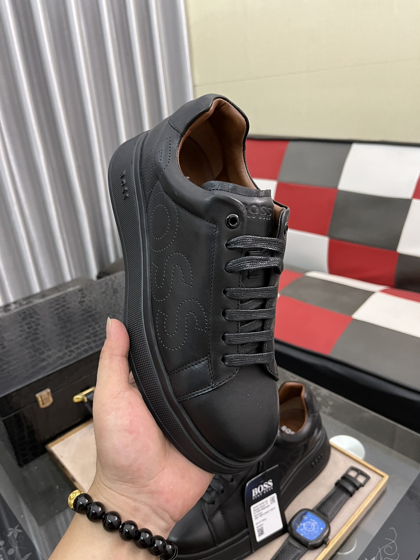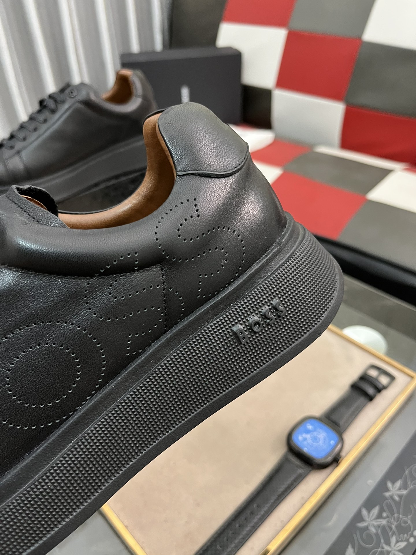 HUGO BOSS 男性用 レザースニーカー ブラック 1色入 🖤 高級感のあるスタイリッシュなデザイン ファッション性と快適さを兼ね備えた一足