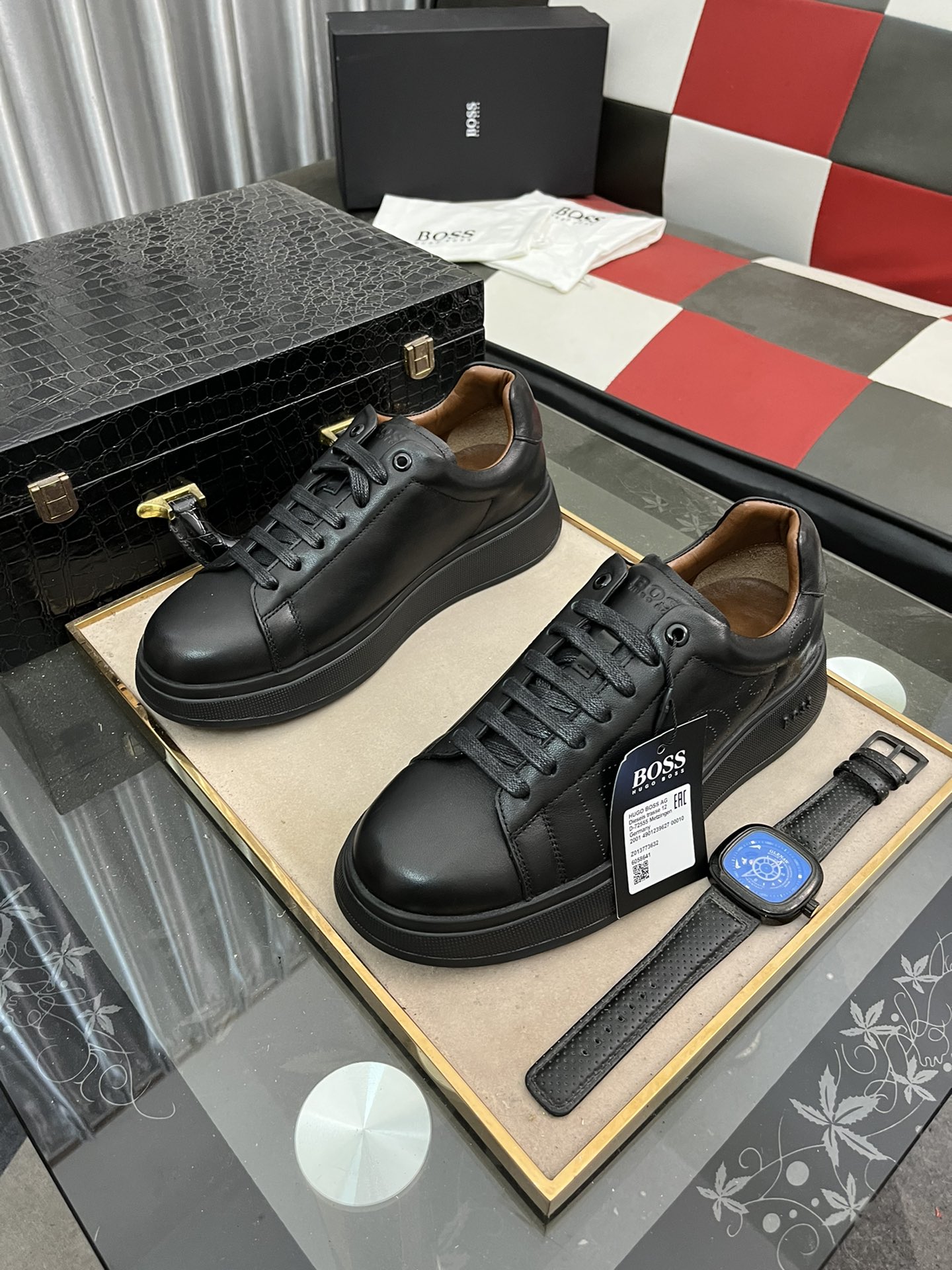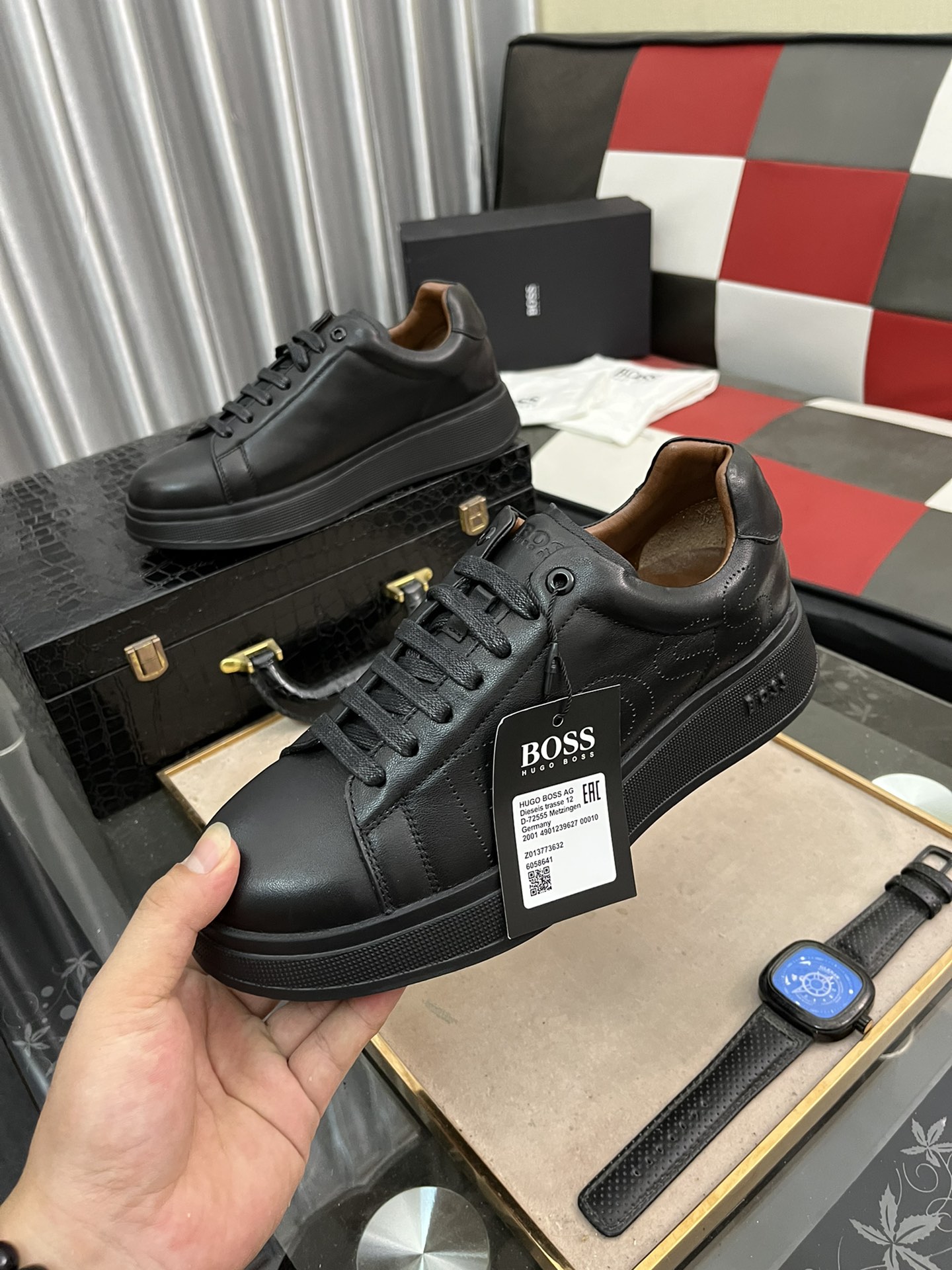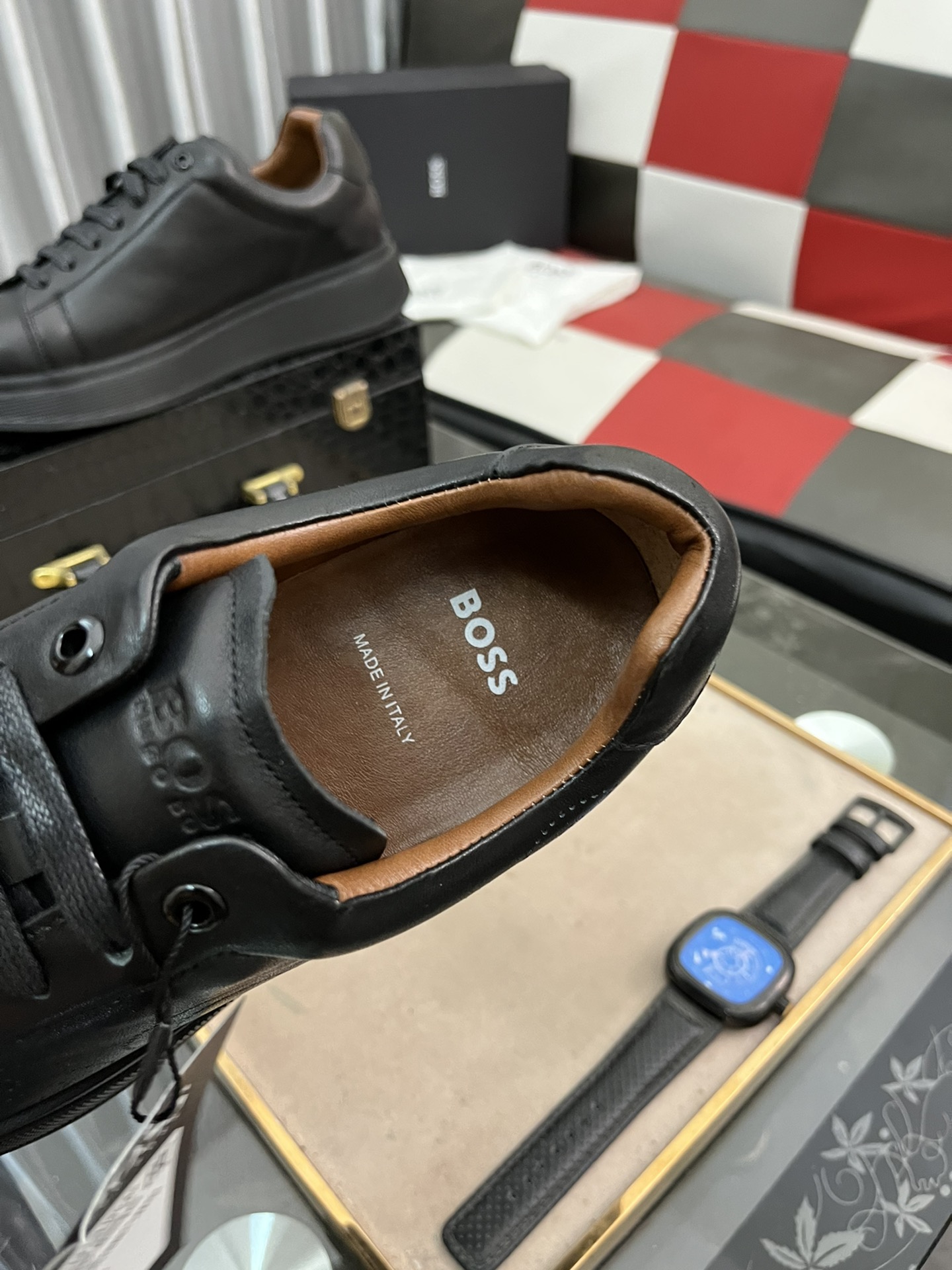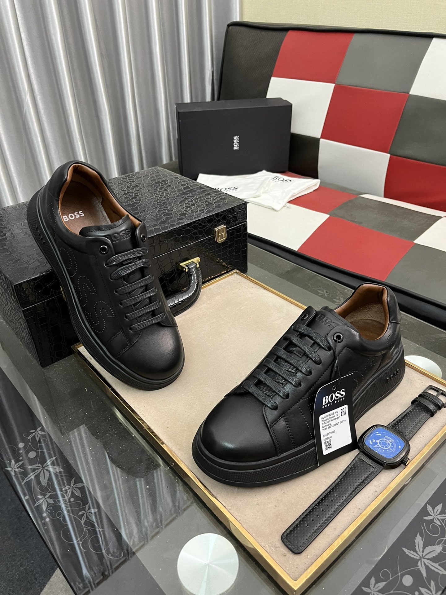 HUGO BOSS 男性用 レザースニーカー ブラック 1色入 🖤 高級感のあるスタイリッシュなデザイン ファッション性と快適さを兼ね備えた一足