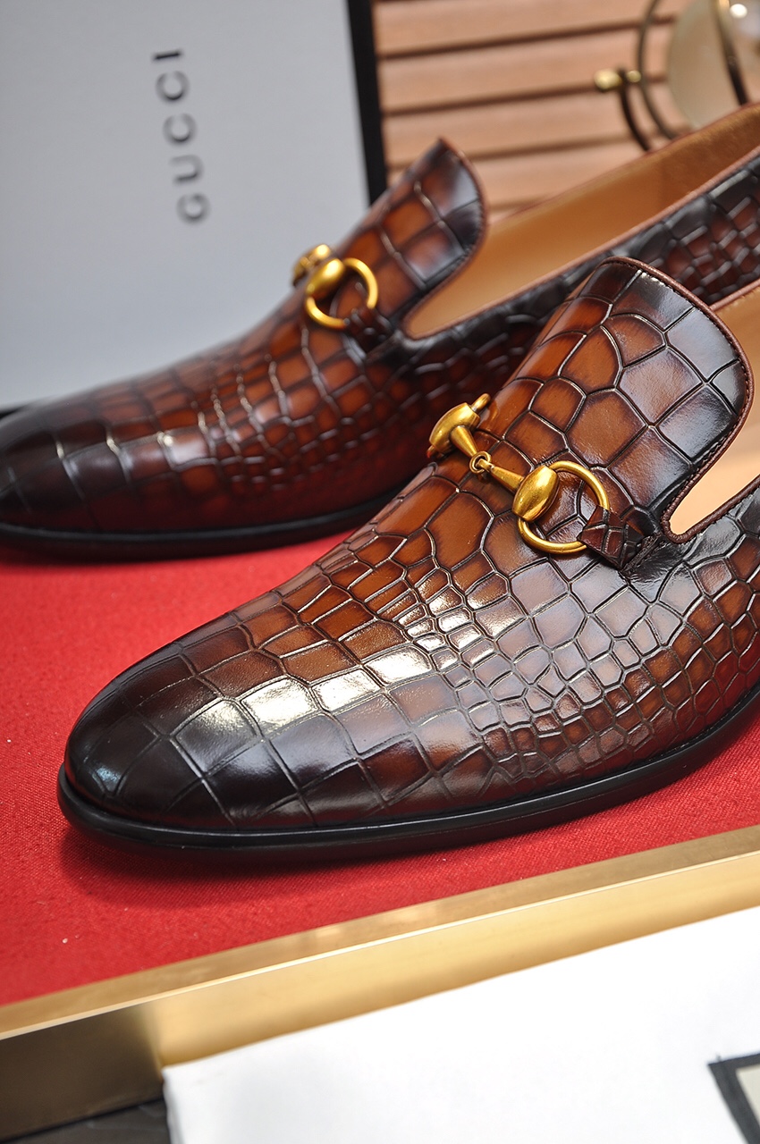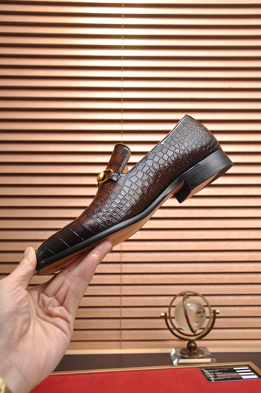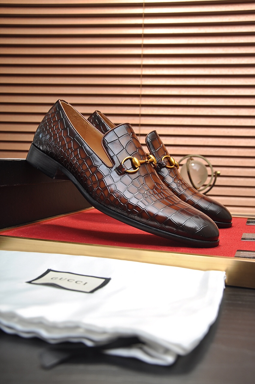 GUCCI メンズ ローファー 本革 本革 クロコダイル柄 ブラウン 金具付き 靴 🐊