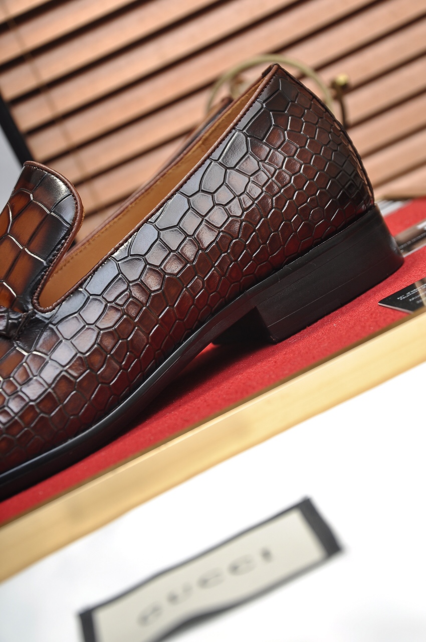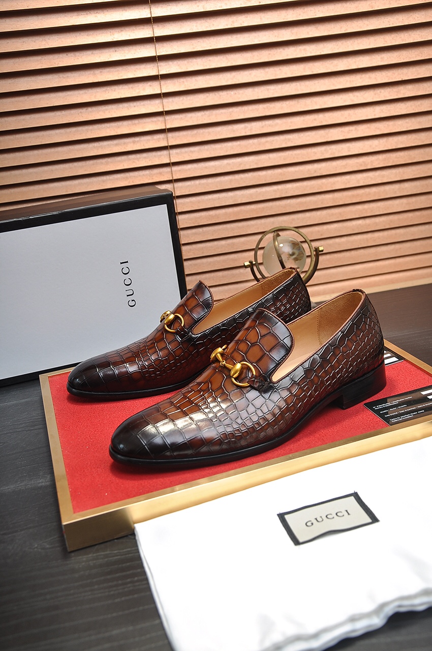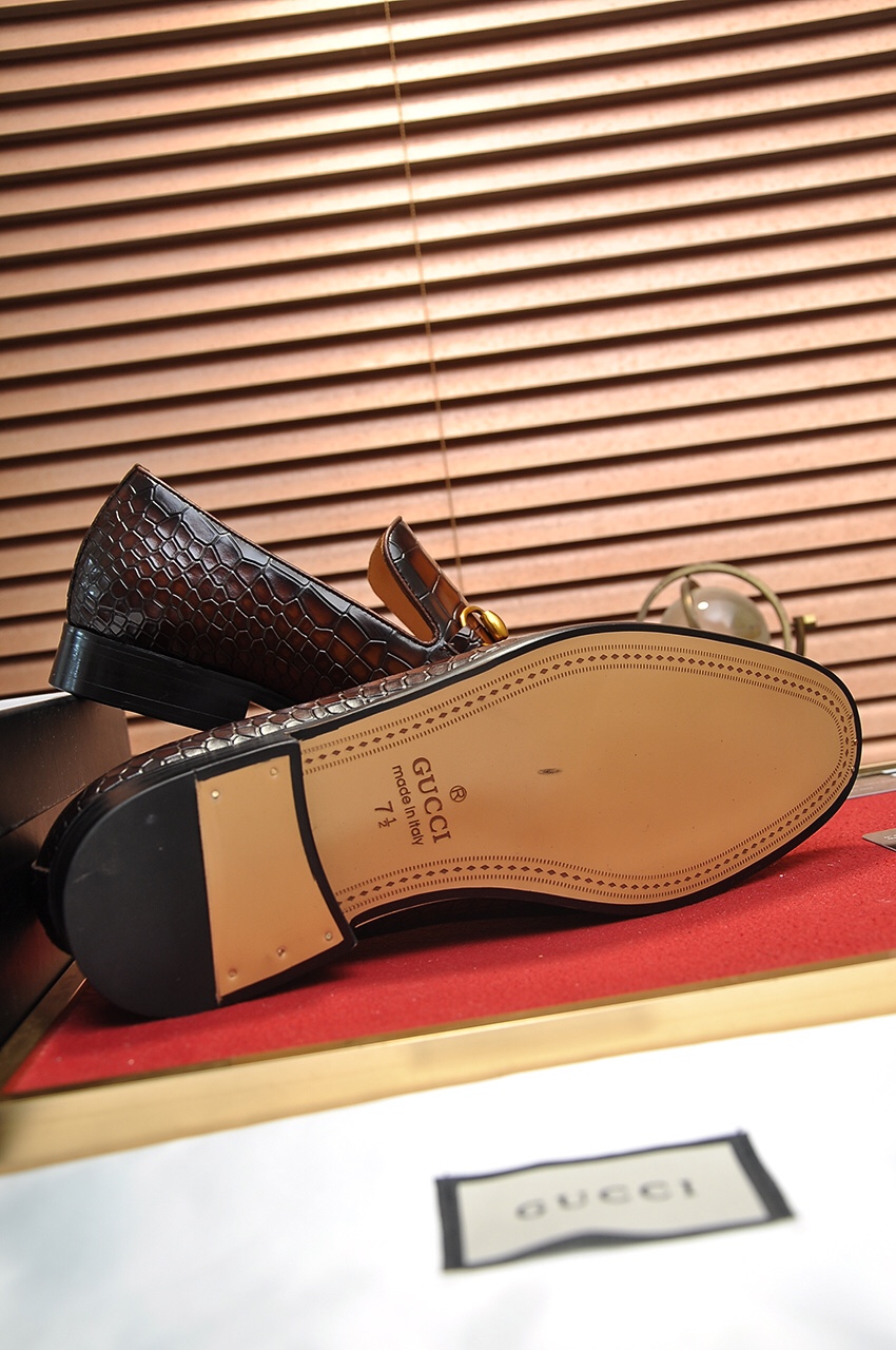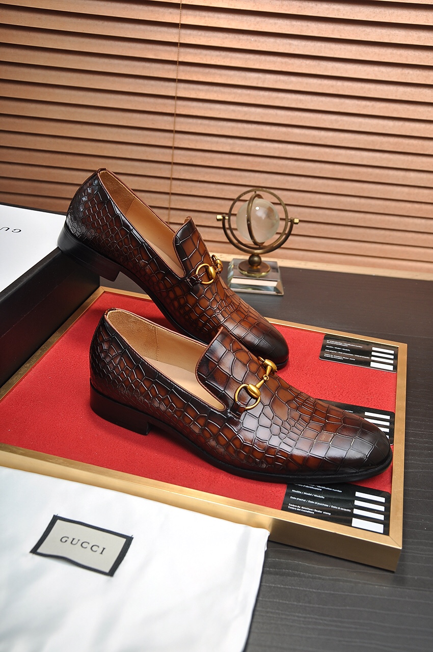 GUCCI メンズ ローファー 本革 本革 クロコダイル柄 ブラウン 金具付き 靴 🐊