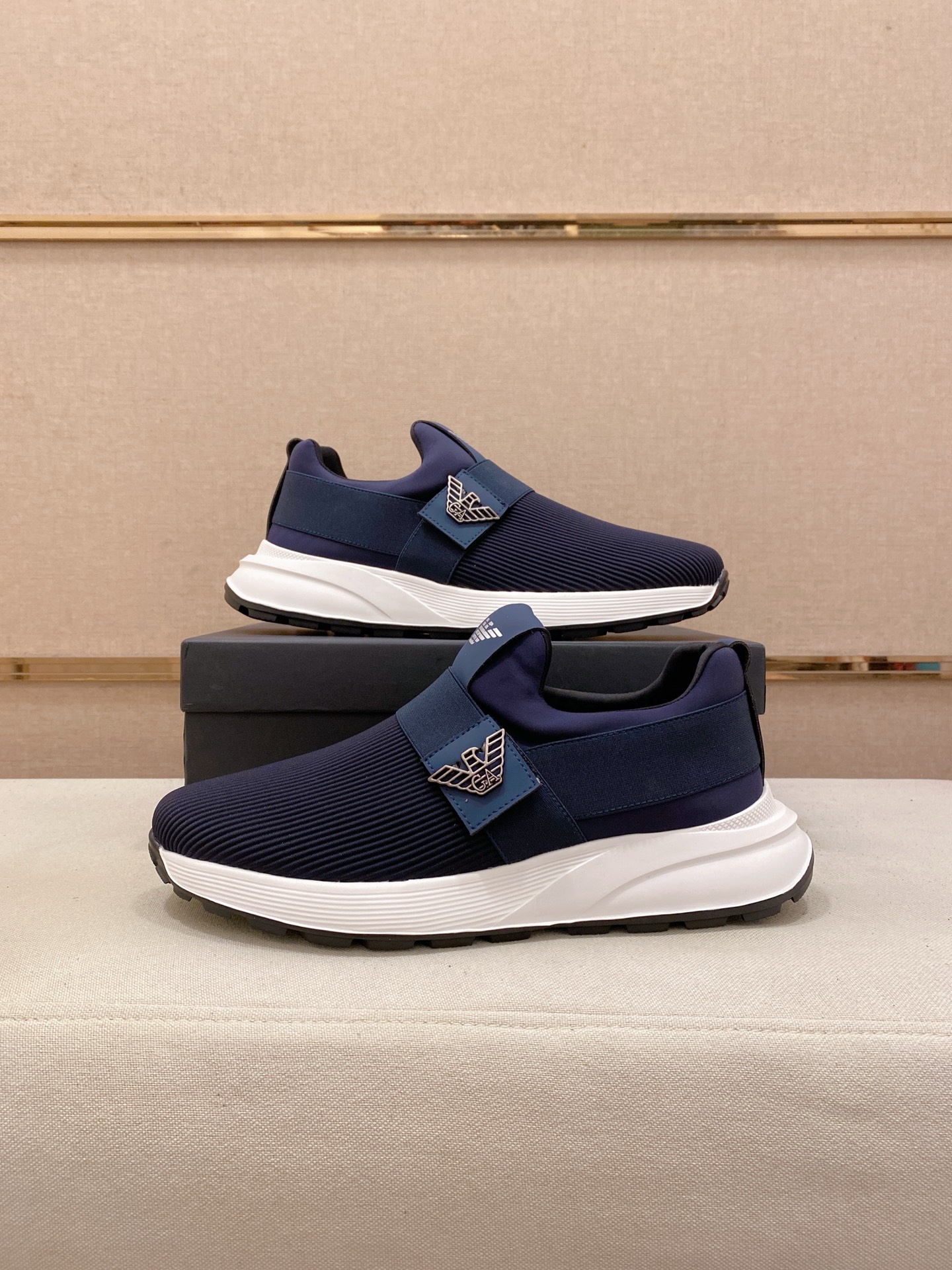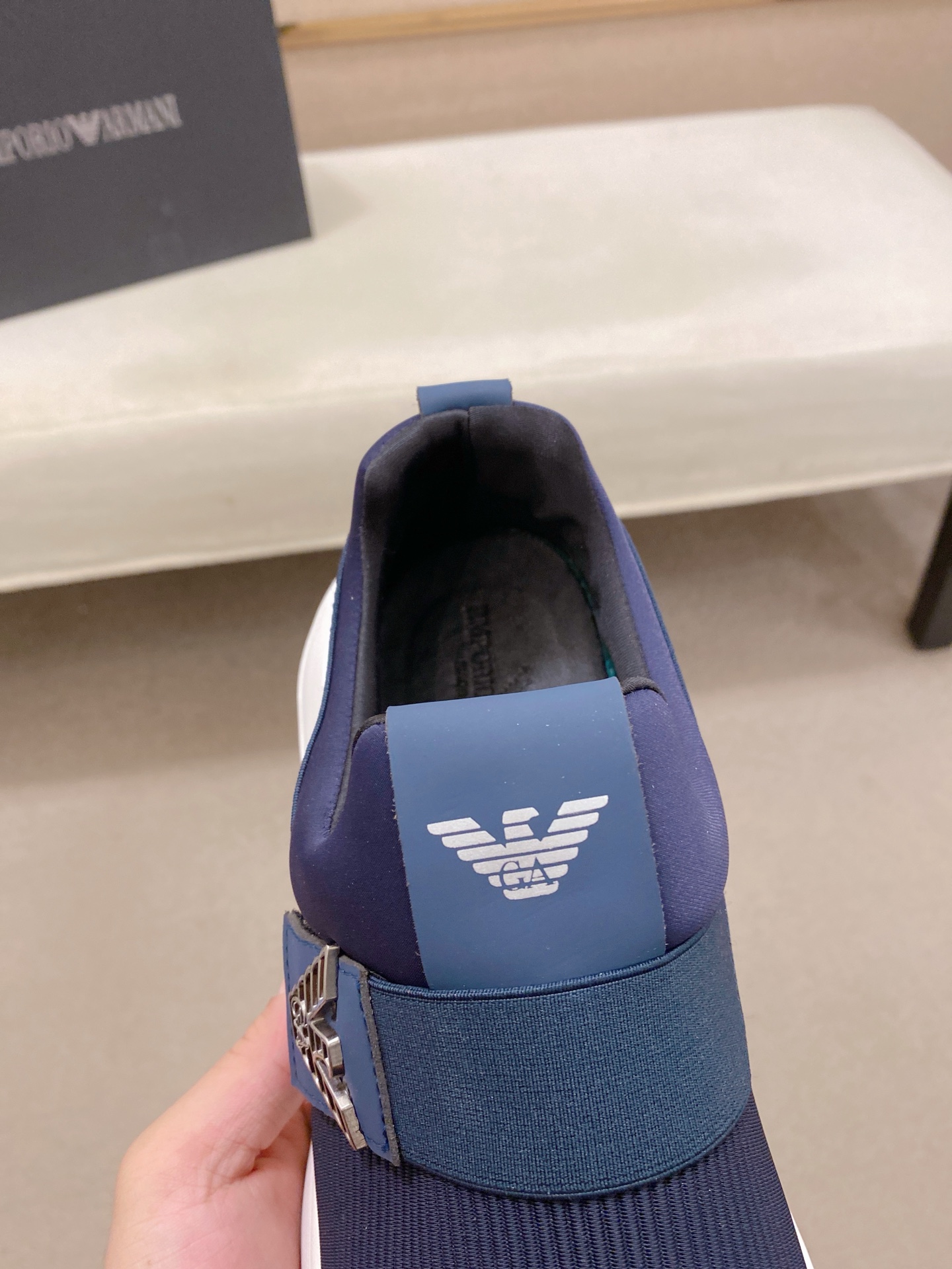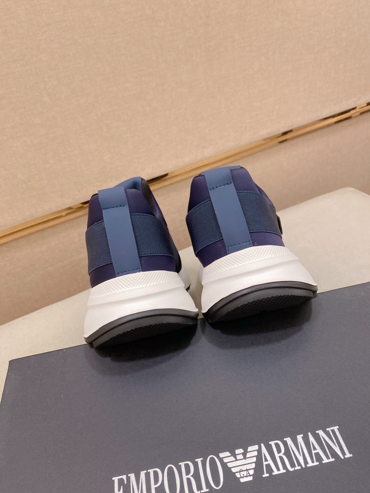 エミリオ・アルマニ 男性用スニーカー ブルーカラー 伸縮性のあるサイドベルト ファッション性抜群 🥾