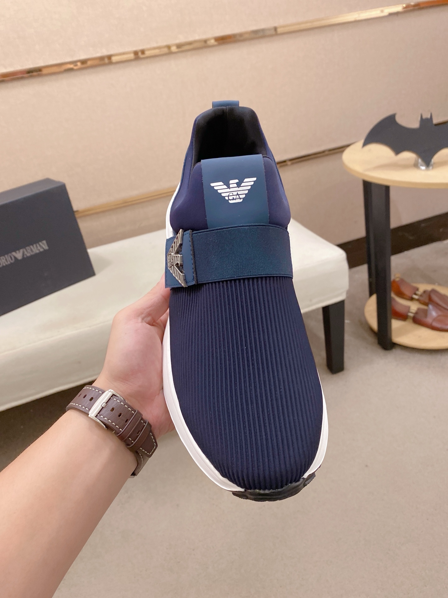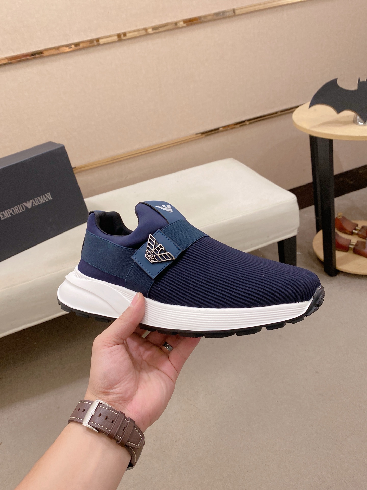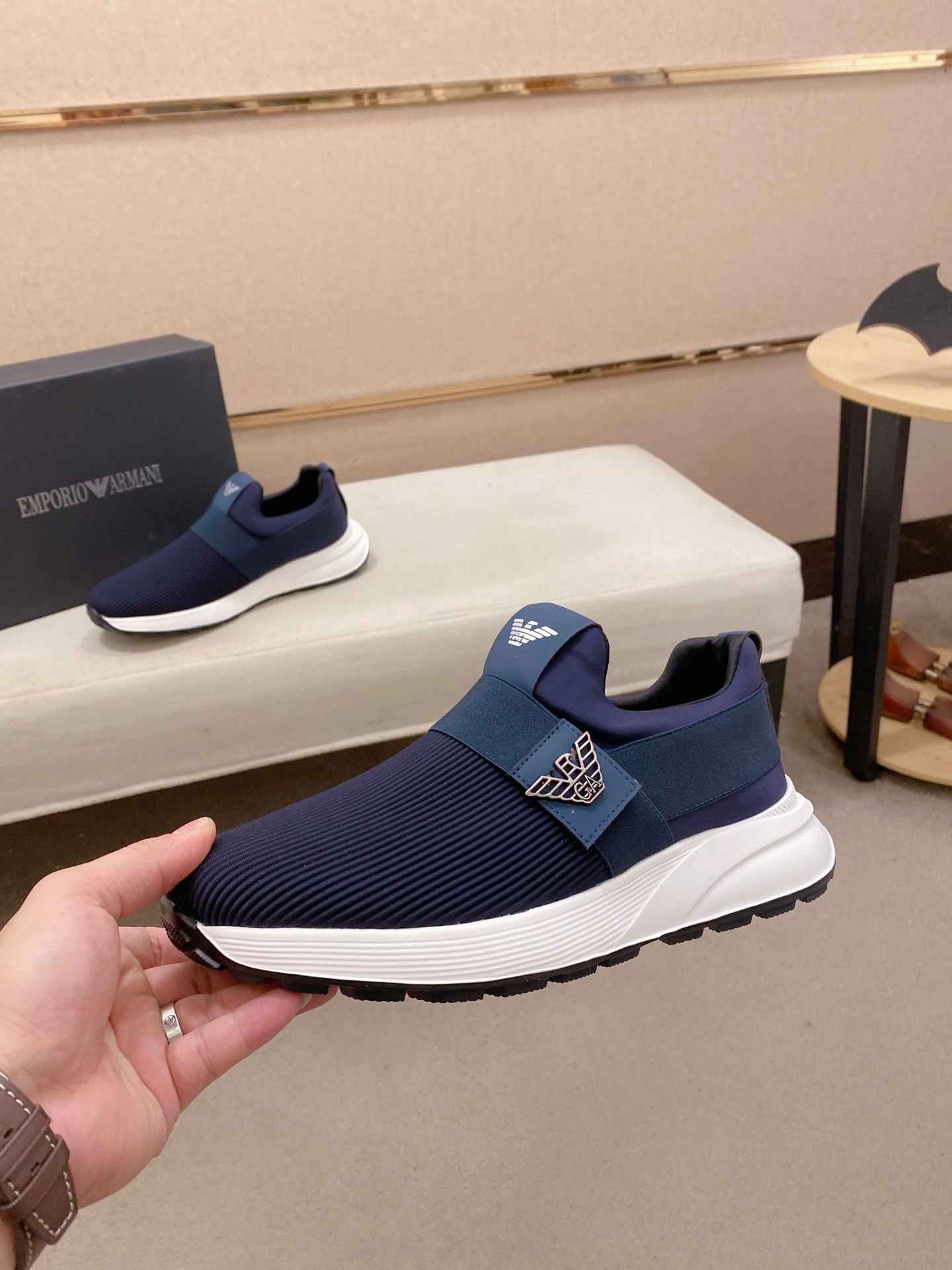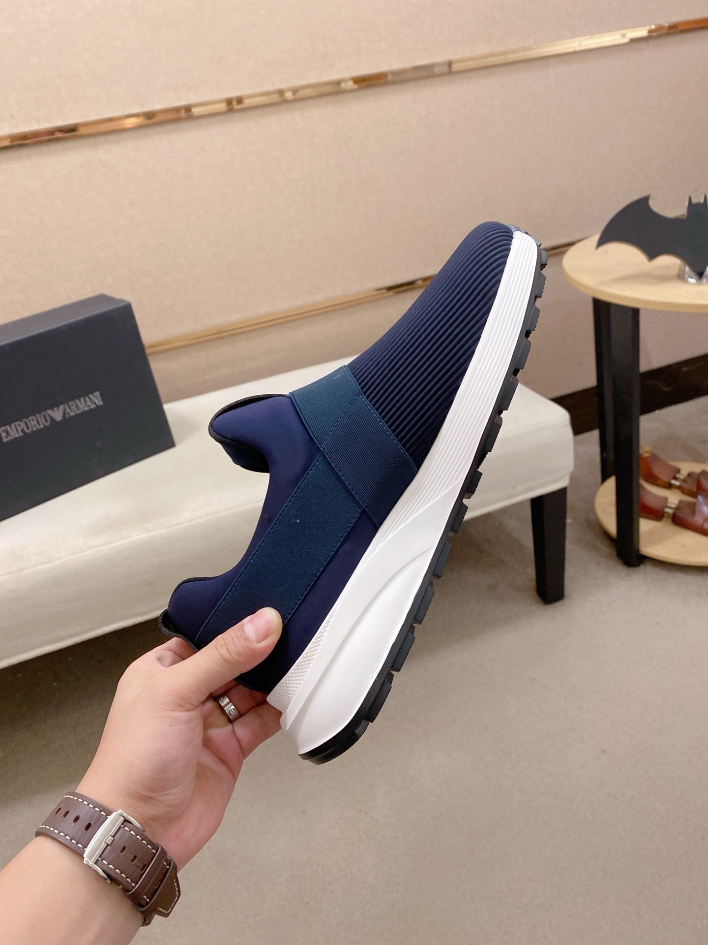エミリオ・アルマニ 男性用スニーカー ブルーカラー 伸縮性のあるサイドベルト ファッション性抜群 🥾