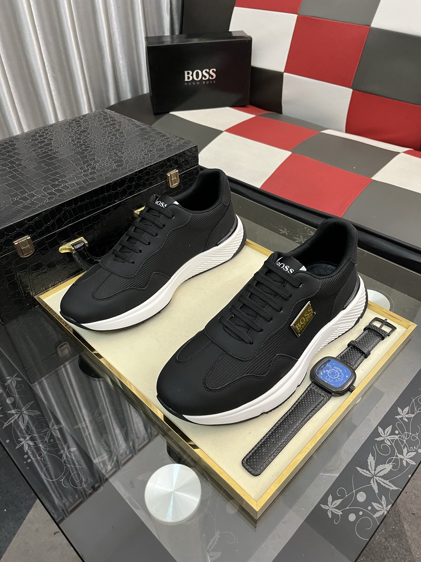 HUGO BOSS 限定モデル 2024 新作 メンズ スニーカー ブラック 白ソール 4色対応 💯