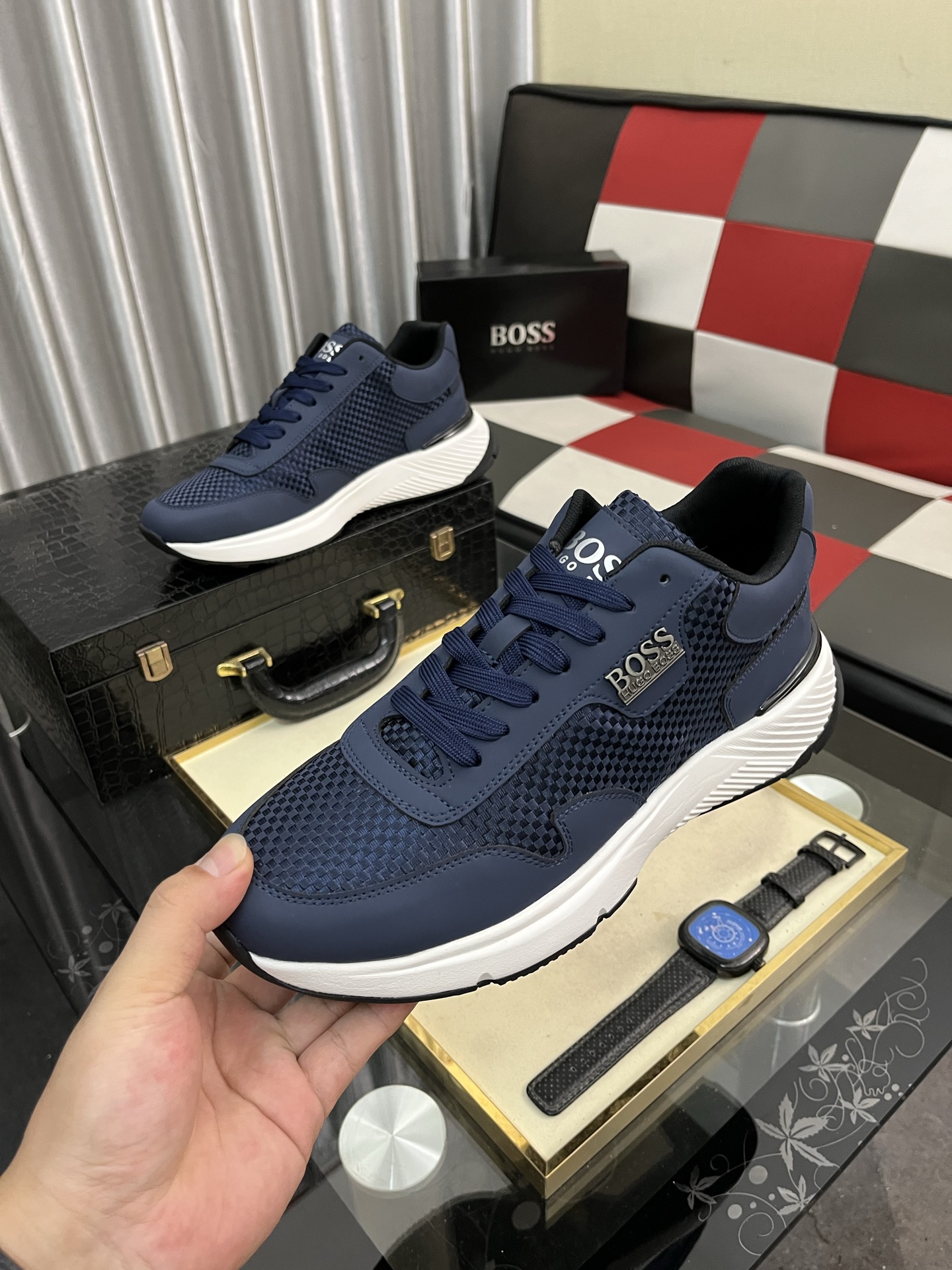 HUGO BOSS 男士运动鞋 青蓝色 36-48码 舒适透气 网面设计 🏃♂️