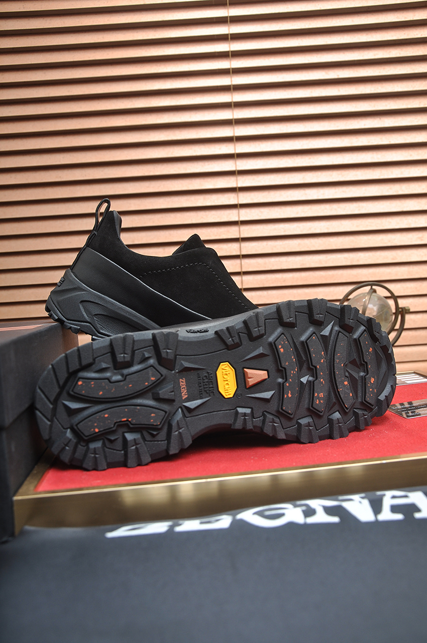 ZEGNAのメンズ ローカットスニーカーは、ブラックのスエードとレザーのコンビネーションが洗練された印象を与えます。シューズのアッパーは高級スエードで、足に優しく、快適な履き心地を提供します。また、ゴム製のソールは耐久性に優れ、滑りにくい設計になっており、日常のあらゆるシーンで安心して履くことができます。