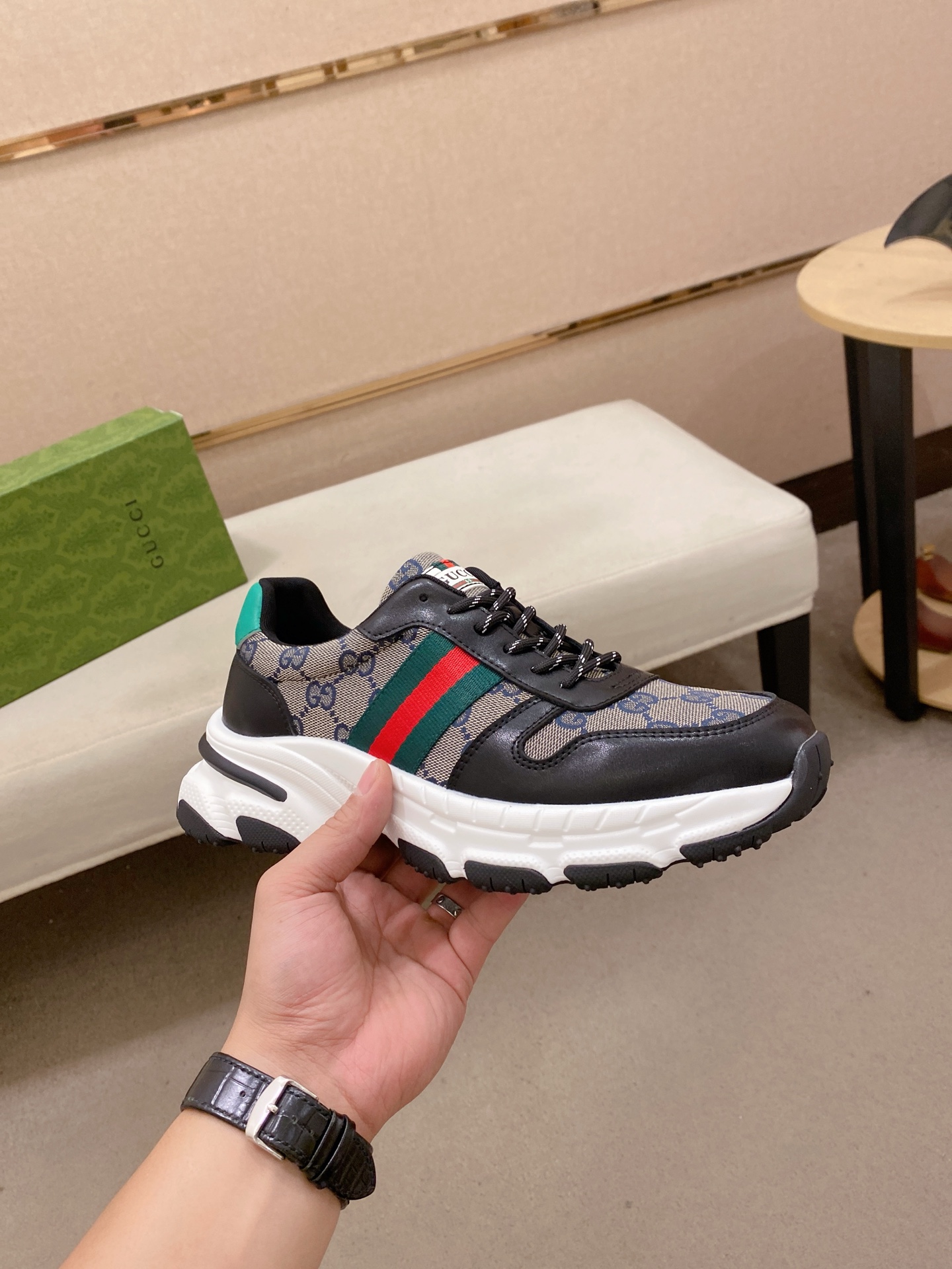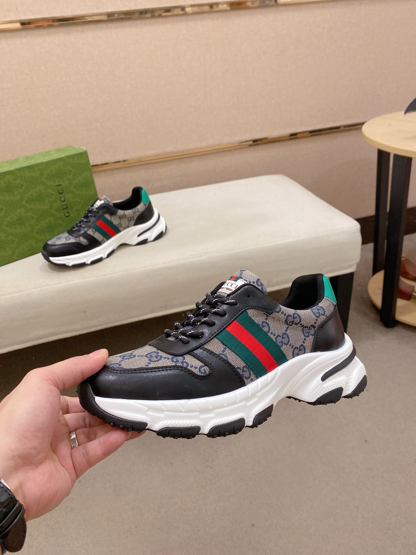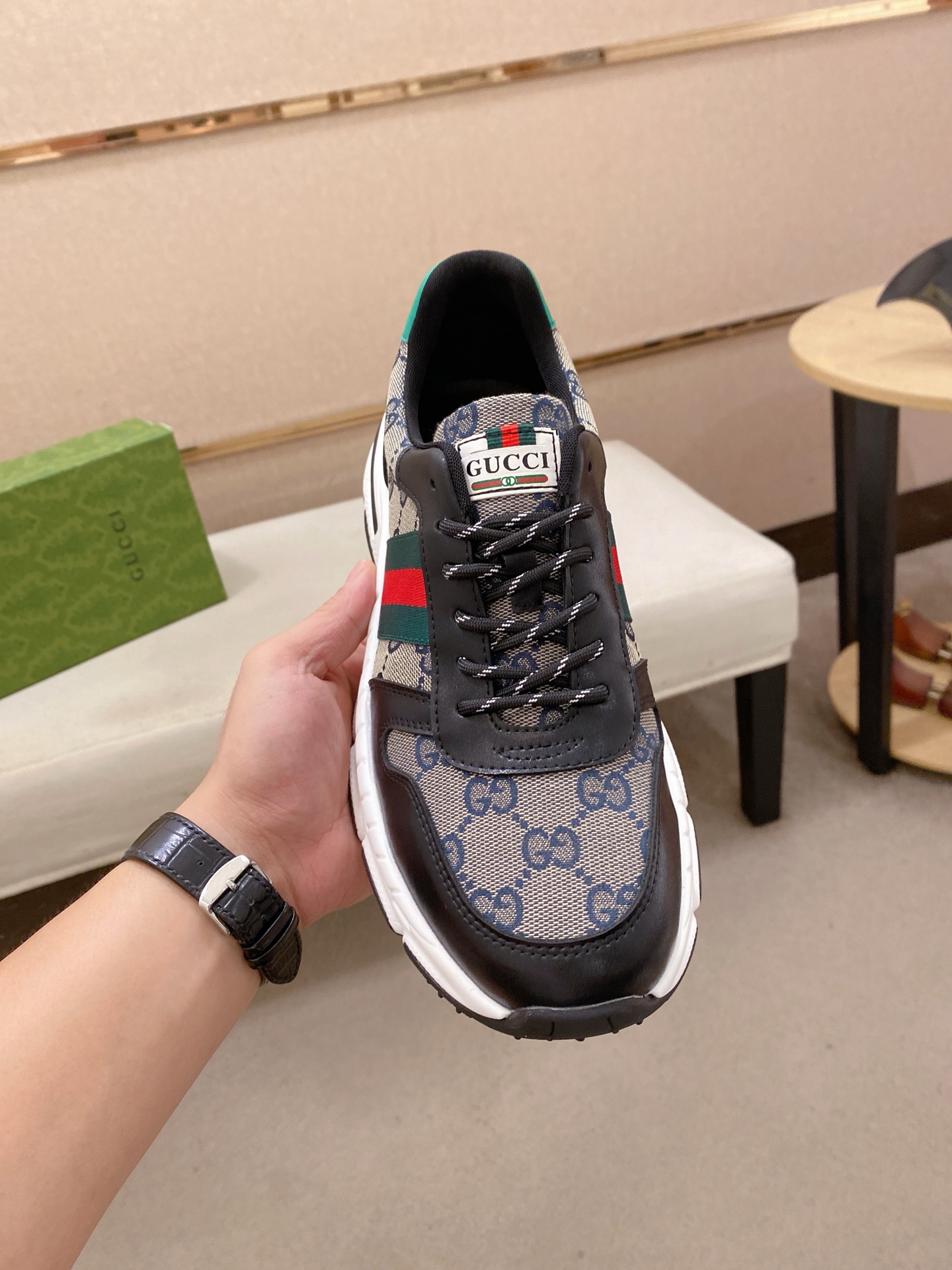 このスニーカーは、カジュアルな日常使いからちょっとしたお出かけまで、幅広いシーンで活躍します。グッチのロゴが目を引く、高級感あるデザインです。