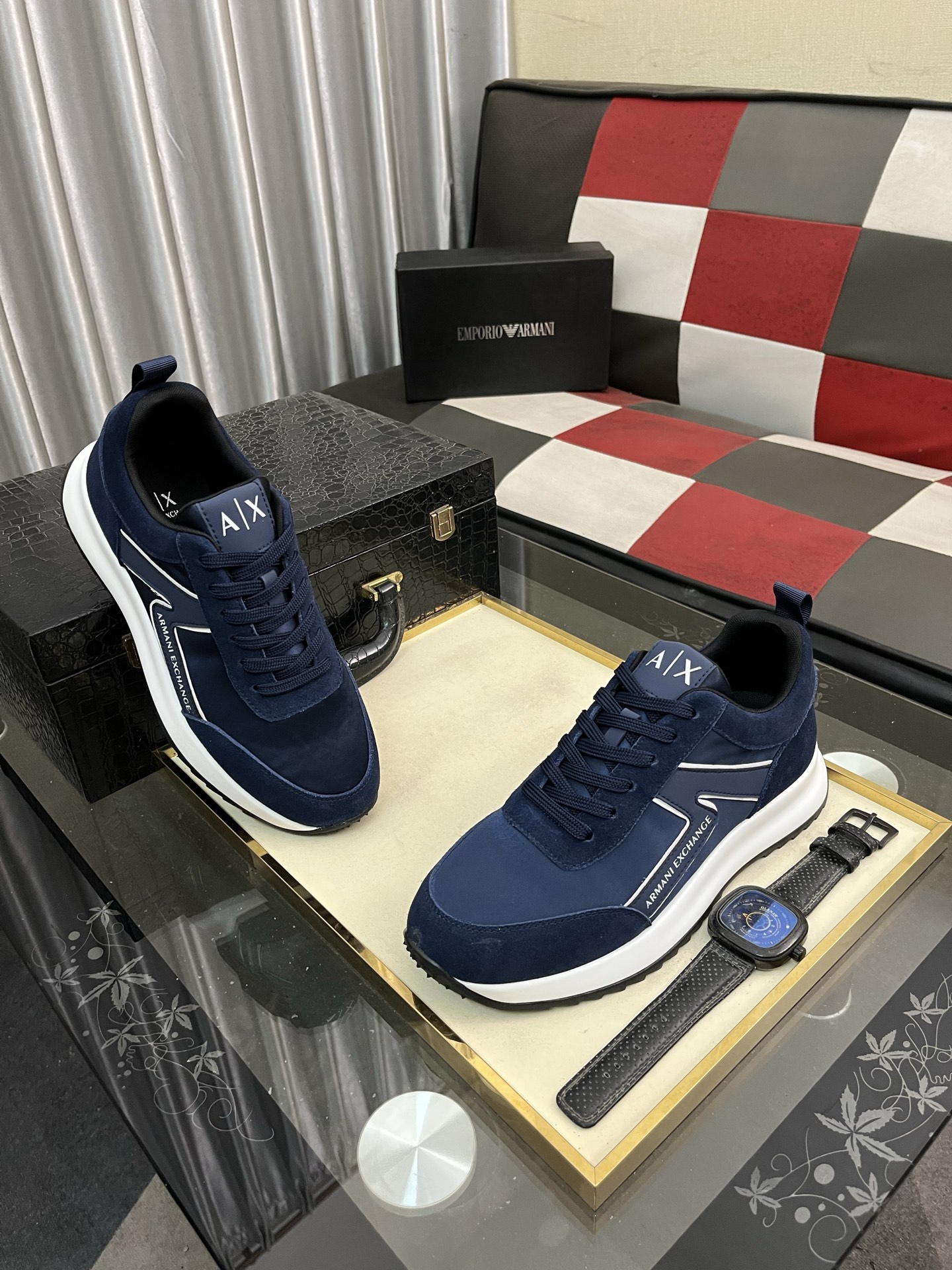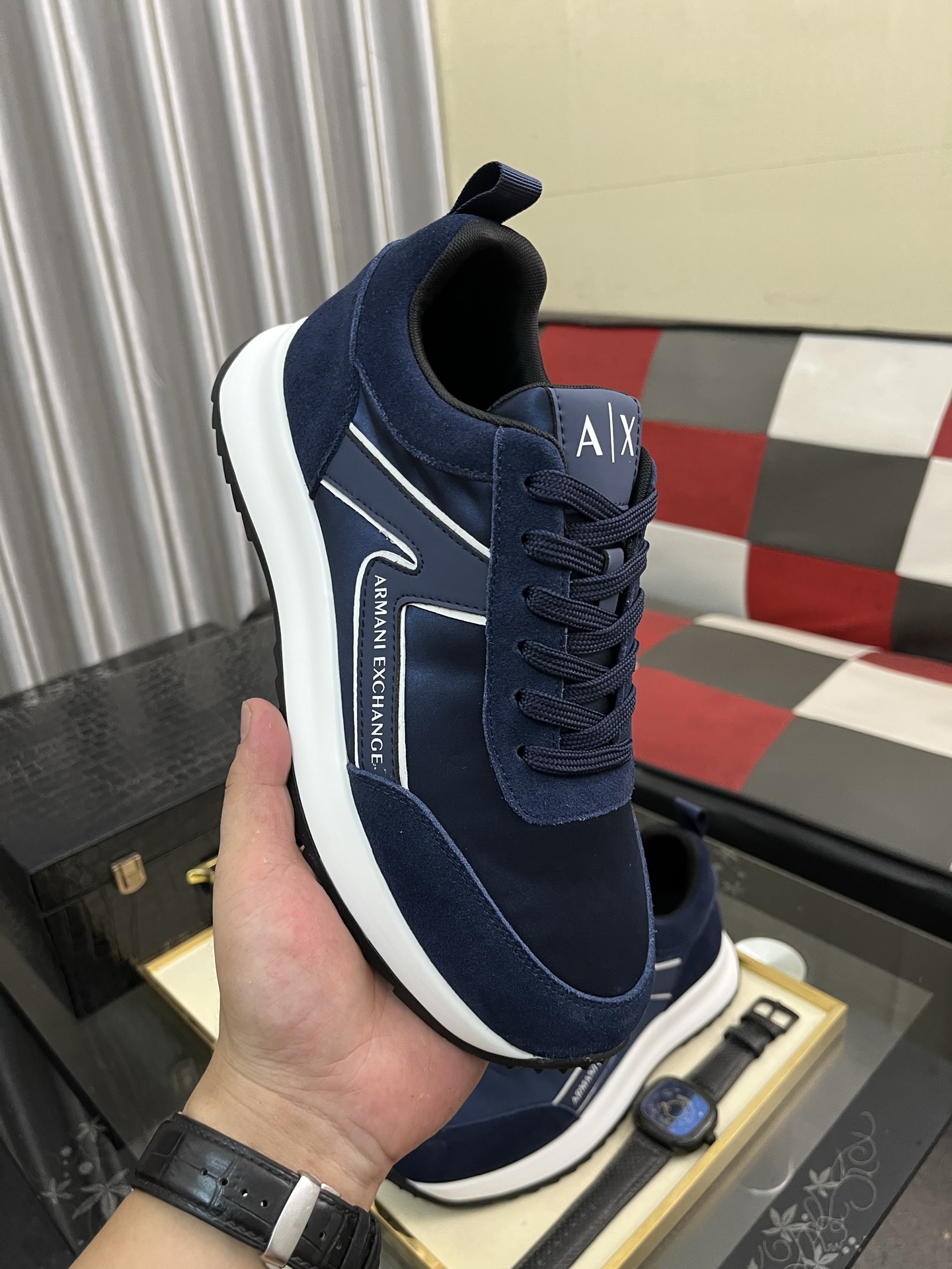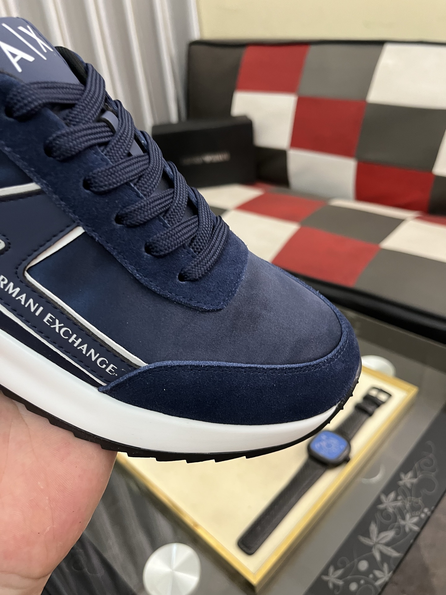 アーマンエクスチェンジ 男士运动鞋 navy 軽量快適 スニーカー 62文字