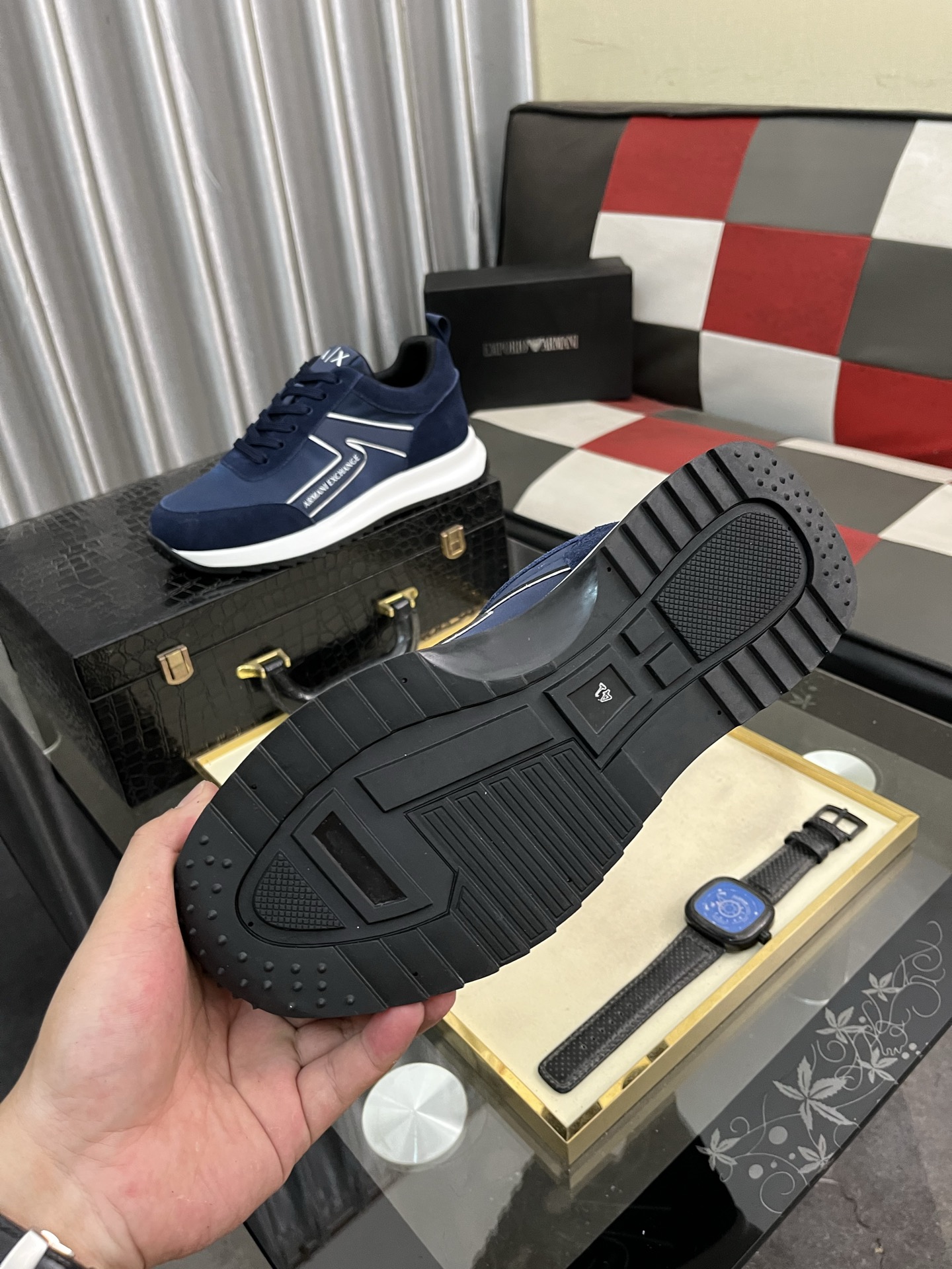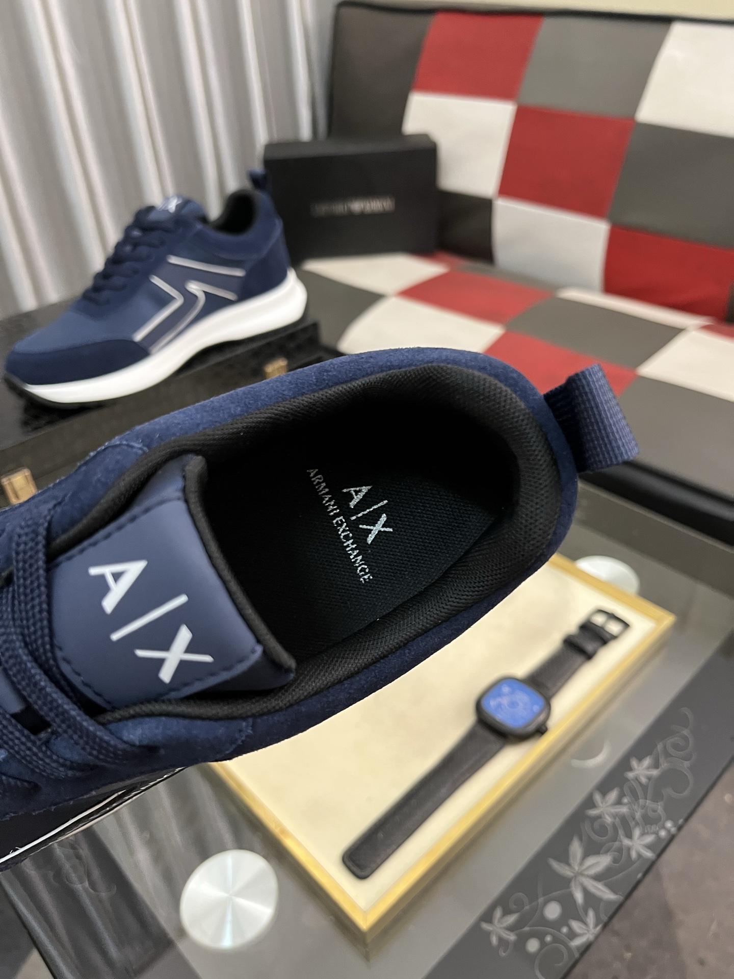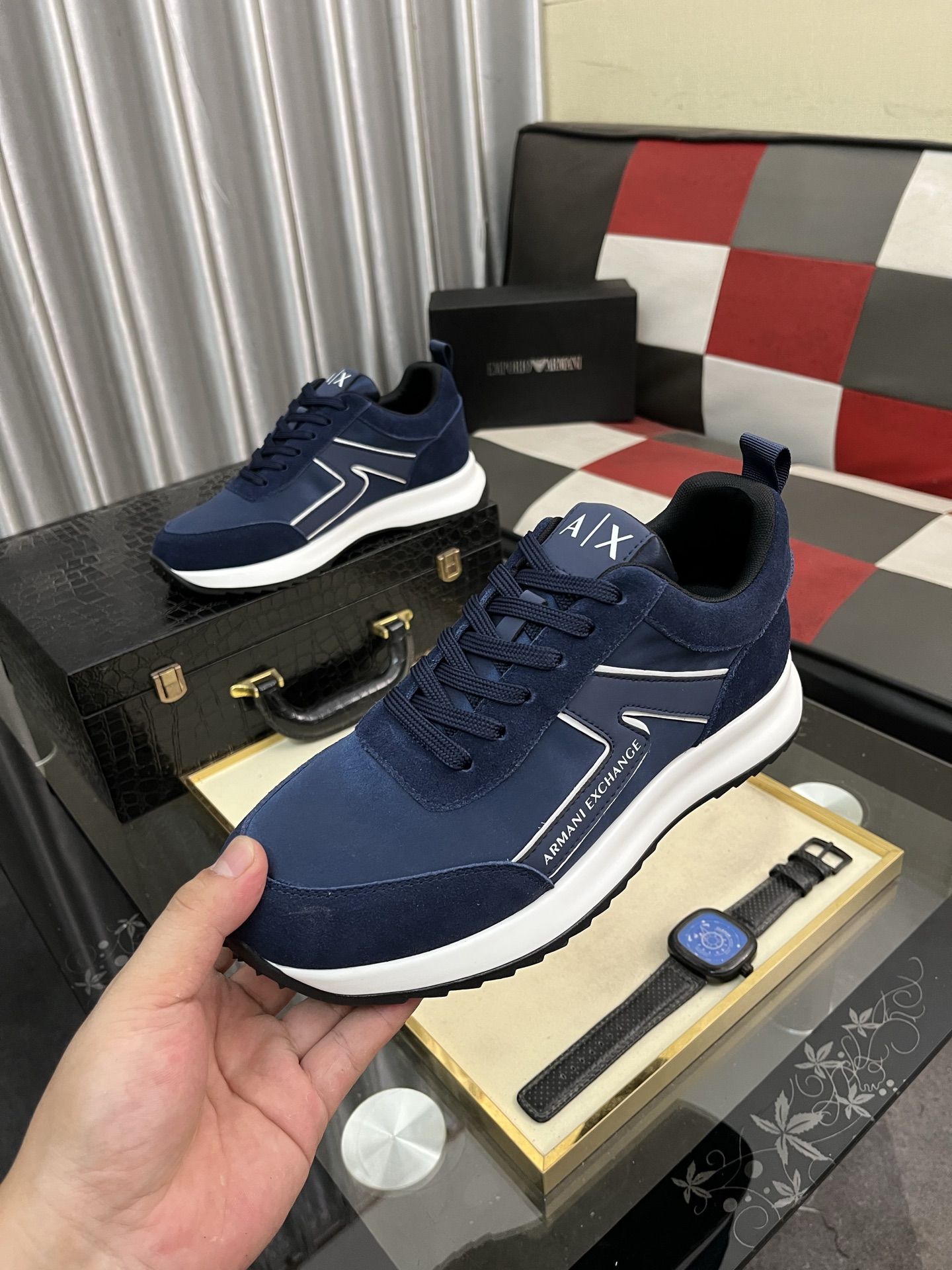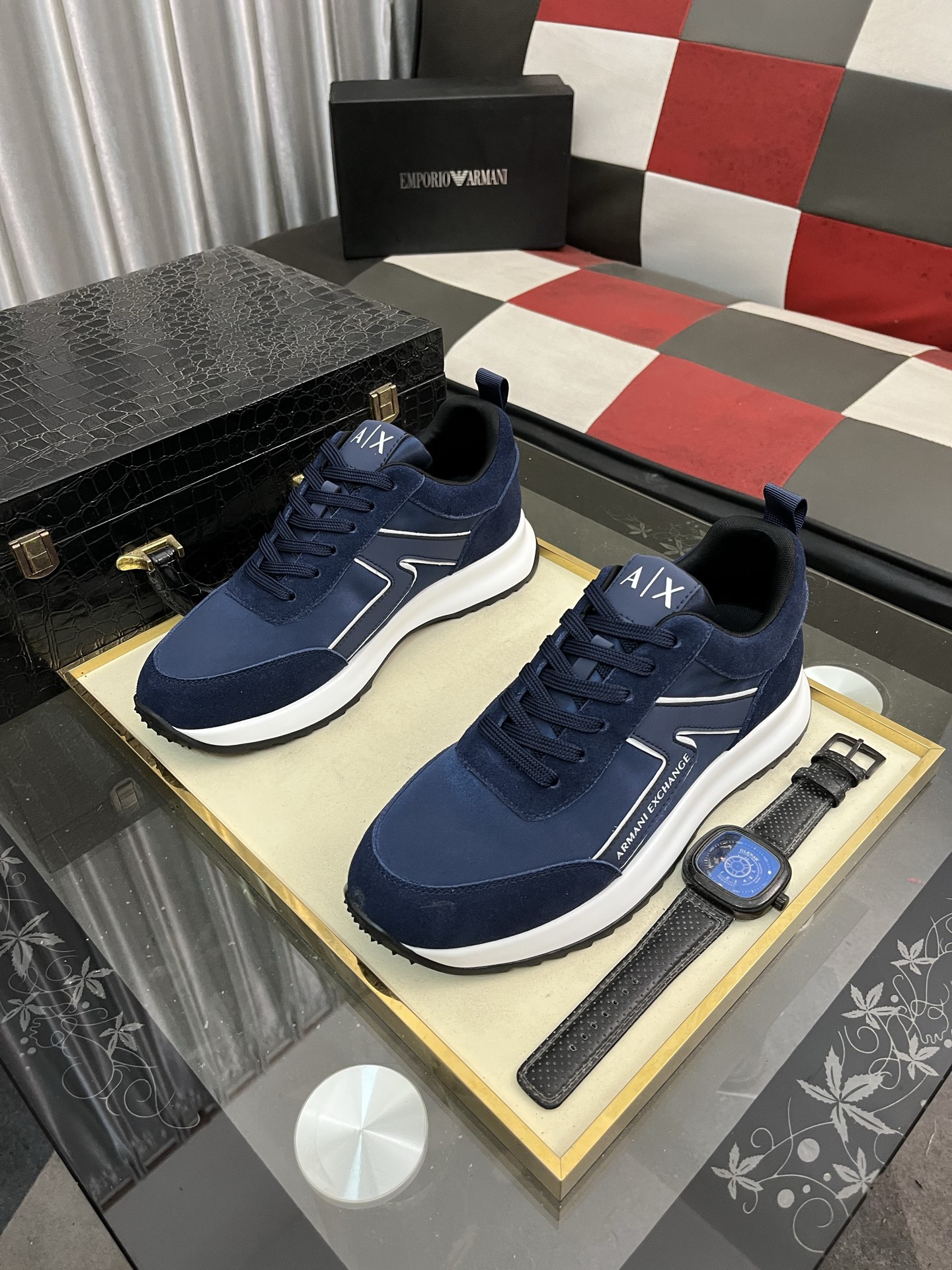アーマンエクスチェンジ 男士运动鞋 navy 軽量快適 スニーカー 62文字