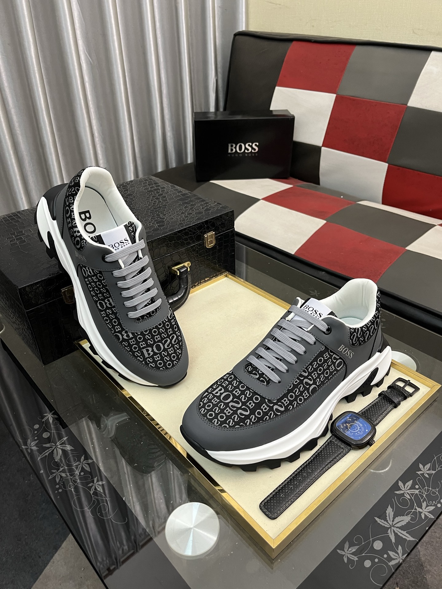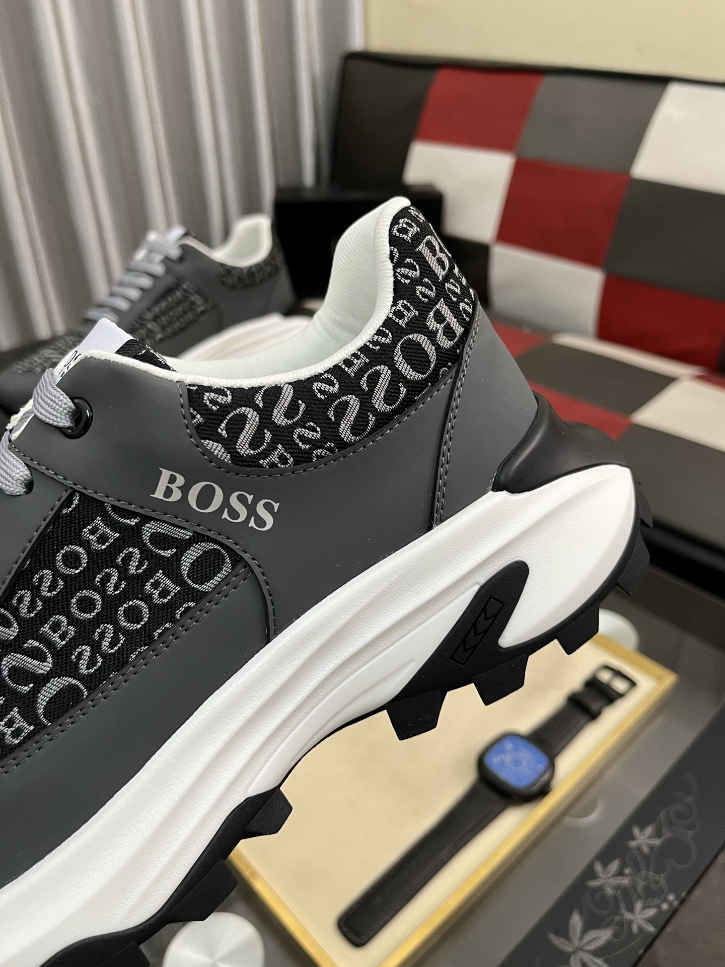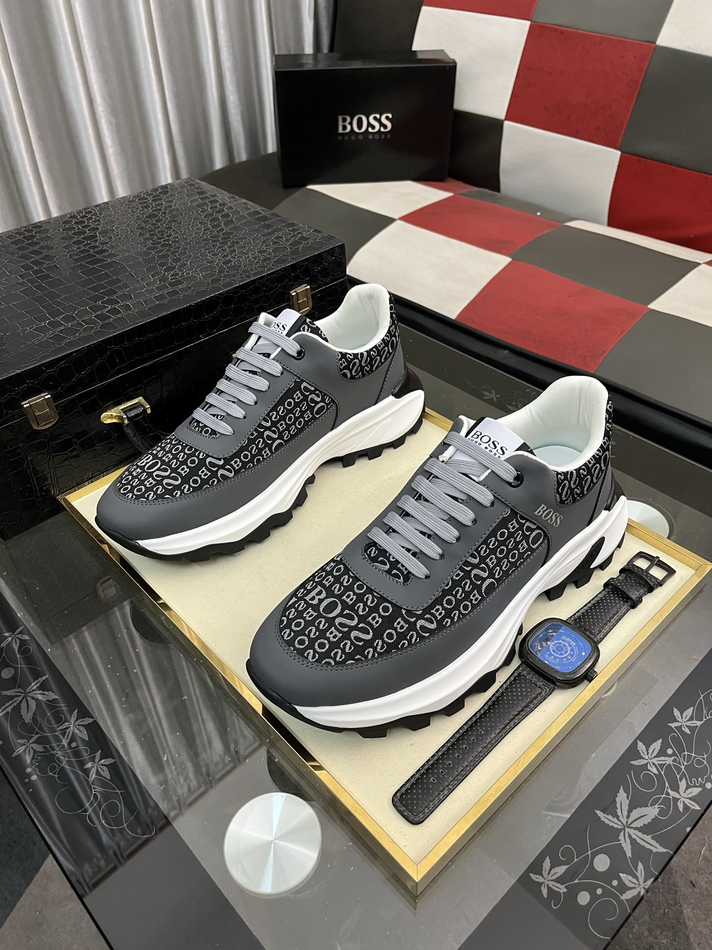 BOSS メンズ スニーカー ブラック グレー 2色 ロゴプリント ファッションシューズ 🥾