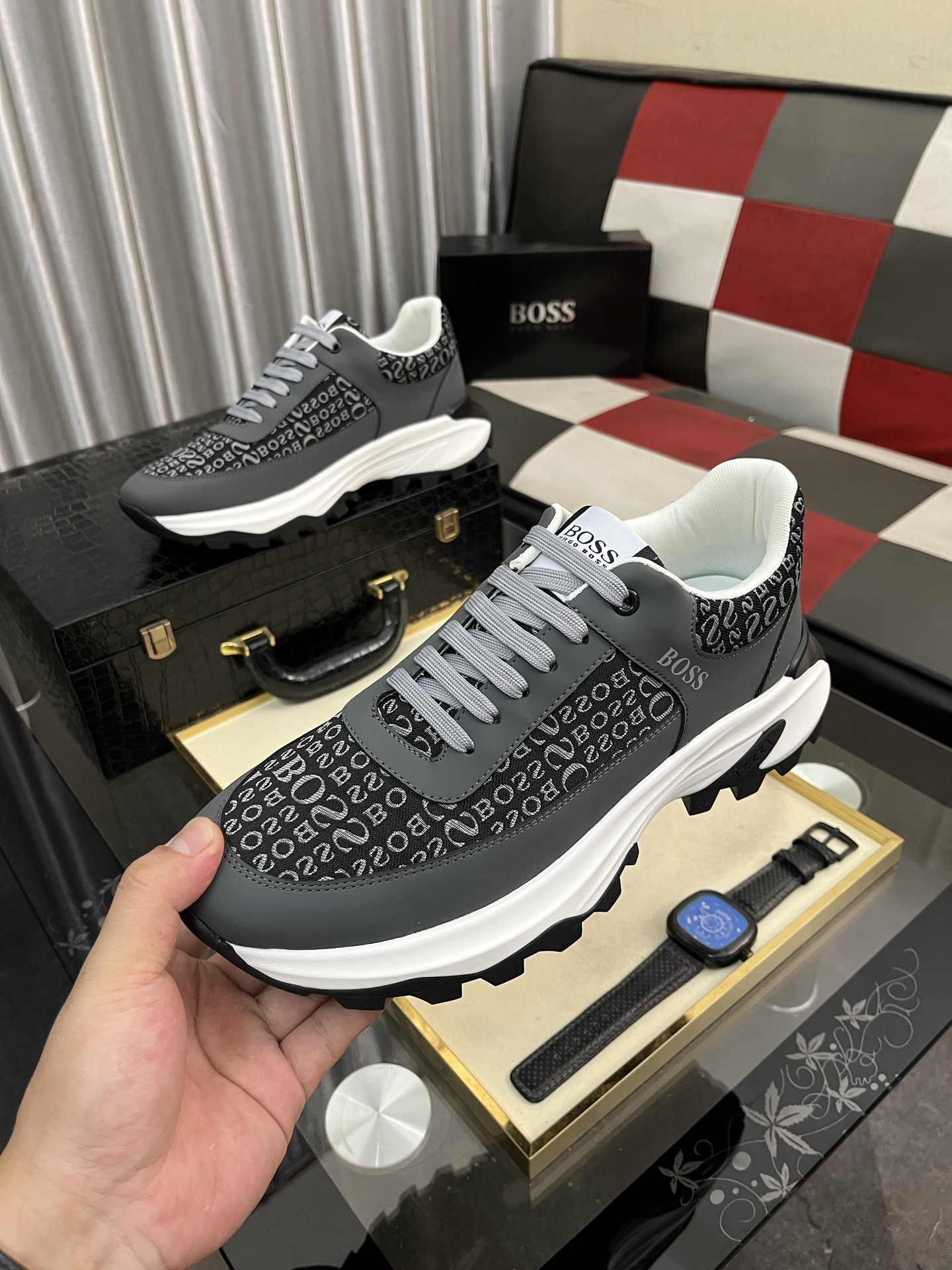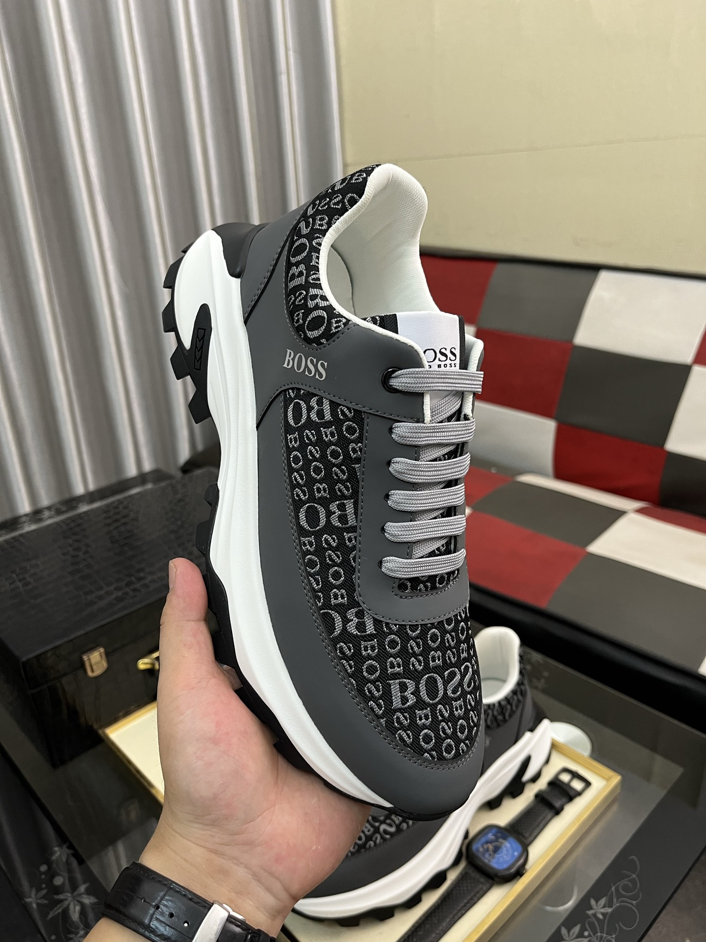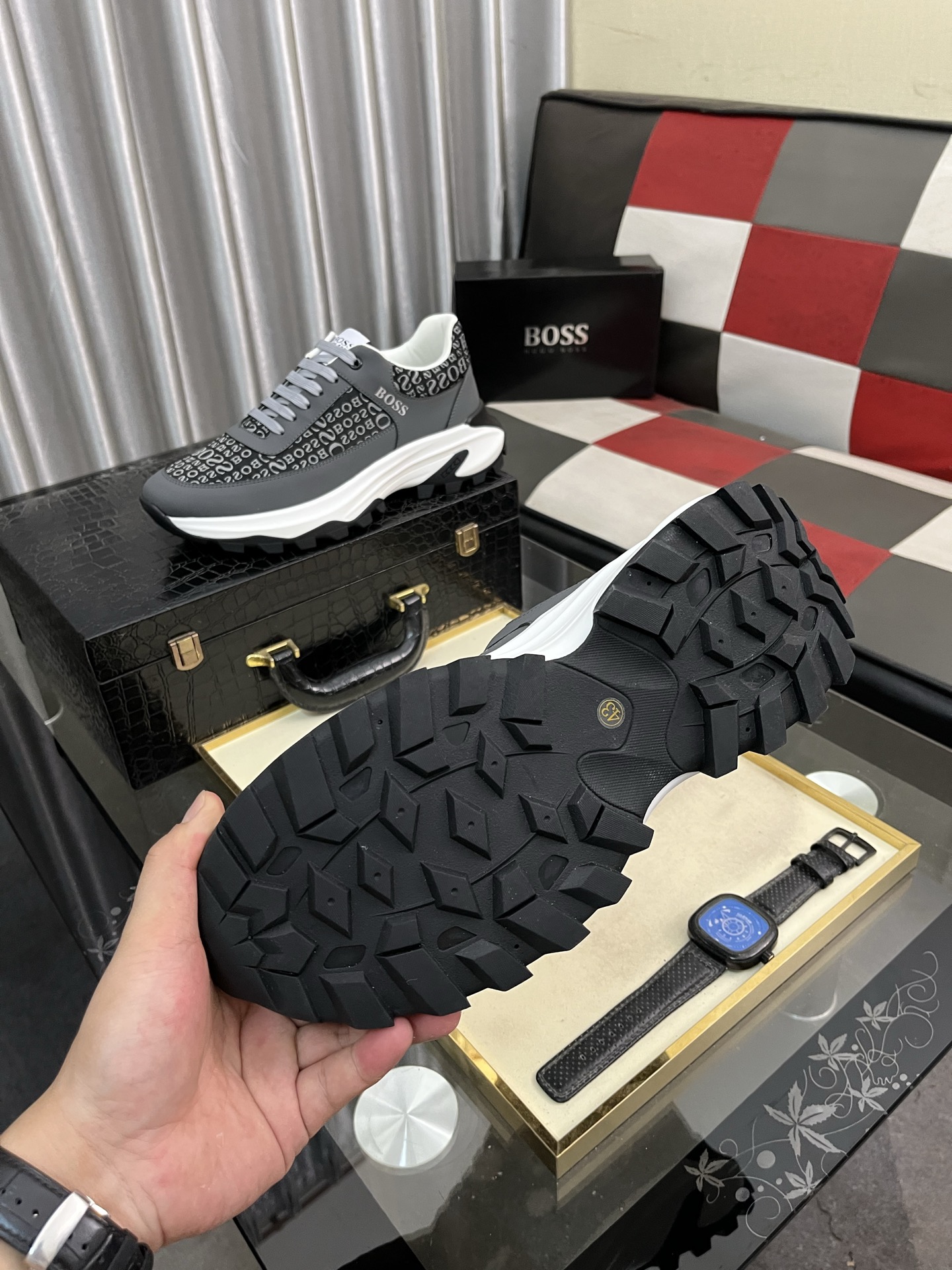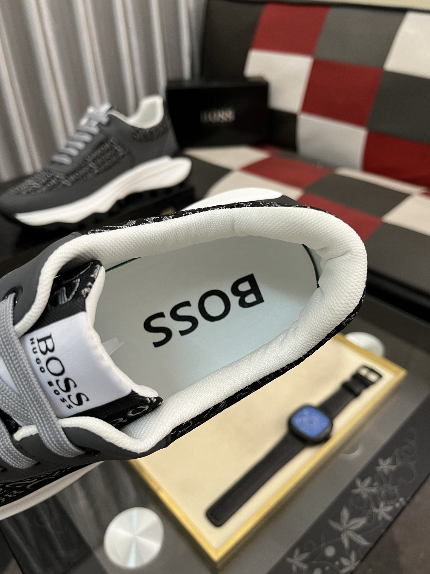 BOSS メンズ スニーカー ブラック グレー 2色 ロゴプリント ファッションシューズ 🥾