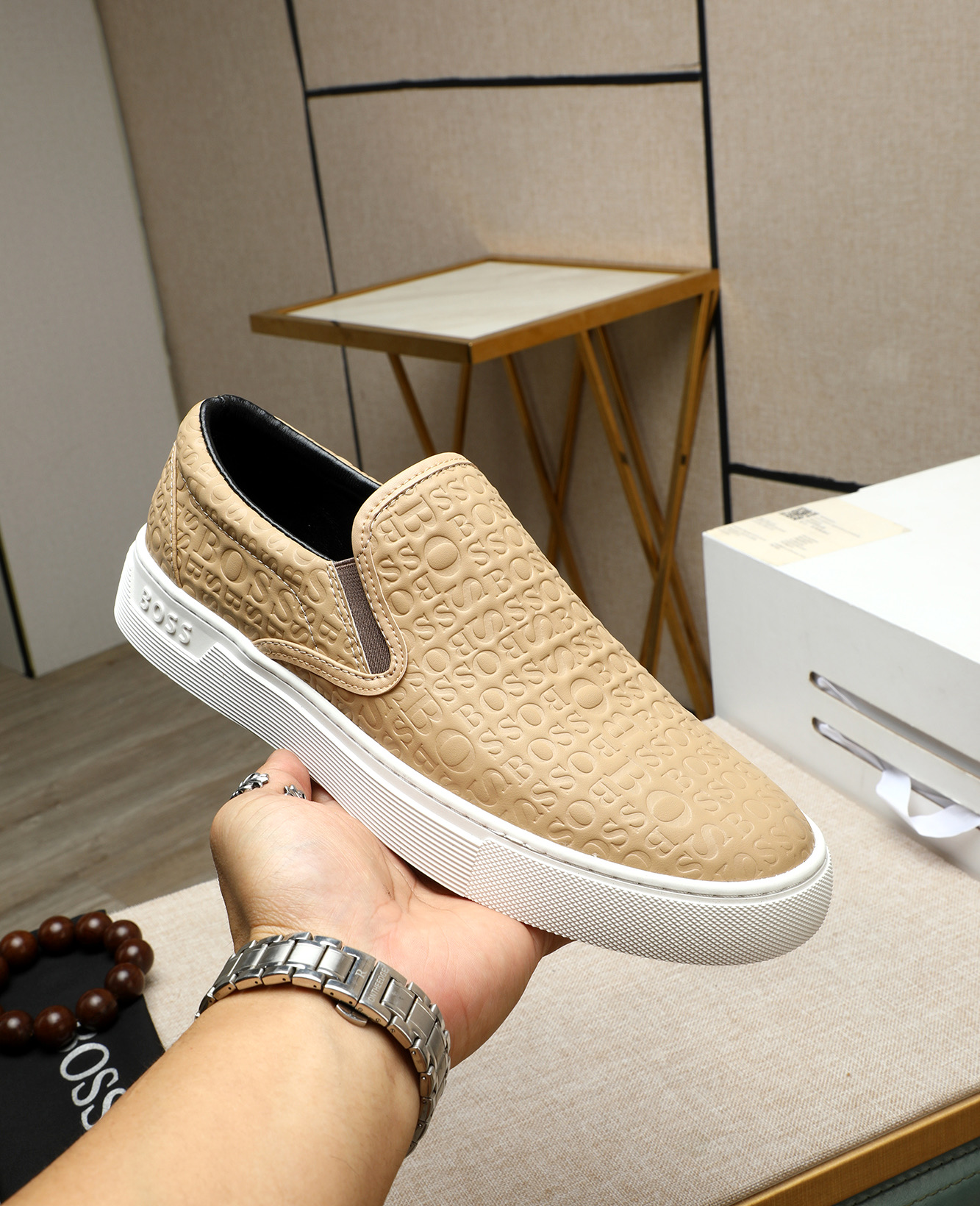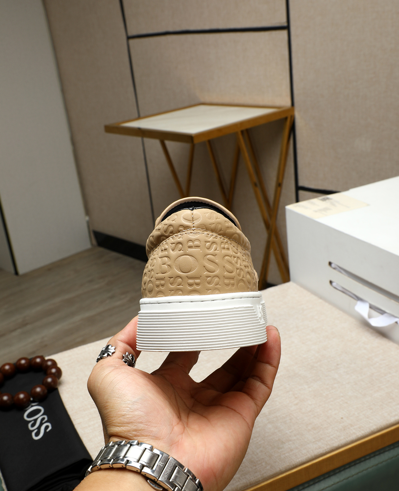 BOSSのメンズスニーカーは、ブラウン、ホワイト、ブラックの3色展開で、洗練されたデザインが特徴です。高品質なレザーを使用し、表面にはブランドロゴの刻印が施されており、上品さと個性を兼ね備えています。白いゴムソールが軽やかさをプラスし、長時間の着用でも快適です。カジュアルなシーンから、少しフォーマルな場面まで、幅広い用途に合わせられます。また、シンプルなデザインながらも、ディテールにこだわった作りが、上質な印象を与えます。品質とスタイルを追求する方にぜひおすすめです。 なぜこのスニーカーを手に入れないのでしょうか?