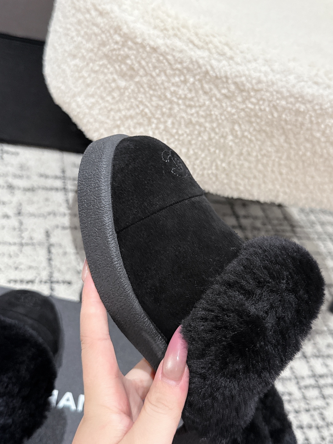 このスリッパは、自宅でのリラックスタイムや、暖かい室内でのんびりと過ごすときに最適です。シンプルなデザインながら、シャネルのロゴがさりげなくアクセントになり、上品さを保ちます。また、スエードの質感とファーの柔らかさが、足を優しく包み込むので、長時間履いても疲れにくいです。